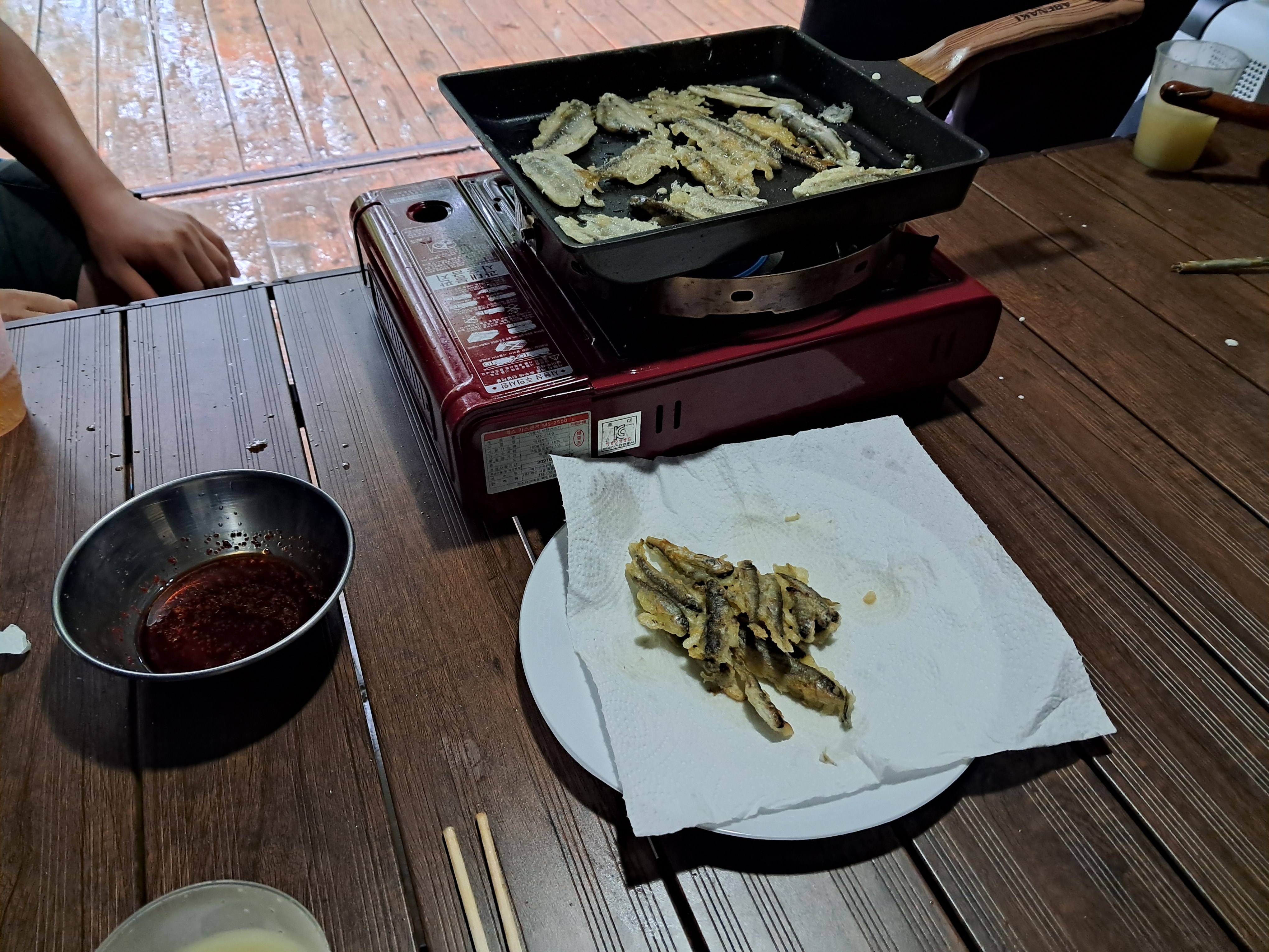 미천골에서도 물고기를 잡아서 튀김을 했는데 사진을 담지 않았다