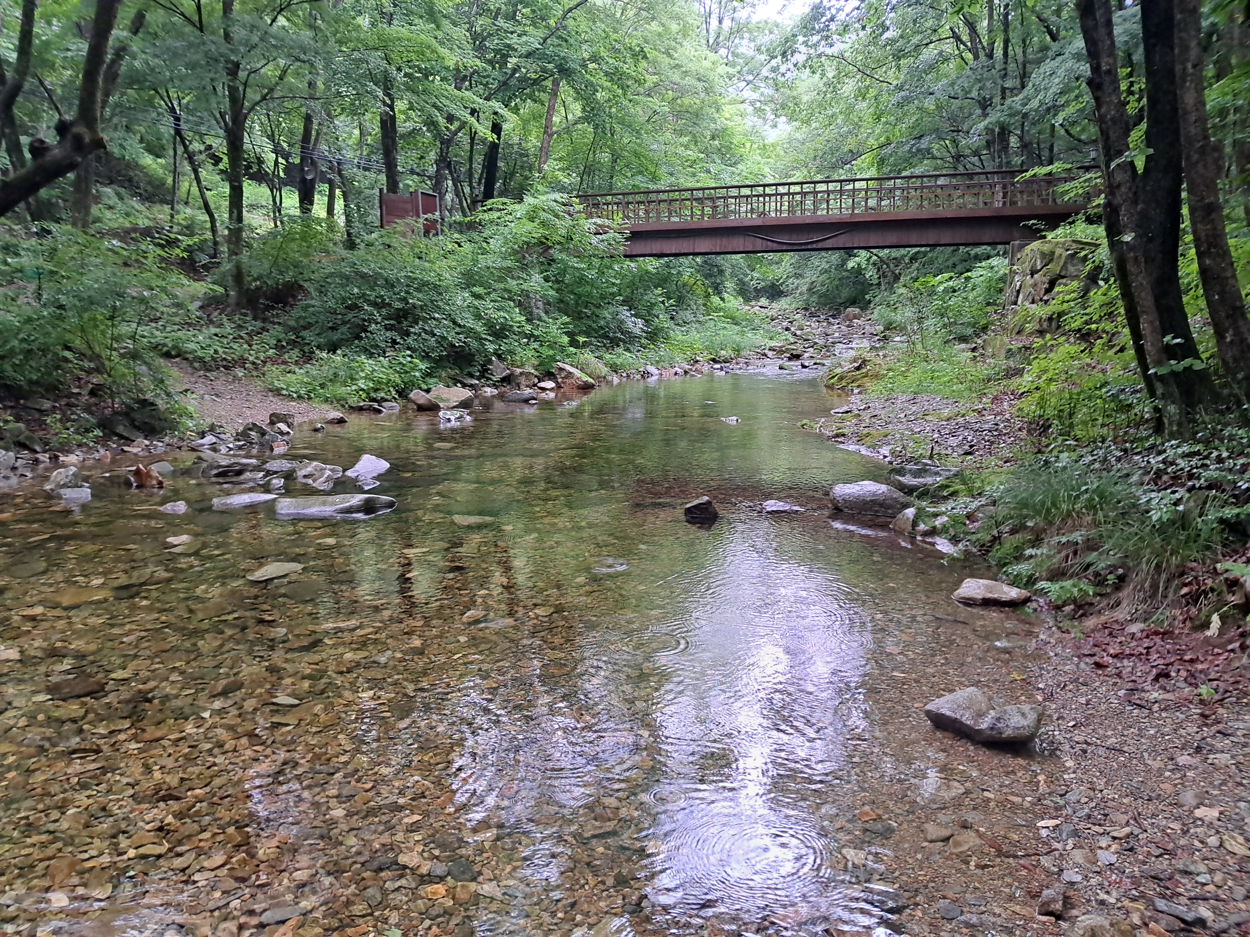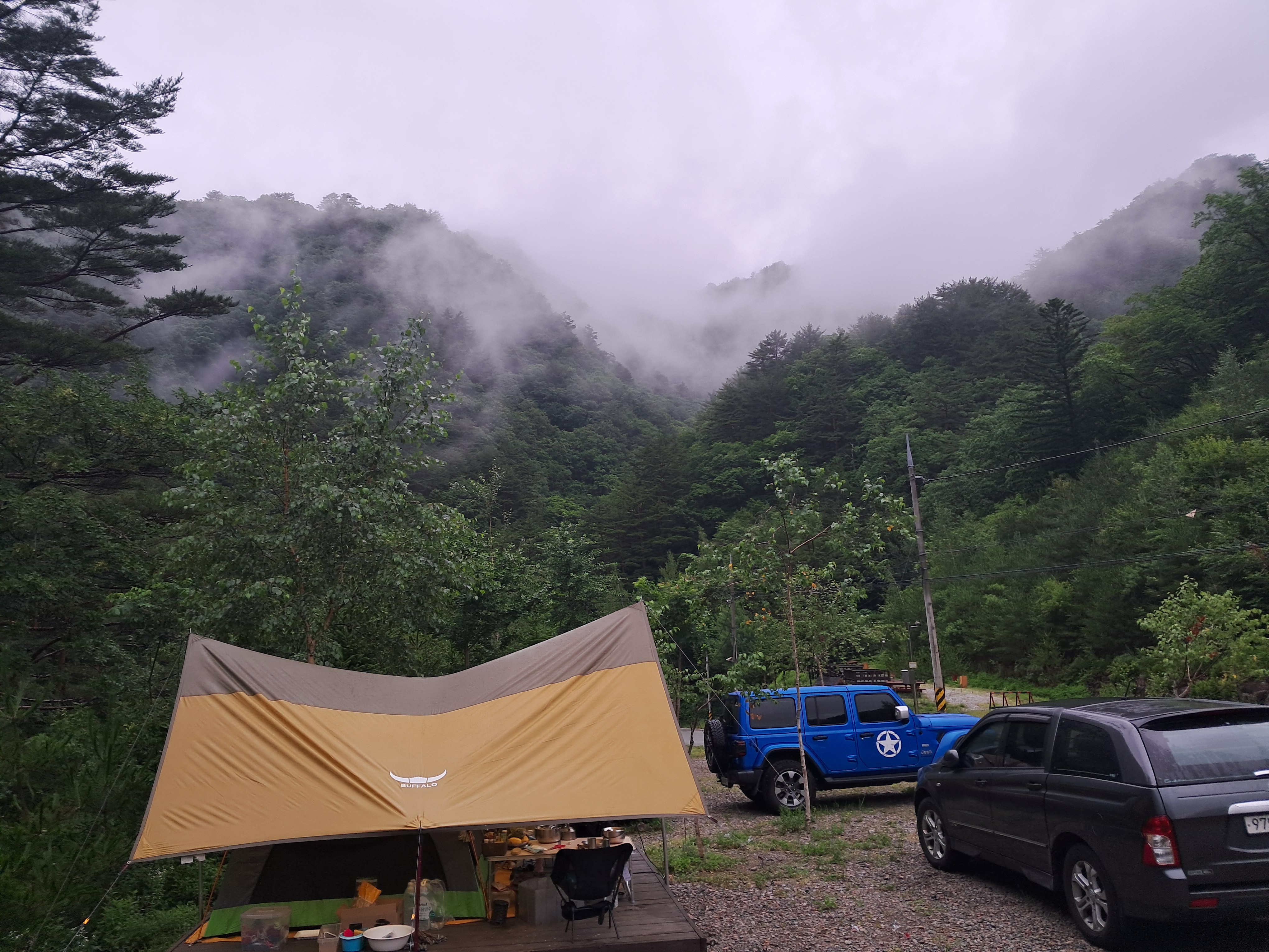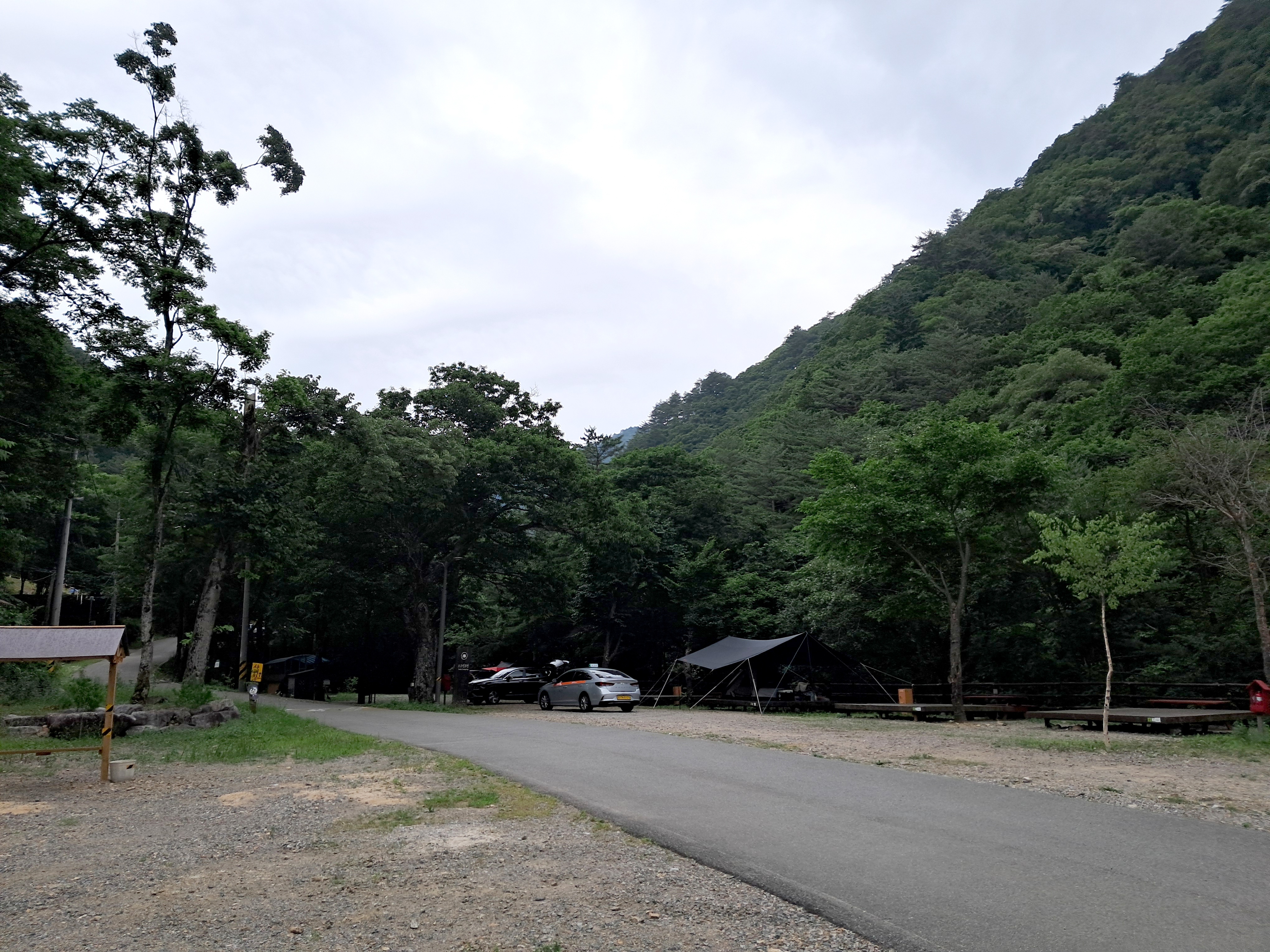 미천골도 골이 깊어 5~6km를 들어와야 이러한 데크야영장이 있는데 하늘이 심상치가 않다