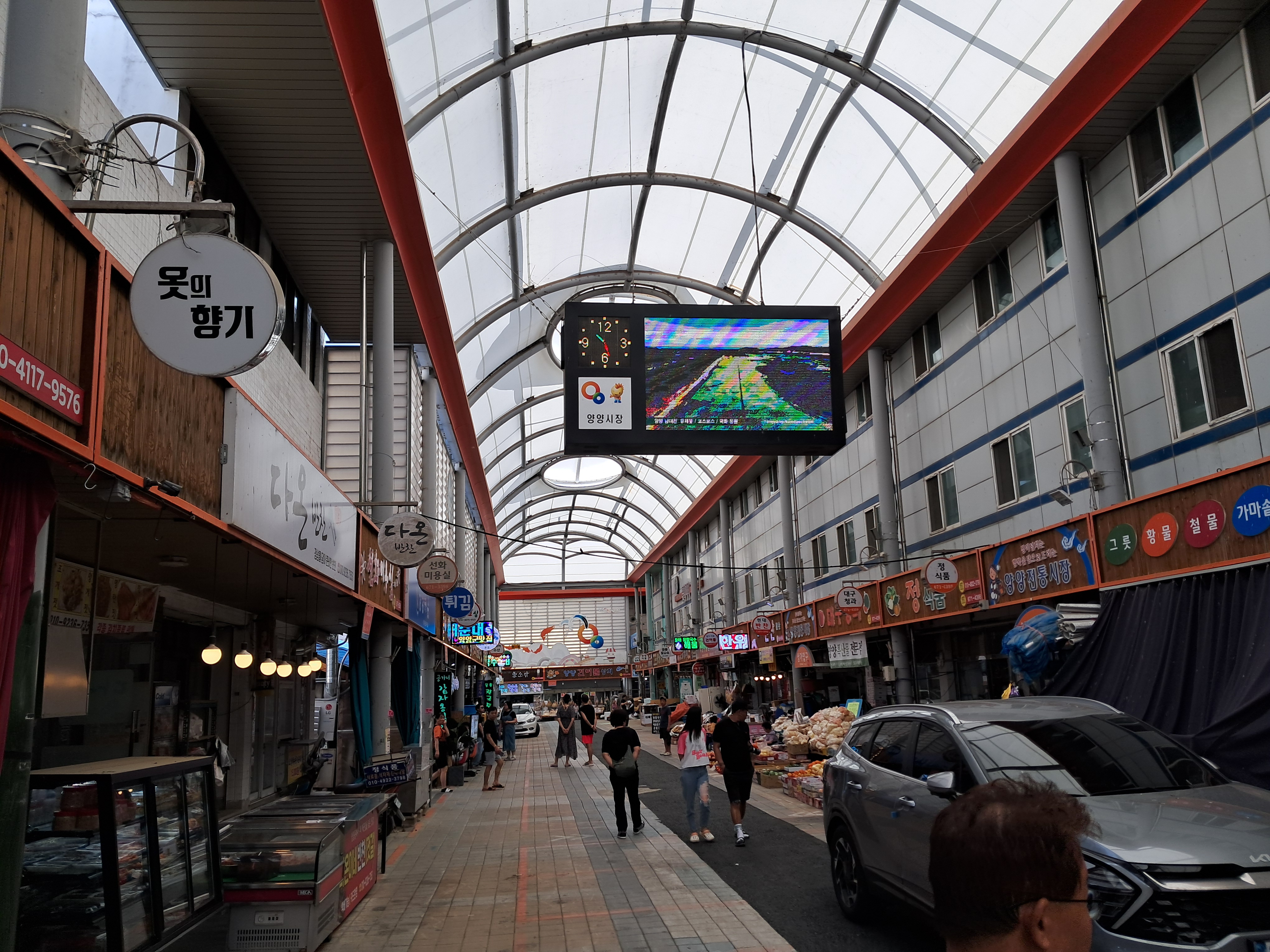 양양시장에서 부식을 구입하고 전날 부서진 안경테도 바꾸고 미천골로 향한다