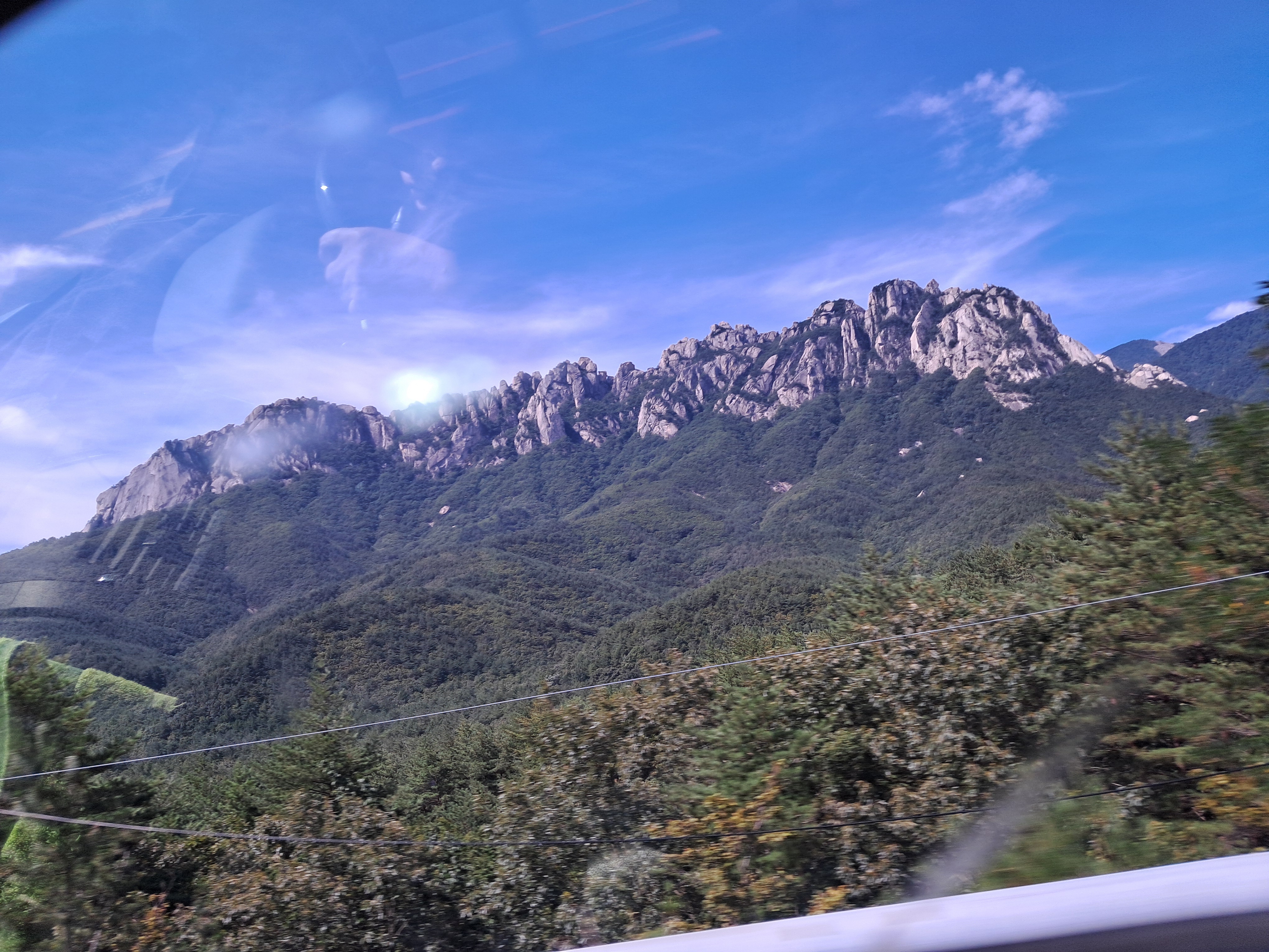 미시령길에서 차창으로 바라본 풍경들 아래는 그 유명한 울산 바위다