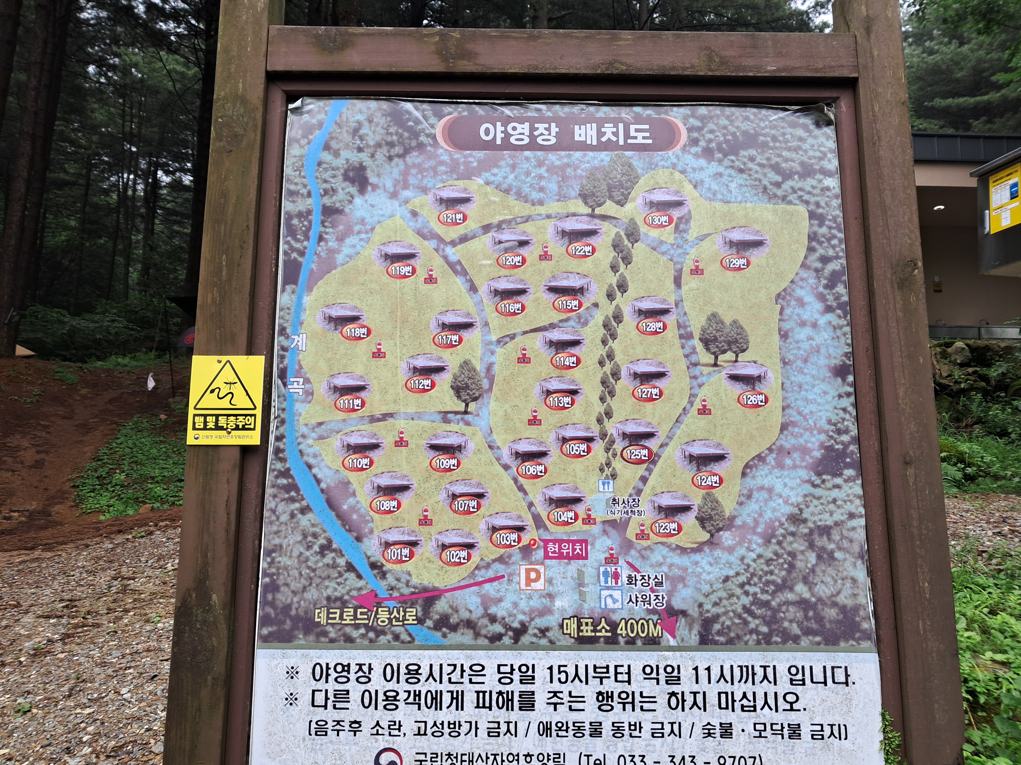 우리 야영데크는 103번으로 다리건너에 바로 앞이다