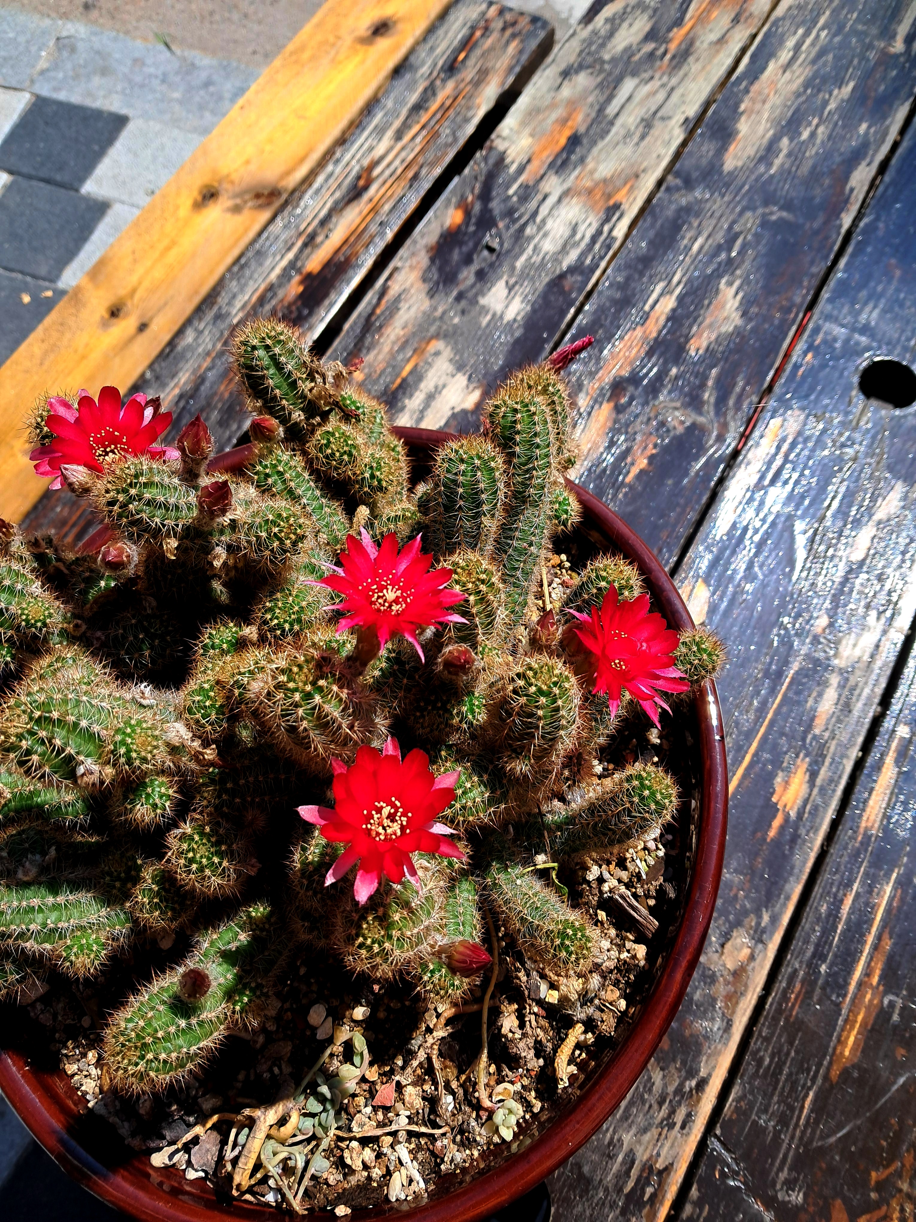 횟집 앞 화분의 백단선인장 (손가락선인장)