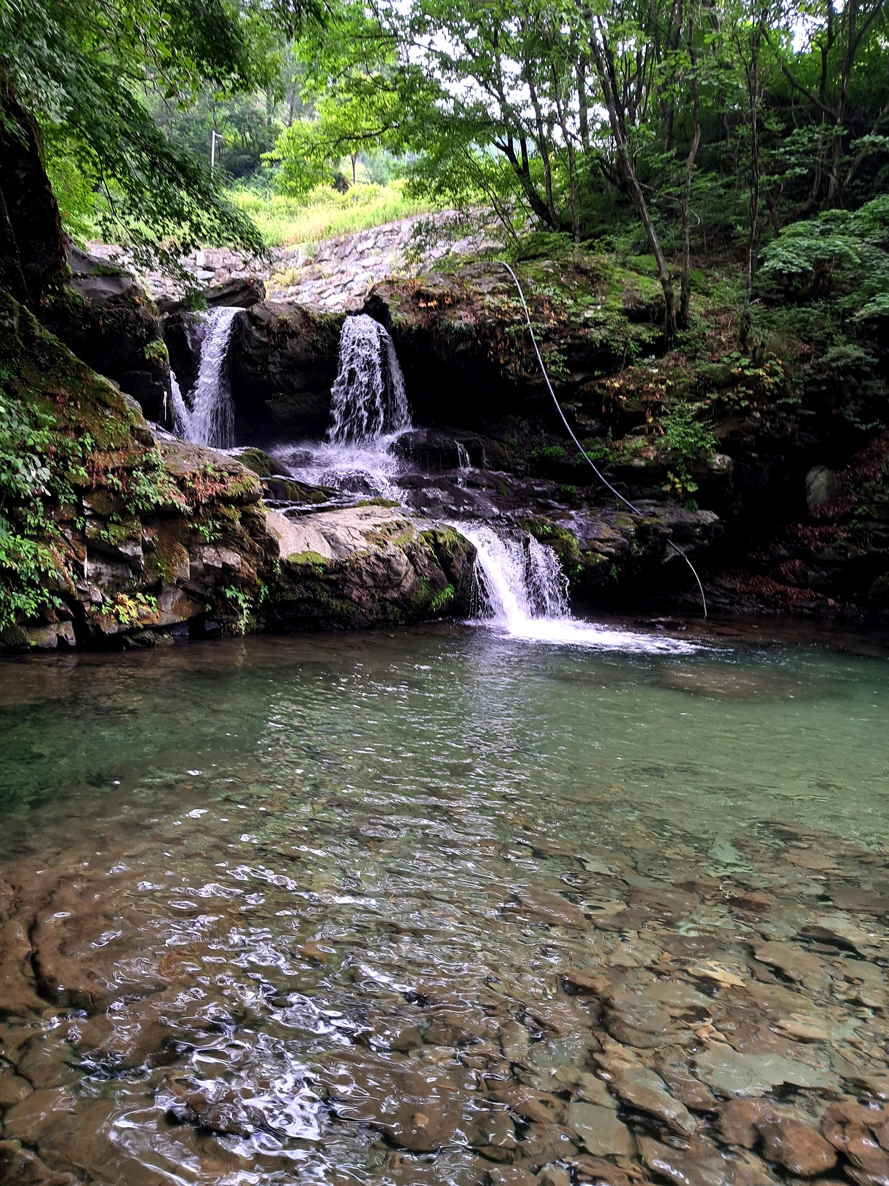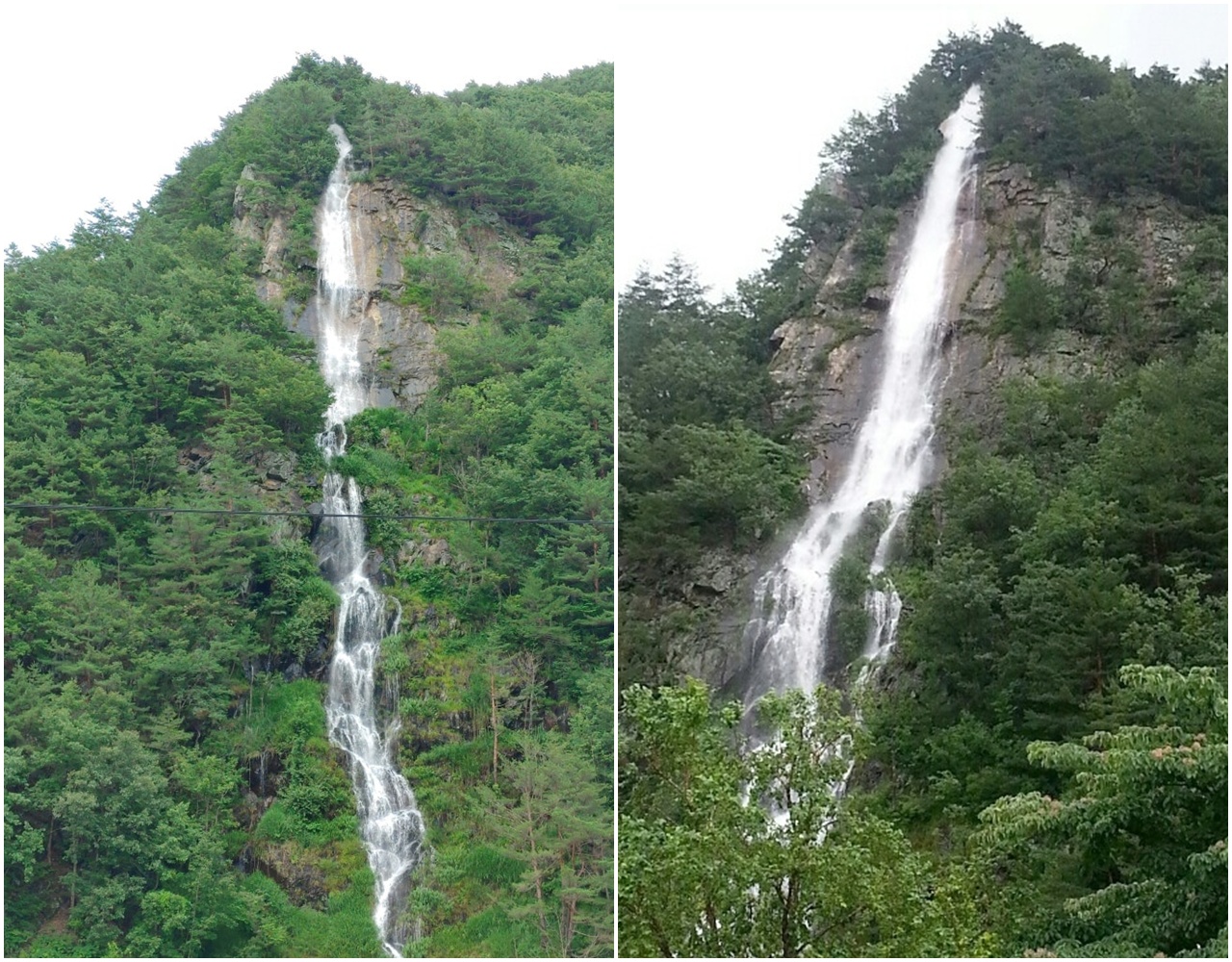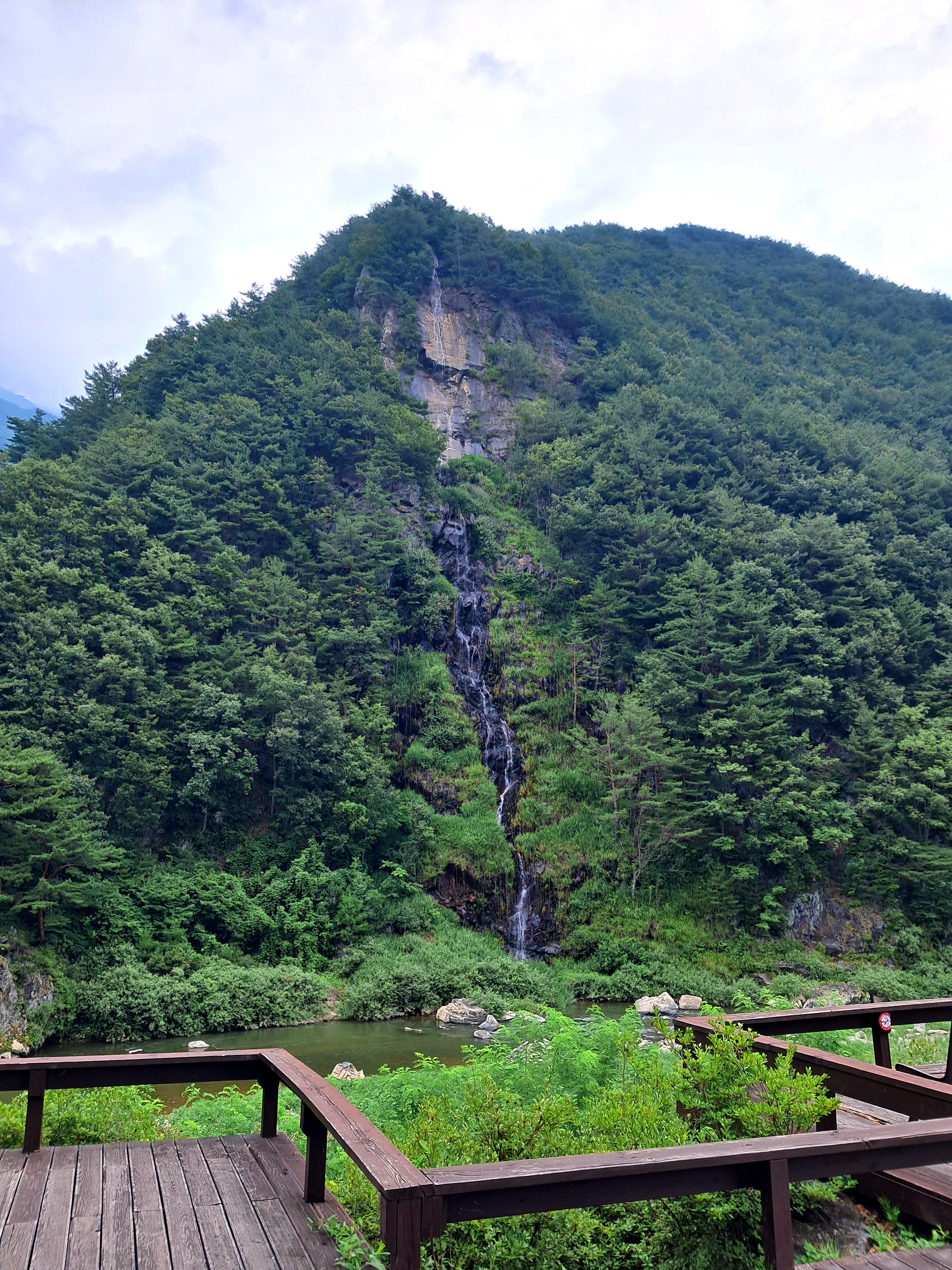 계곡 입구에는 3단 폭포가 있는데, 5m 정도의 폭포가 쏟아져 내리는 모습이 도로변에서도 보여, 차량으로 스치는