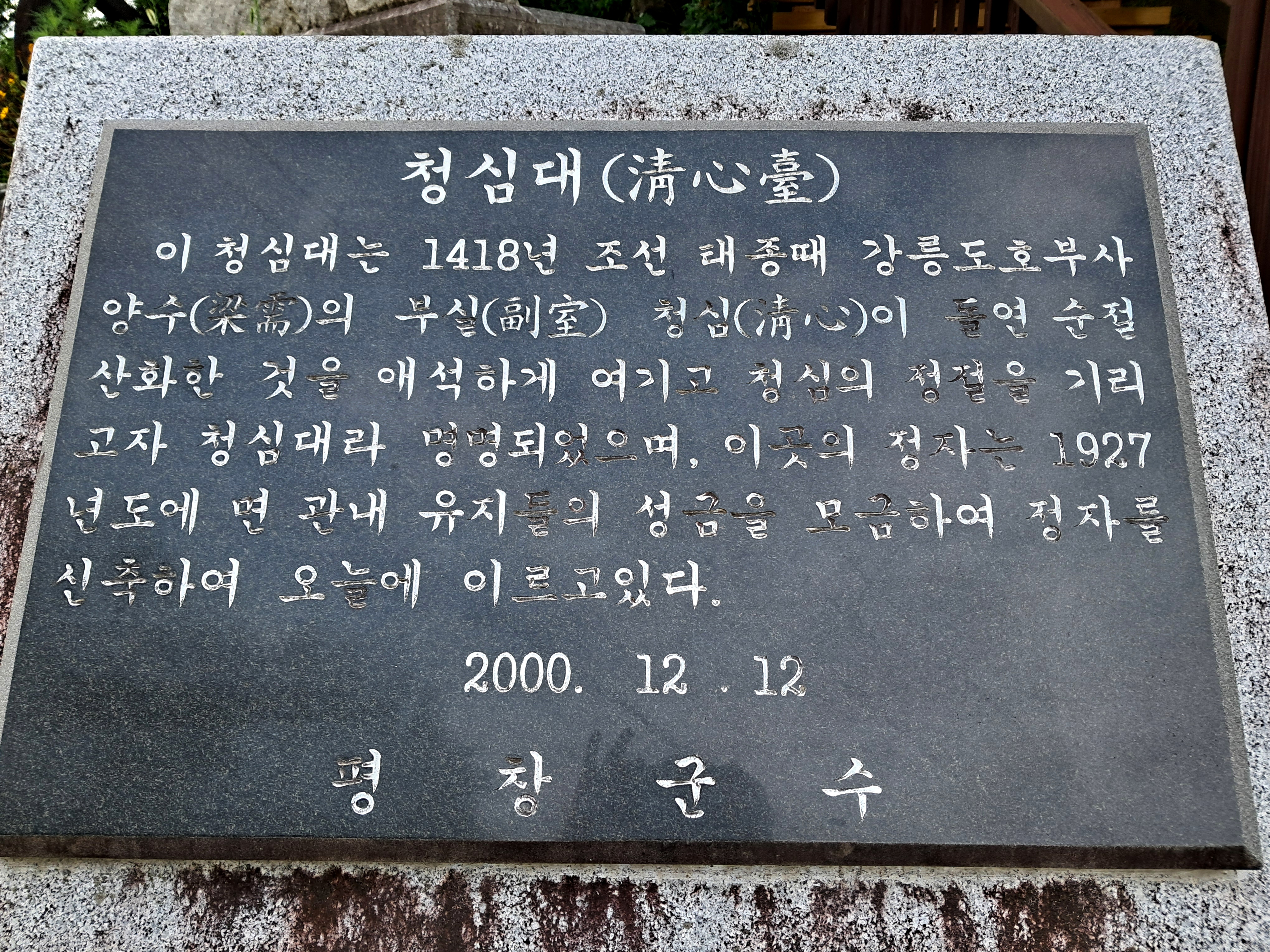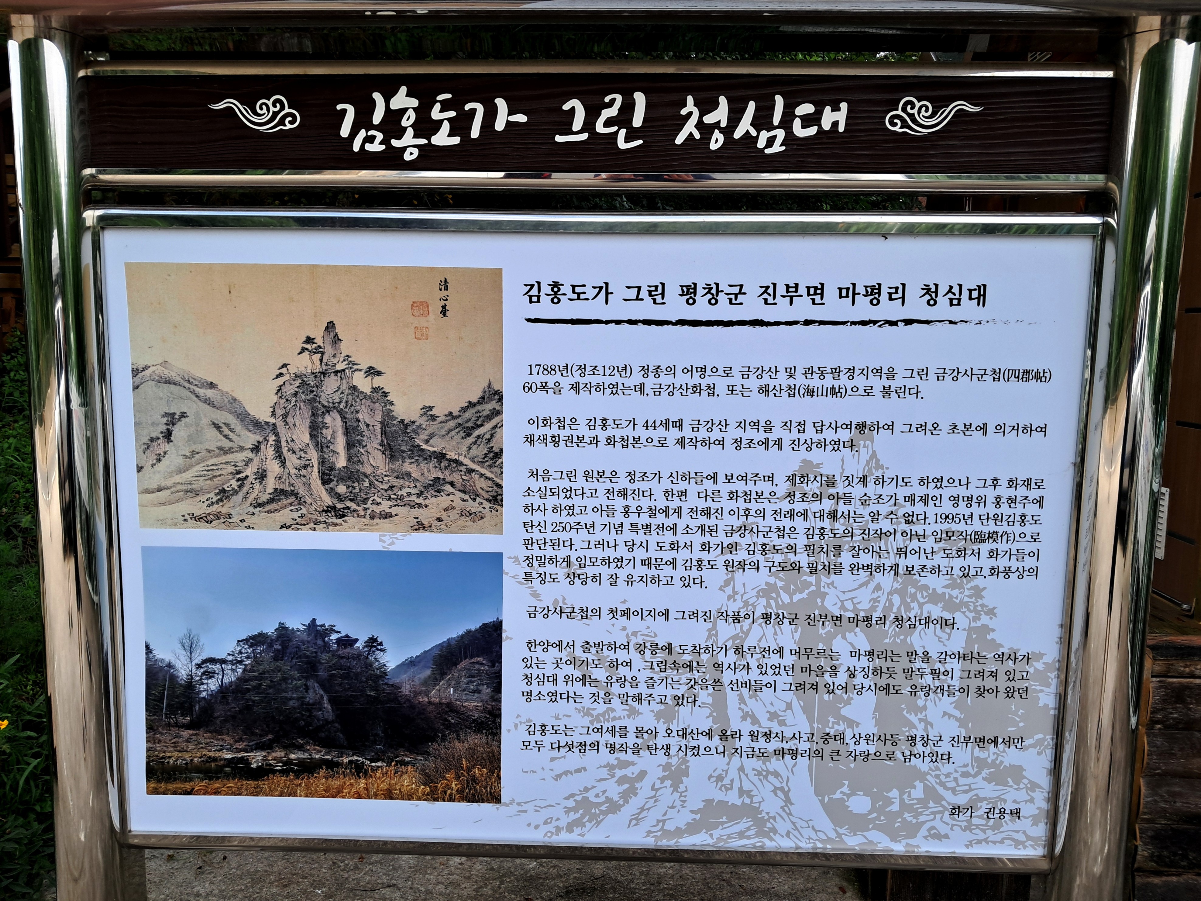 그 금강사군첩 중 첫 페이지를 장식하는 것이 바로 평창의 청심대(淸心臺)다. 평창군 진부면 마평리에 위치한 청심대는