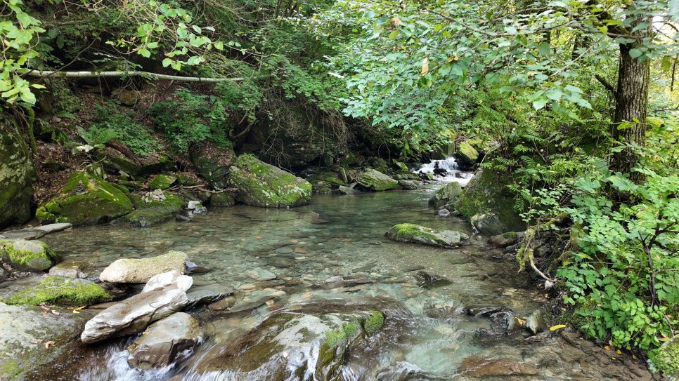 계곡위 1.5km 지점의 널찍한 부분에 민가가 몇 있을 뿐, 그 외 다른 오염원이 없어 물빛이 맑고 계곡의 암반 풍치가