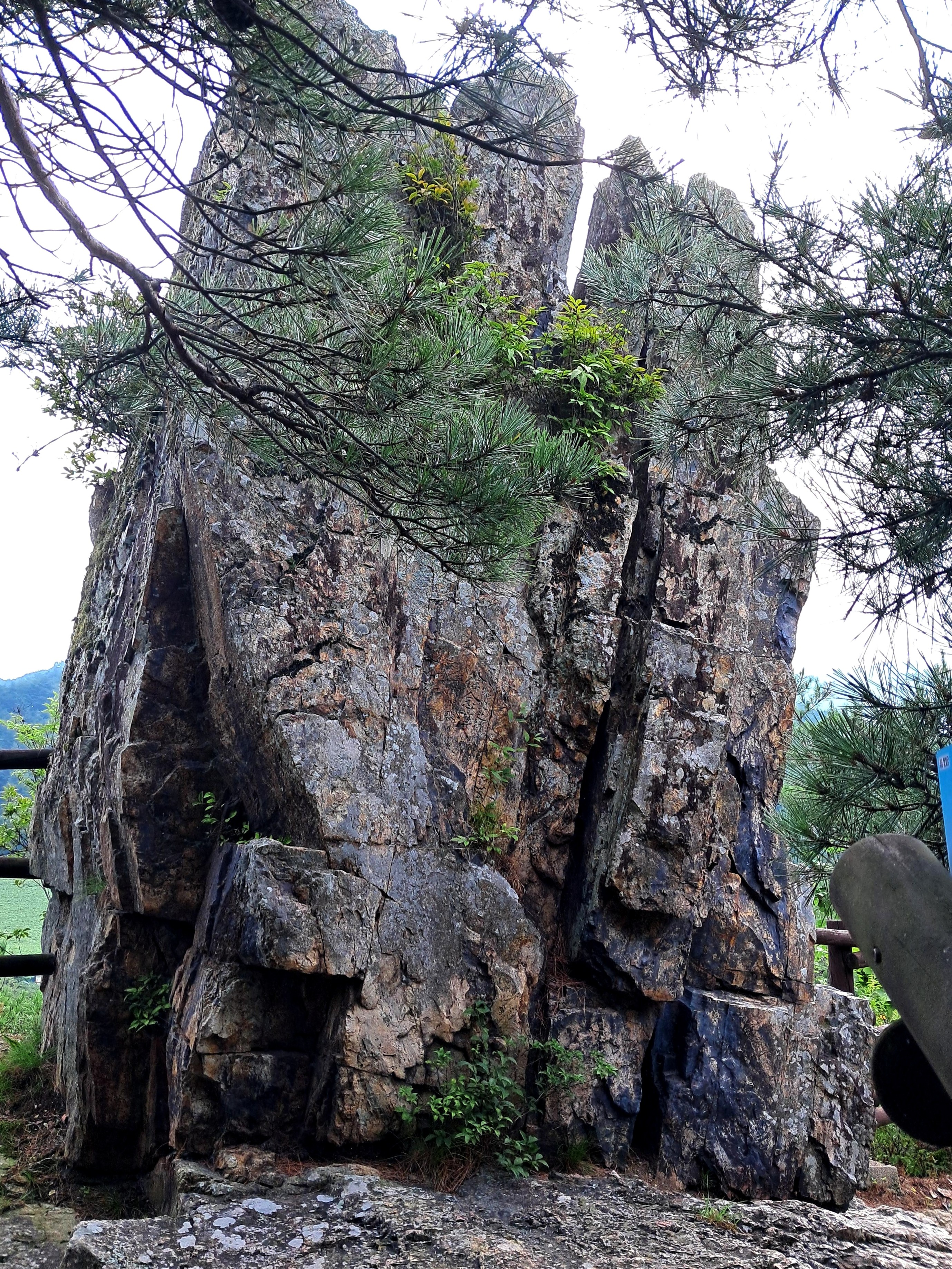정자 뒤로 오르면 이러한 멋진 선돌이 보인다