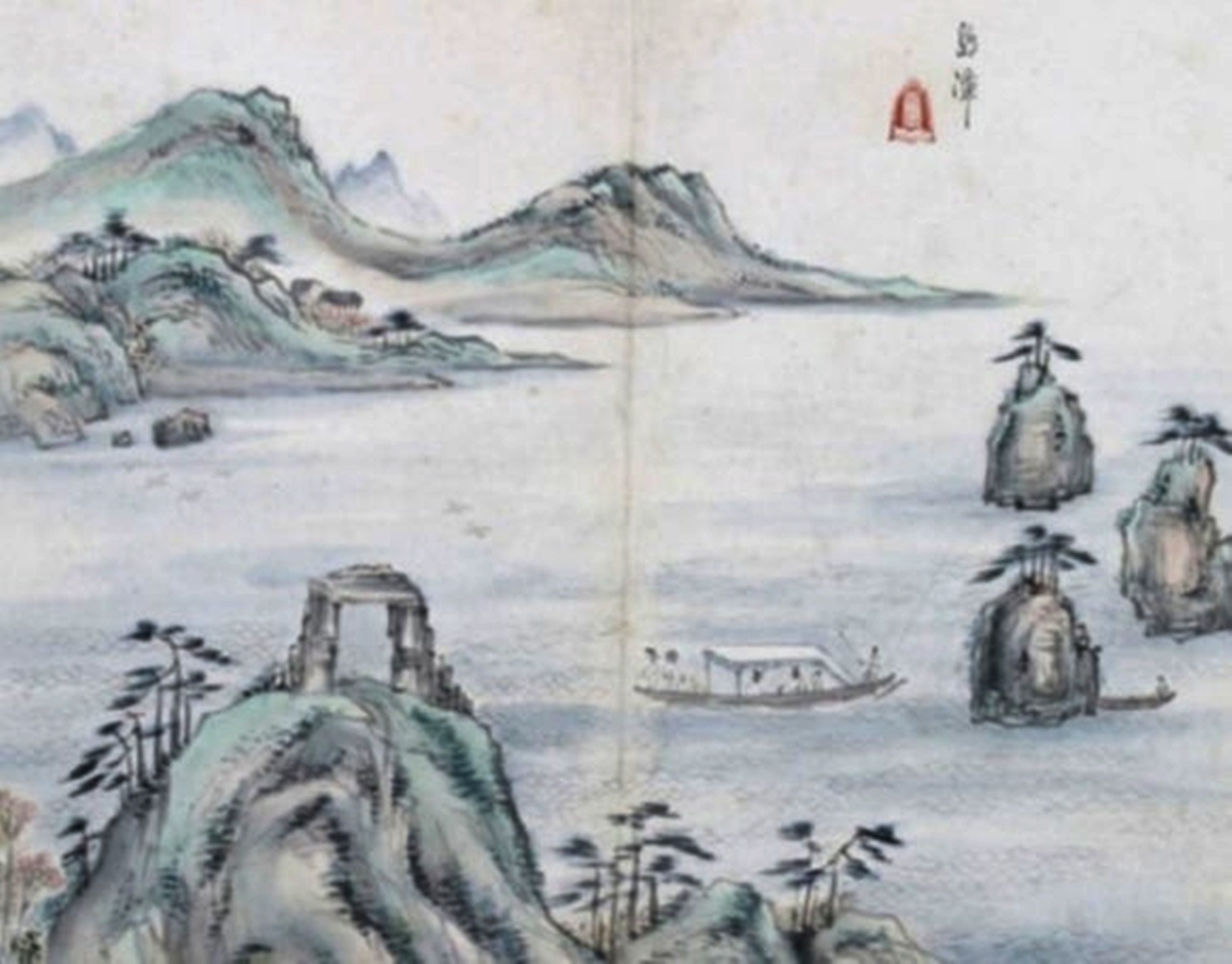 봉우리가 우뚝 솟아 있다. 푸른 강물 위에 기암괴석이 모두 남쪽으로 비스듬히 기울어져 있는데 가운데