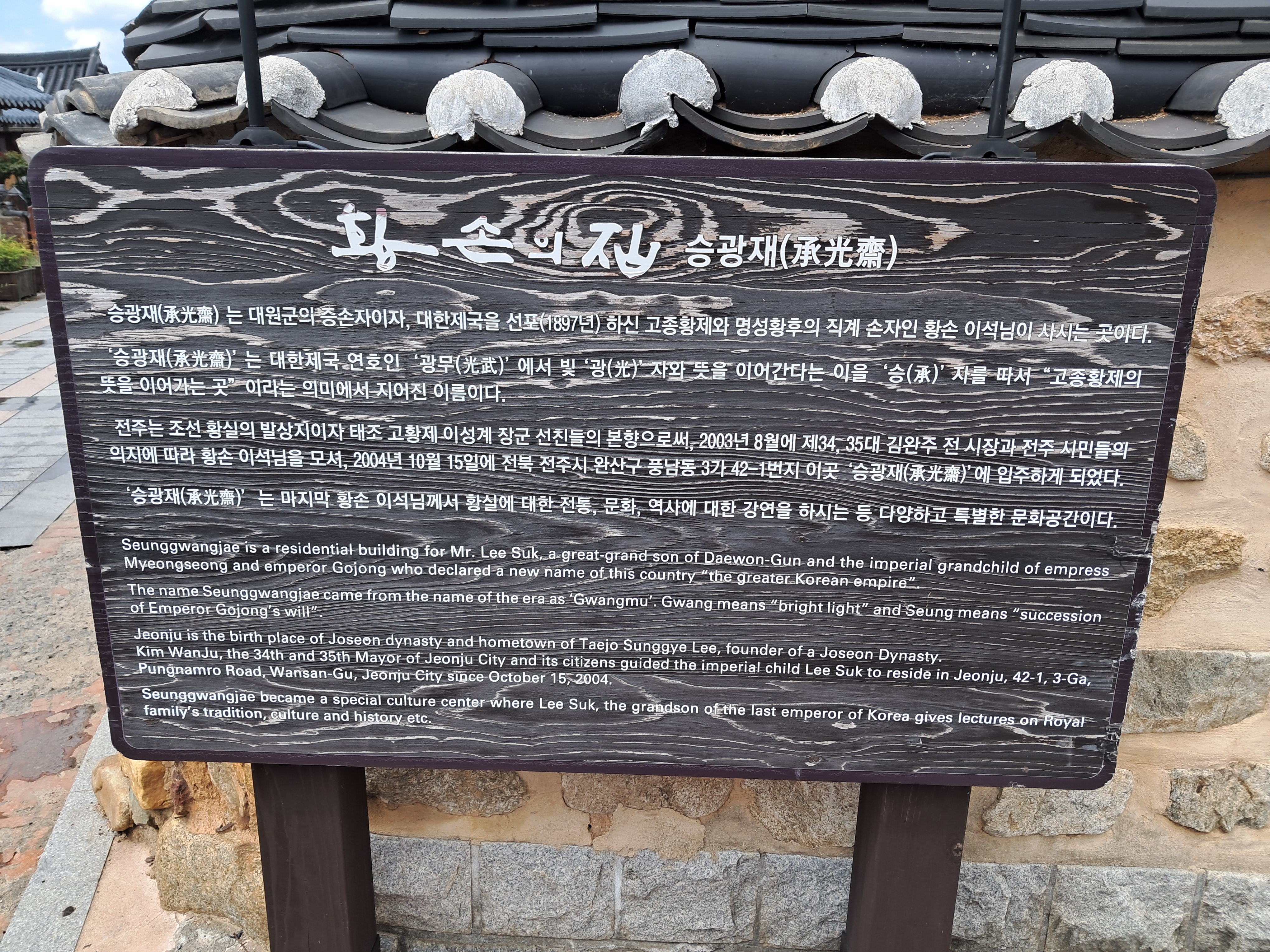 이곳은 전주한옥마을 내에 위치한 한옥으로 대원군의 증손자이자, 대한제국을 선포한 고종황제와 명성황후의