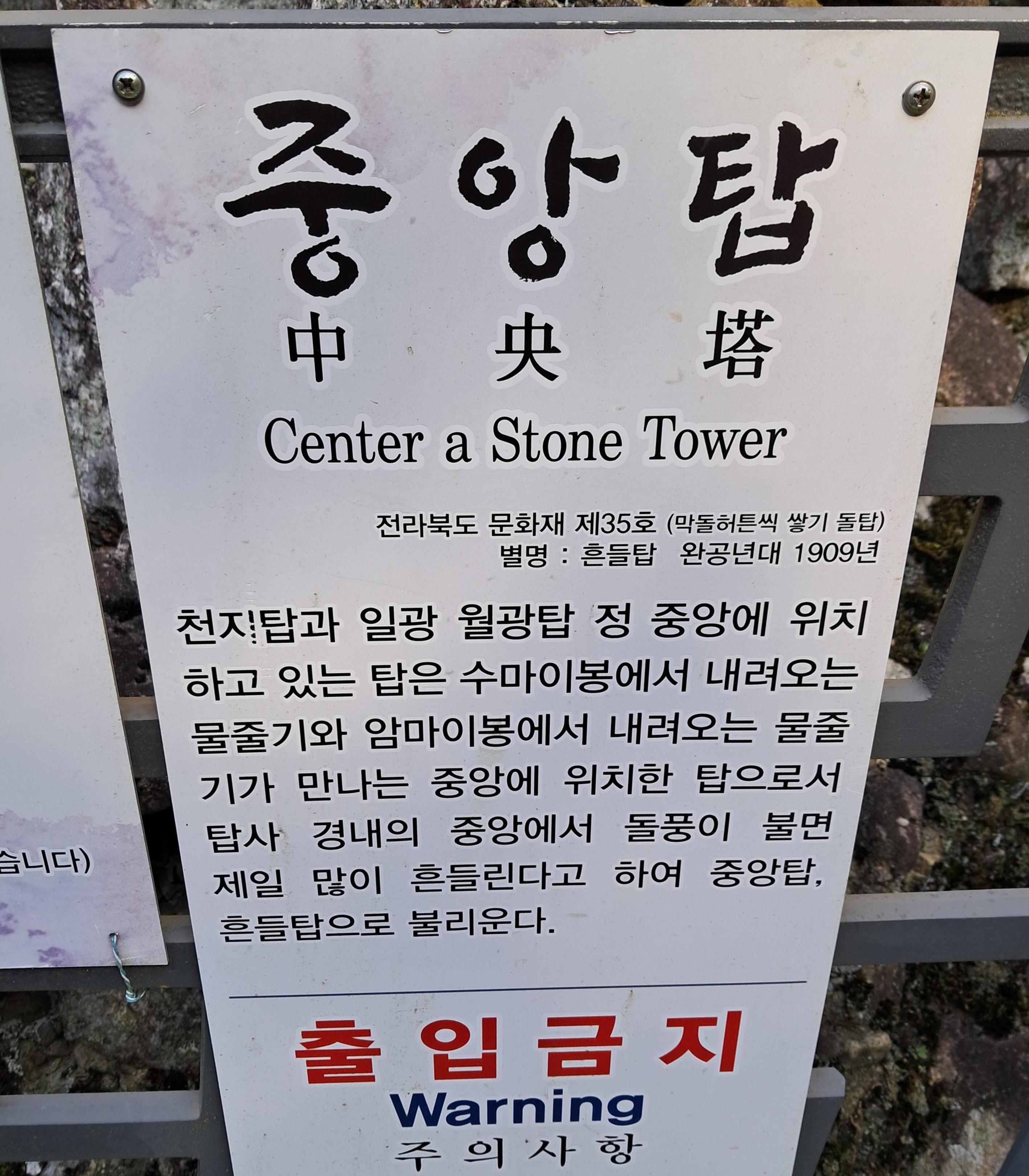 가장 위쪽에 있지만 태풍과 강풍에도 견고하게 남아 있는 것을 보면 보통으로 쌓은 탑이 아니다