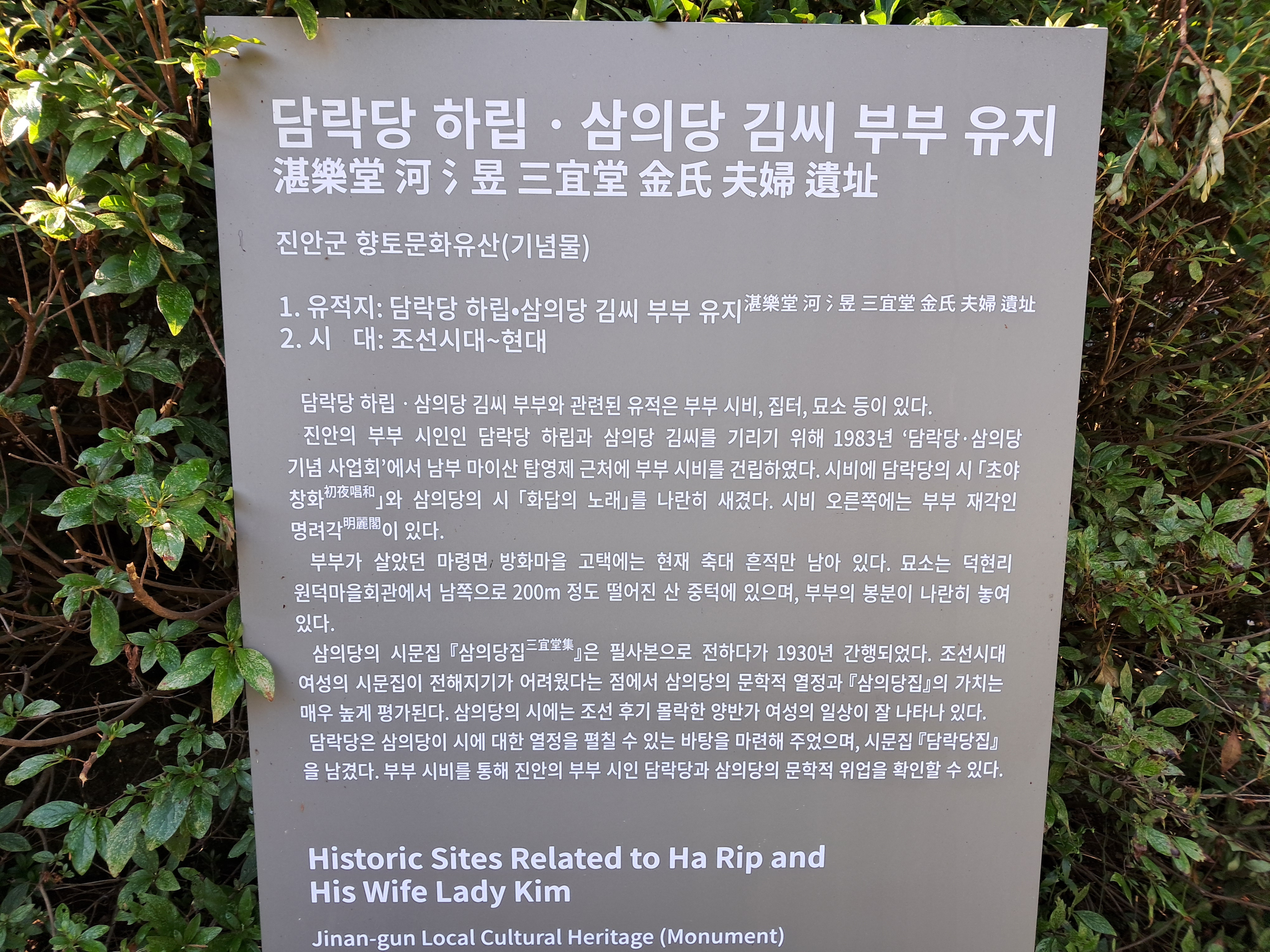 담락당 하립과 삼의당김씨 시비