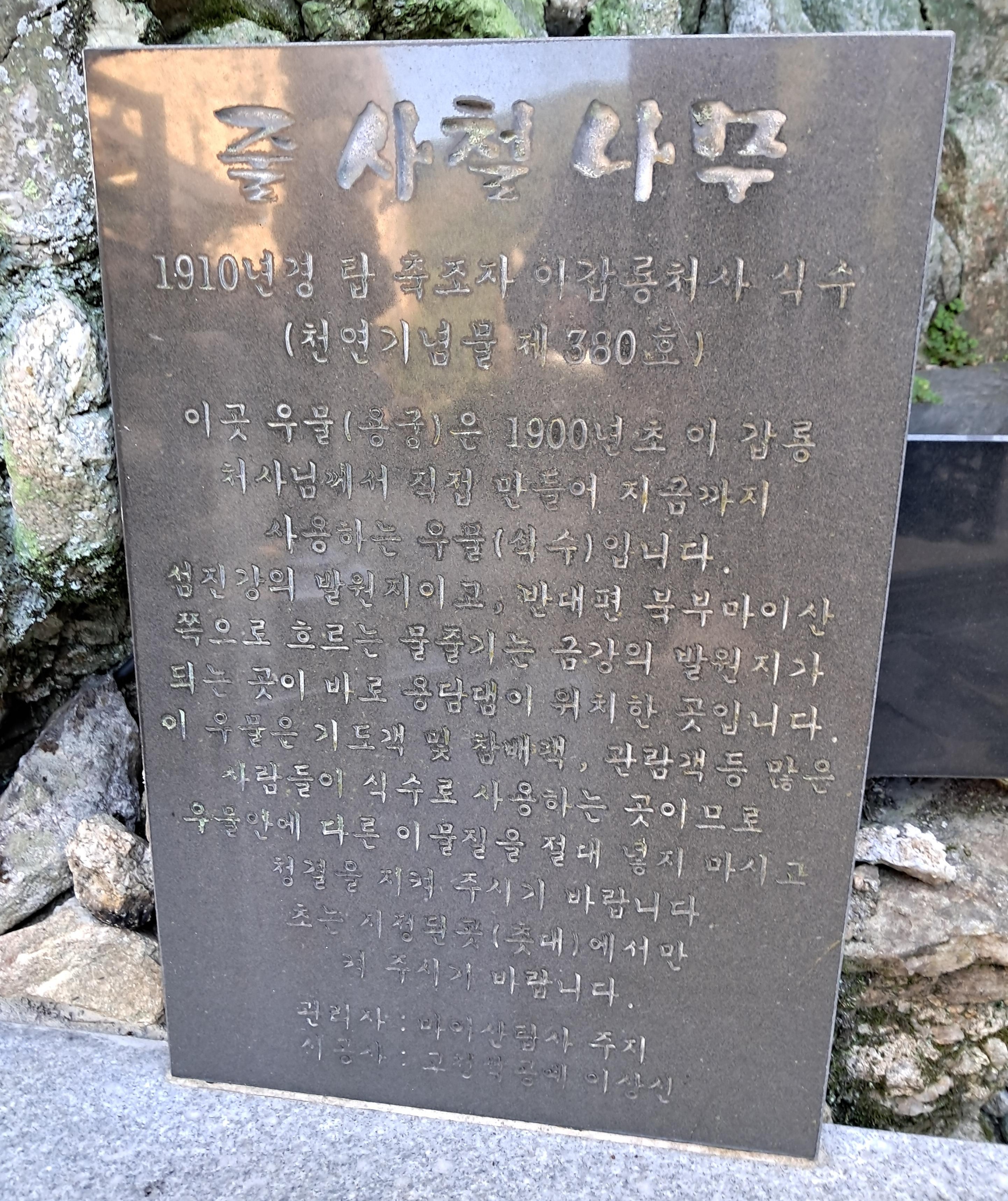 이갑룡선생이 사용하던 우물이며 섬진강 발원지로 알려져 있다