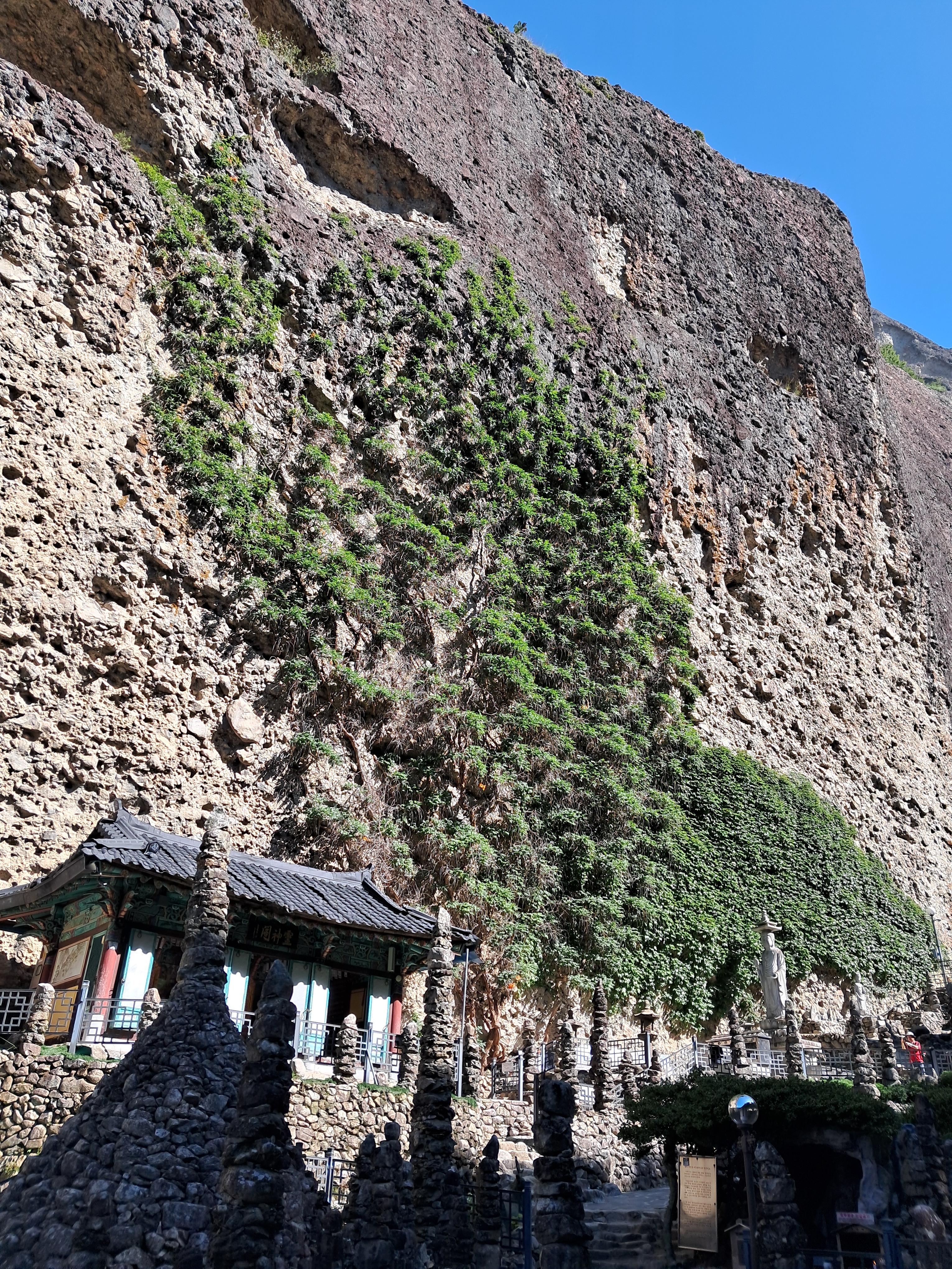 용암절벽에 능소화 꽃이 보인다