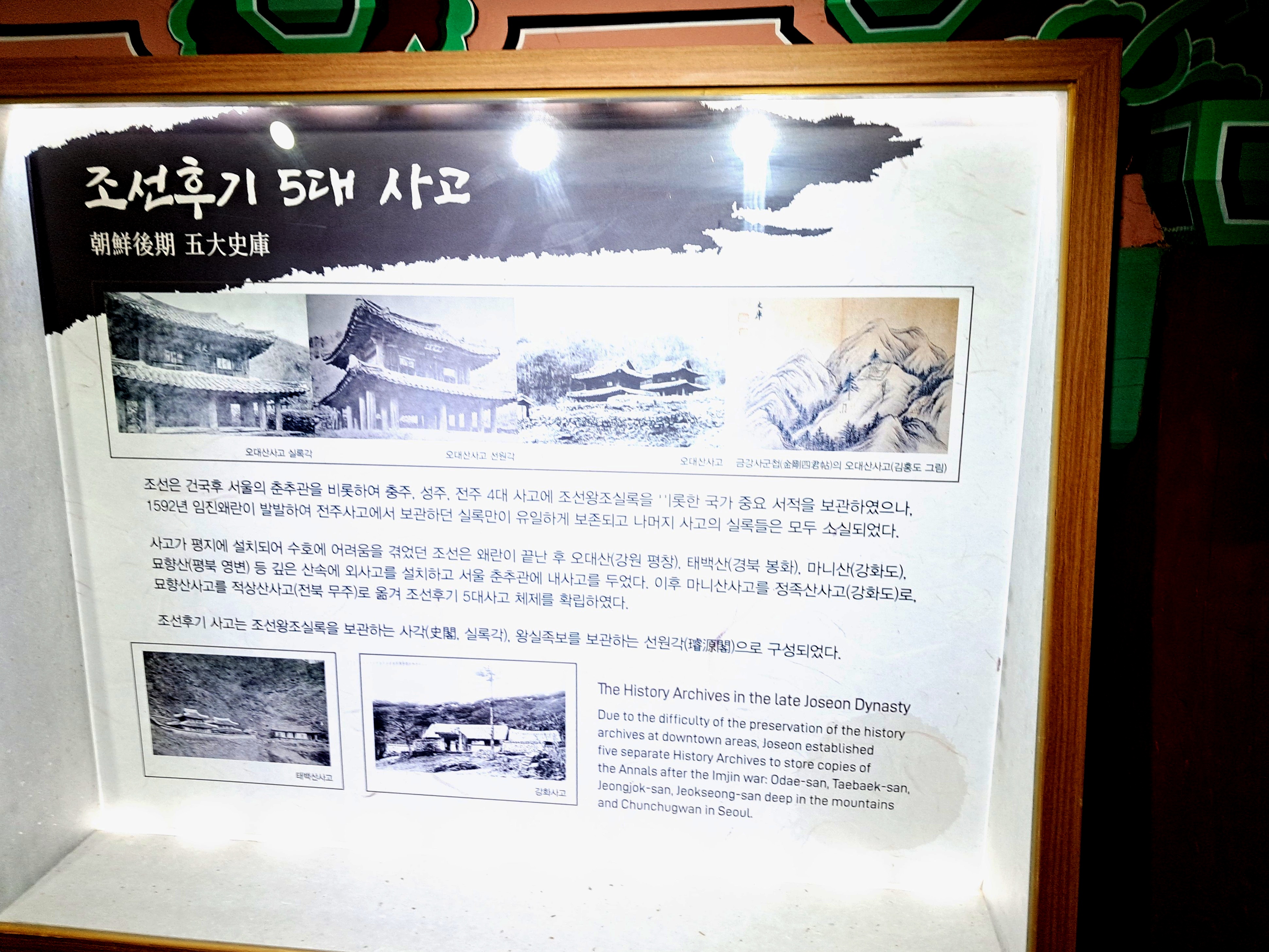 이때 사고 건물 실록의 보관 상태 등을 점검하고 보수하였다