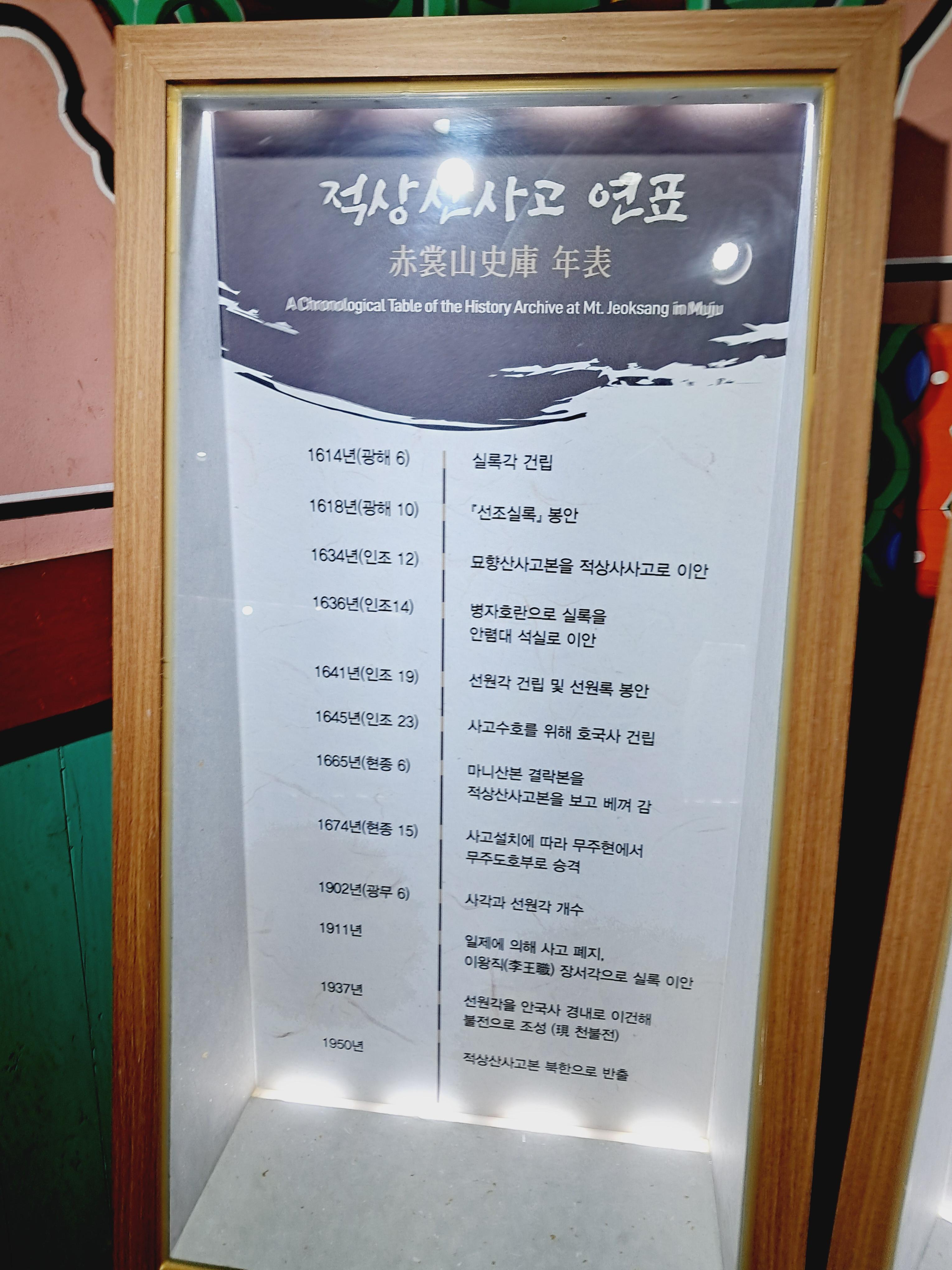 1641년에는 선원각(璿源閣)을 건립하고 『선원록(璿源錄)』을 봉안하여 적상산사고는 완전한 사고의 역할을