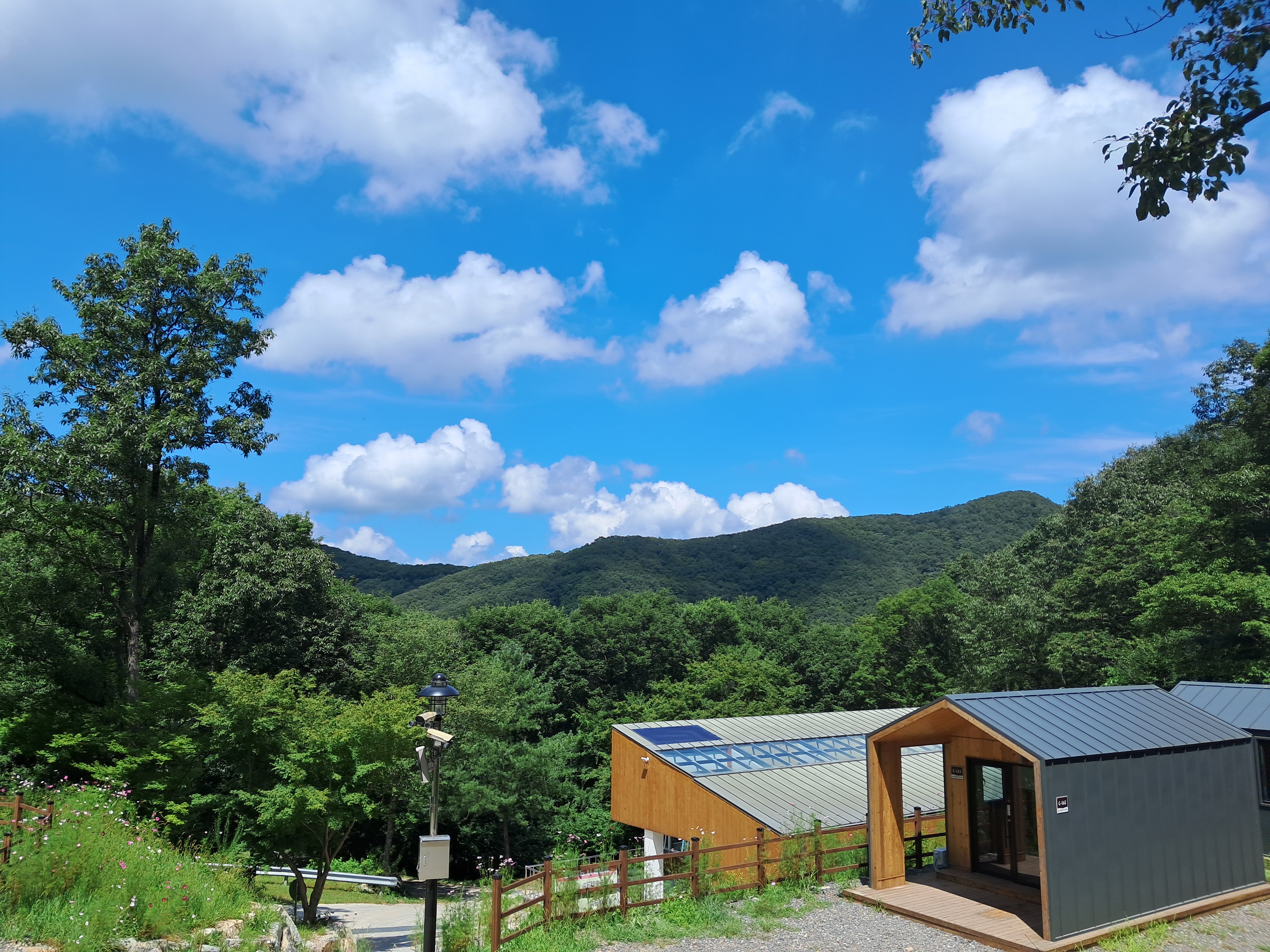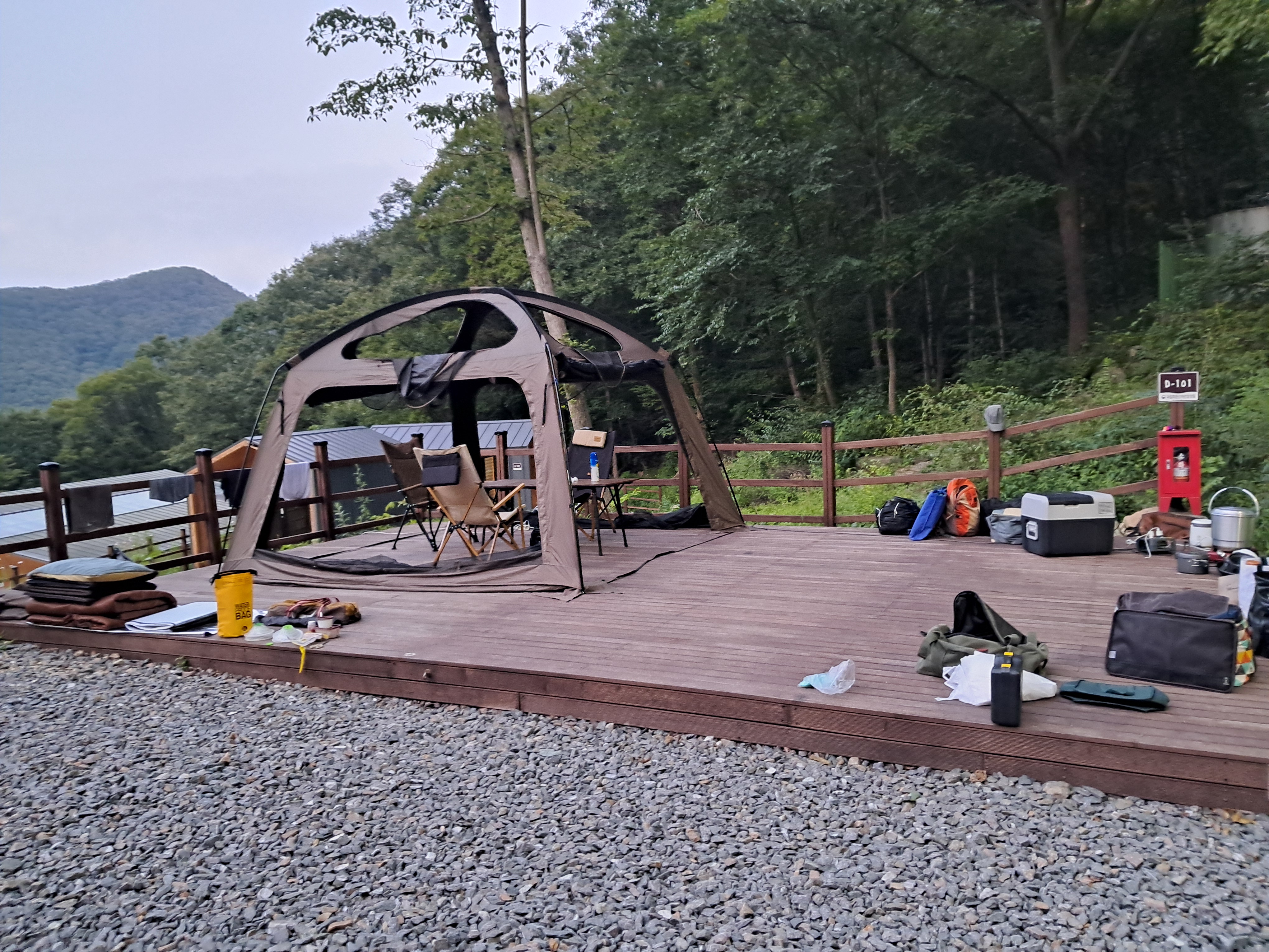 덕유산 휴양림에 비해 데크가 두 배도 더 넓다 그리고 바로 옆에 주차를 할 수 있으니 얼마나 편리 한가