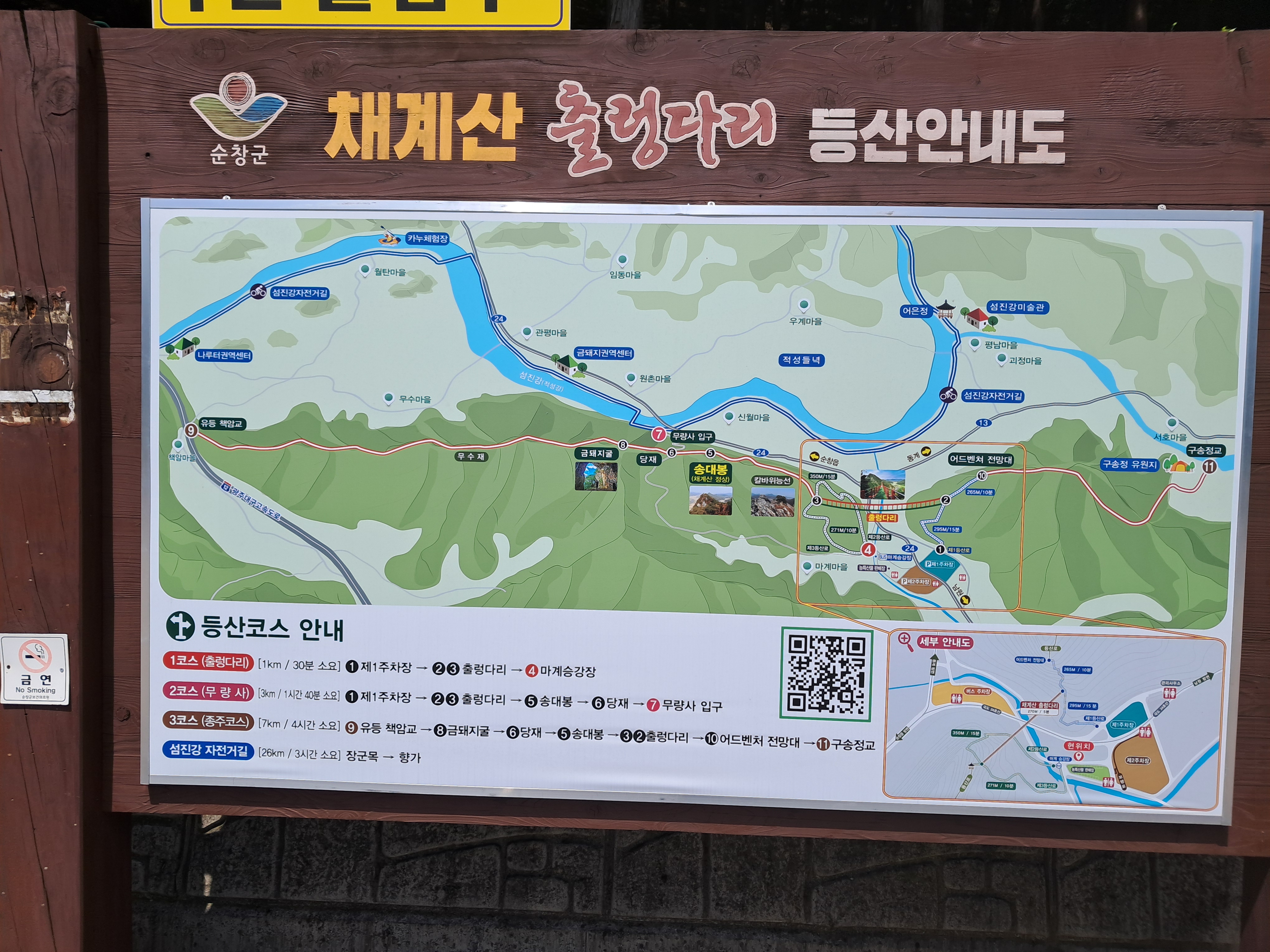적성강을 품고 있어 적성산으로도 불린다. 채계산 출렁다리는 24번 국도 사이에 적성 체계산과 동계 체계산으로