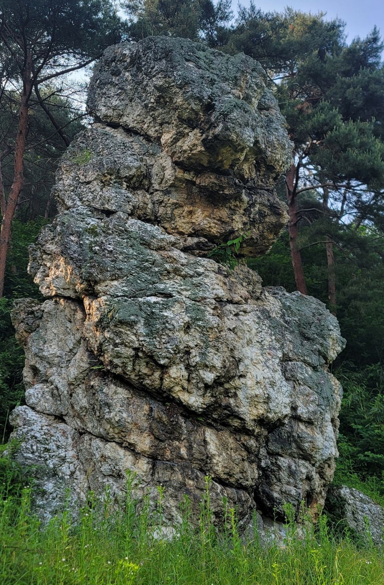 색깔을 달리하는 거대한 흰 바위가 있는데, 높이가 6자가 넘고 그 형상이 마치 백발노인이 우뚝 서 있는 모습과