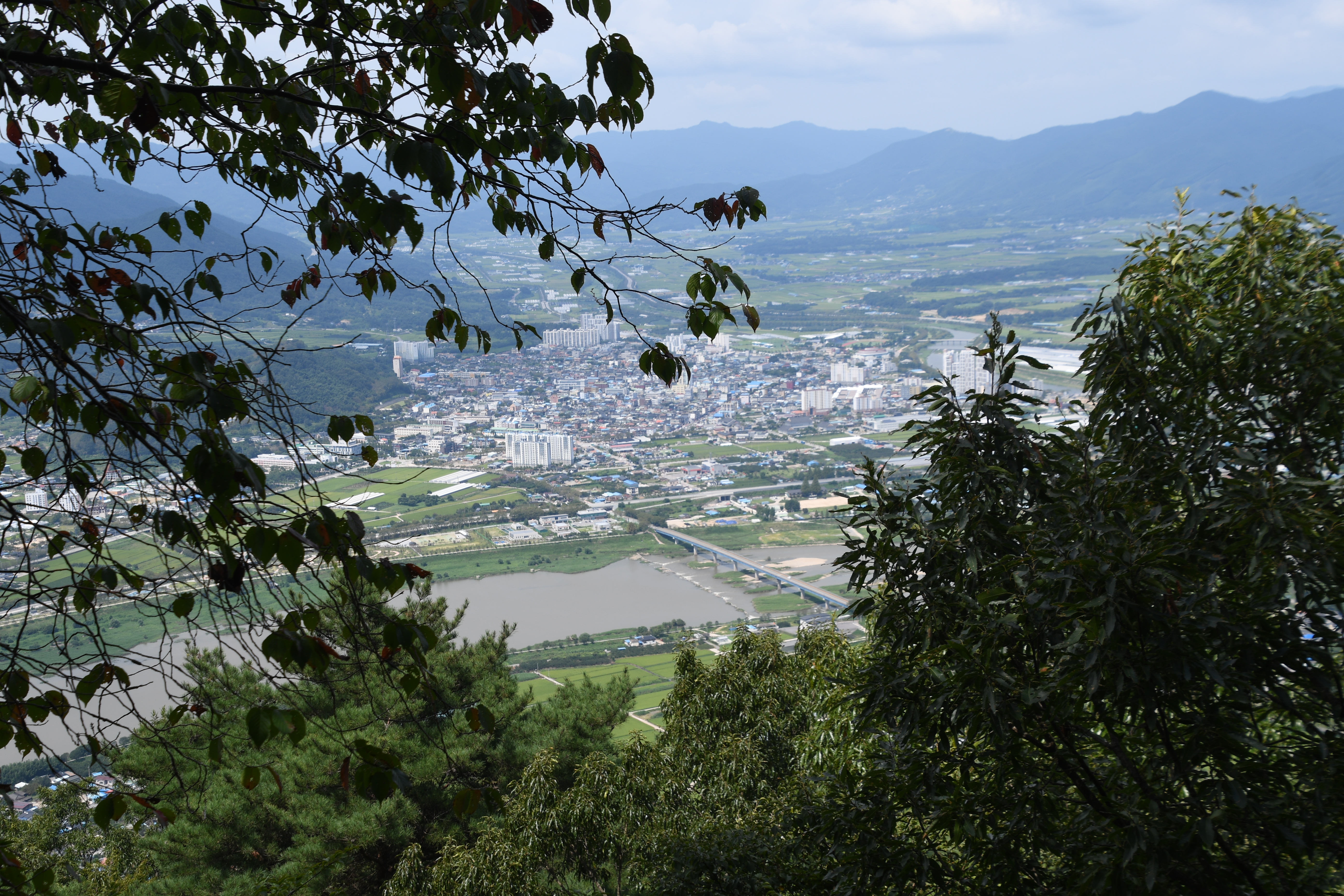 주변에는 천왕봉(695m)·봉성산(364m) 등이 솟아 있다.