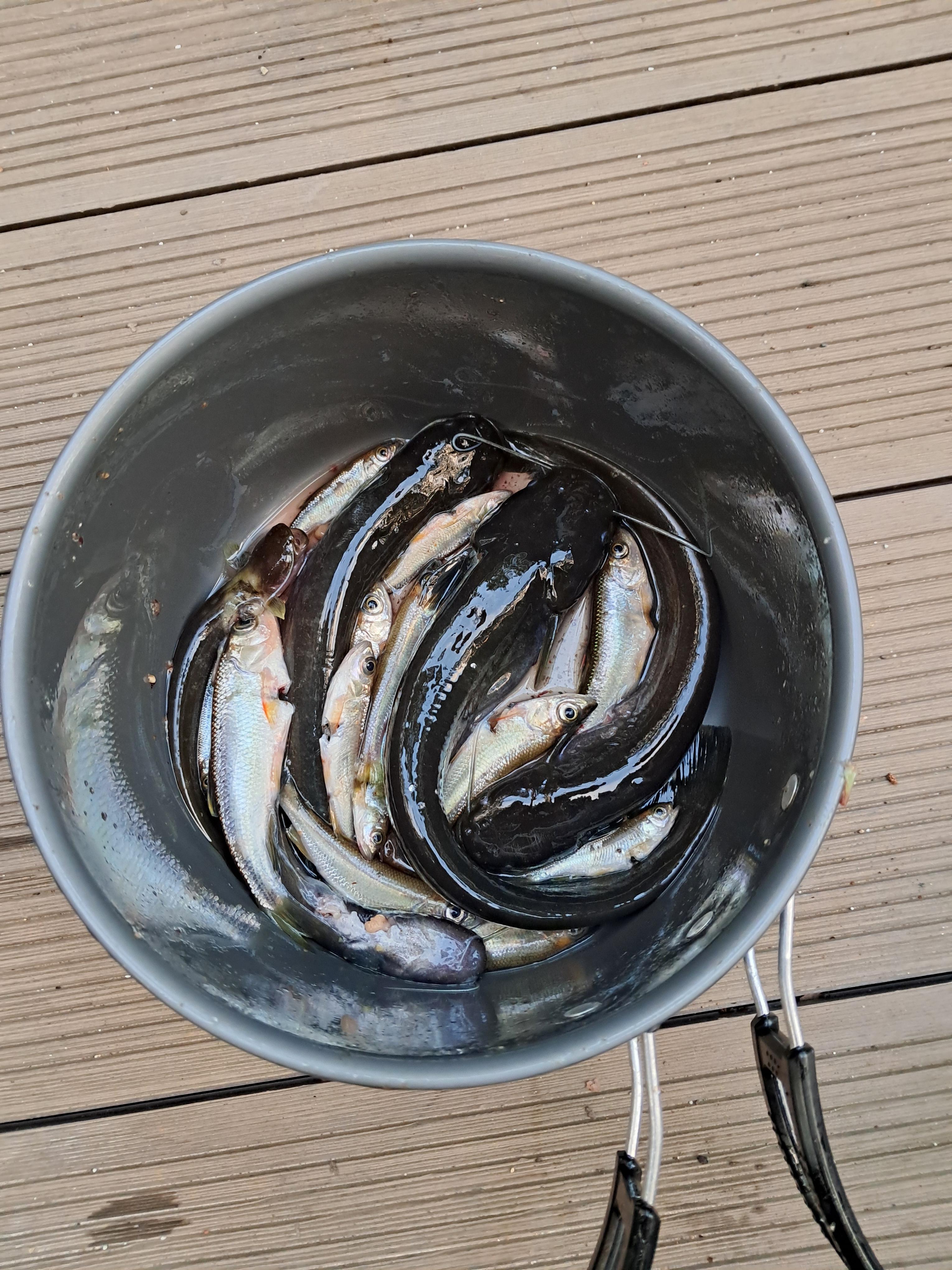 계곡물도 많지 않아 저녁에 통발을 놓았더니 산골에서 생각지도 않은 메기가 5마리나 잡혔다