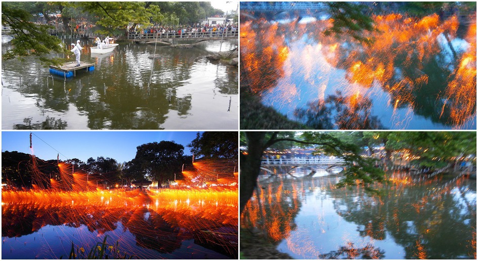 이 낙화에 불을 붙여 꽃가루처럼 물 위에 날리는 불꽃놀이이다 대한민국구석구석에서