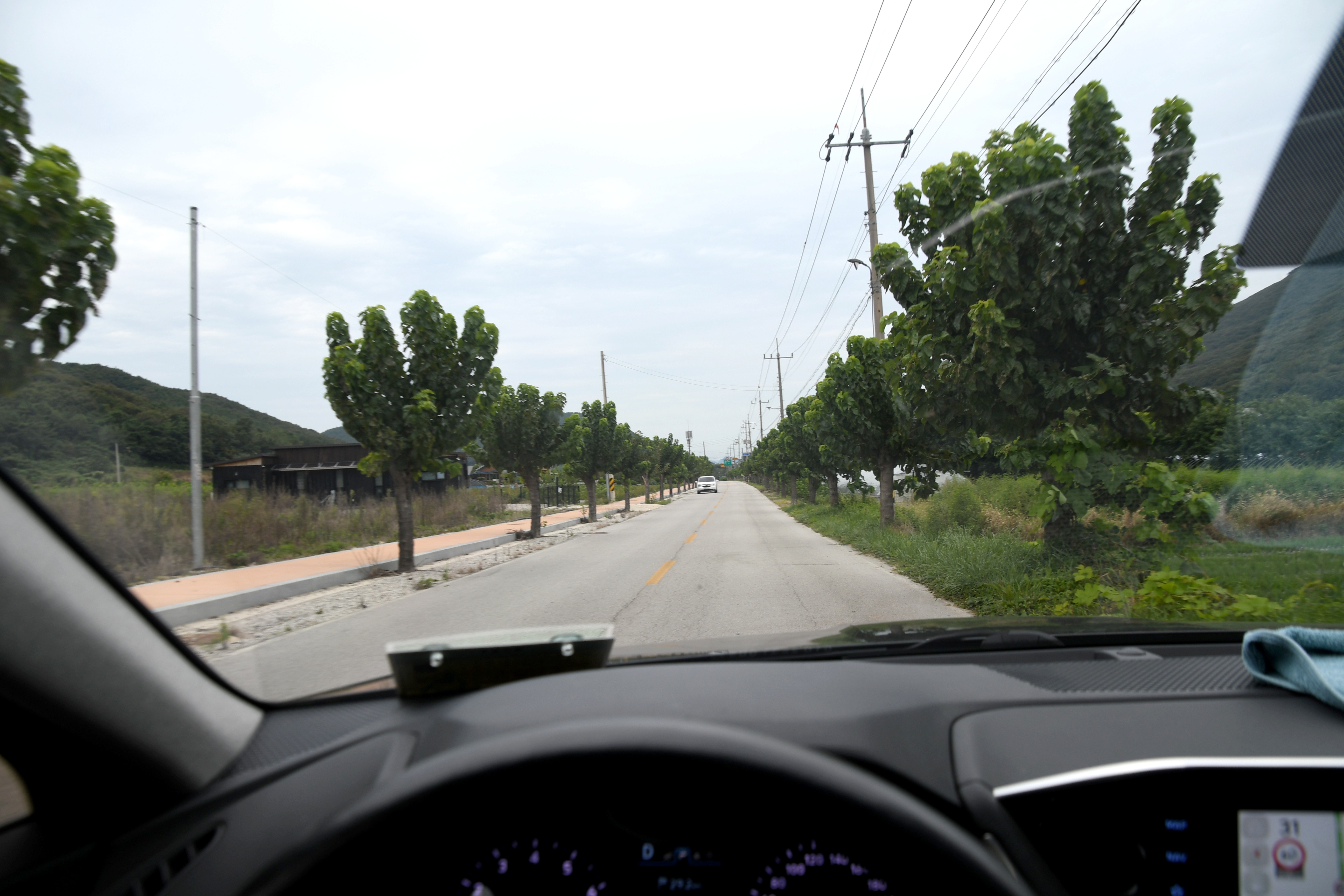 내소사에서 새만금 방조제길로 가는 지방도 변에는 가로수가 뽕나무다