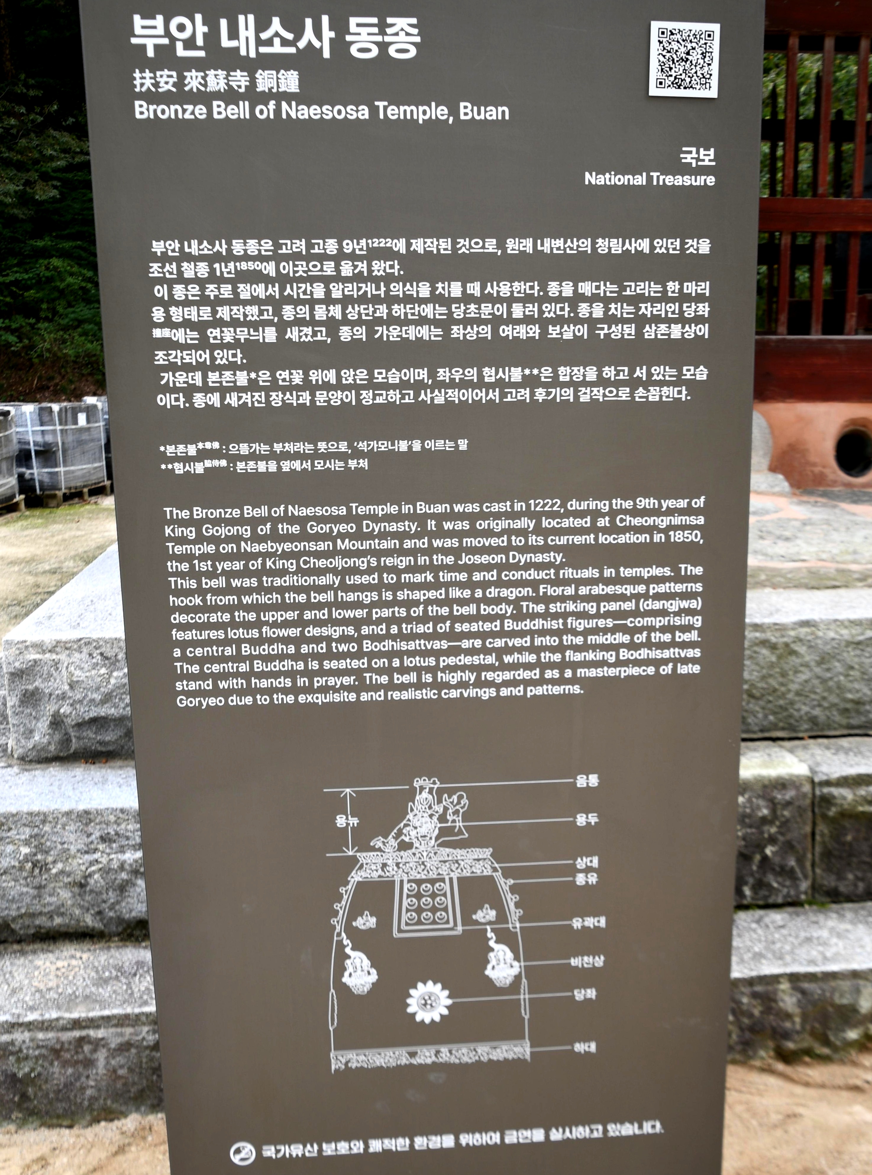 전북특별자치도 부안군 내소사에 있는, 고려시대 동종. 1222년 작. 보물 제277호. 높이 103cm,