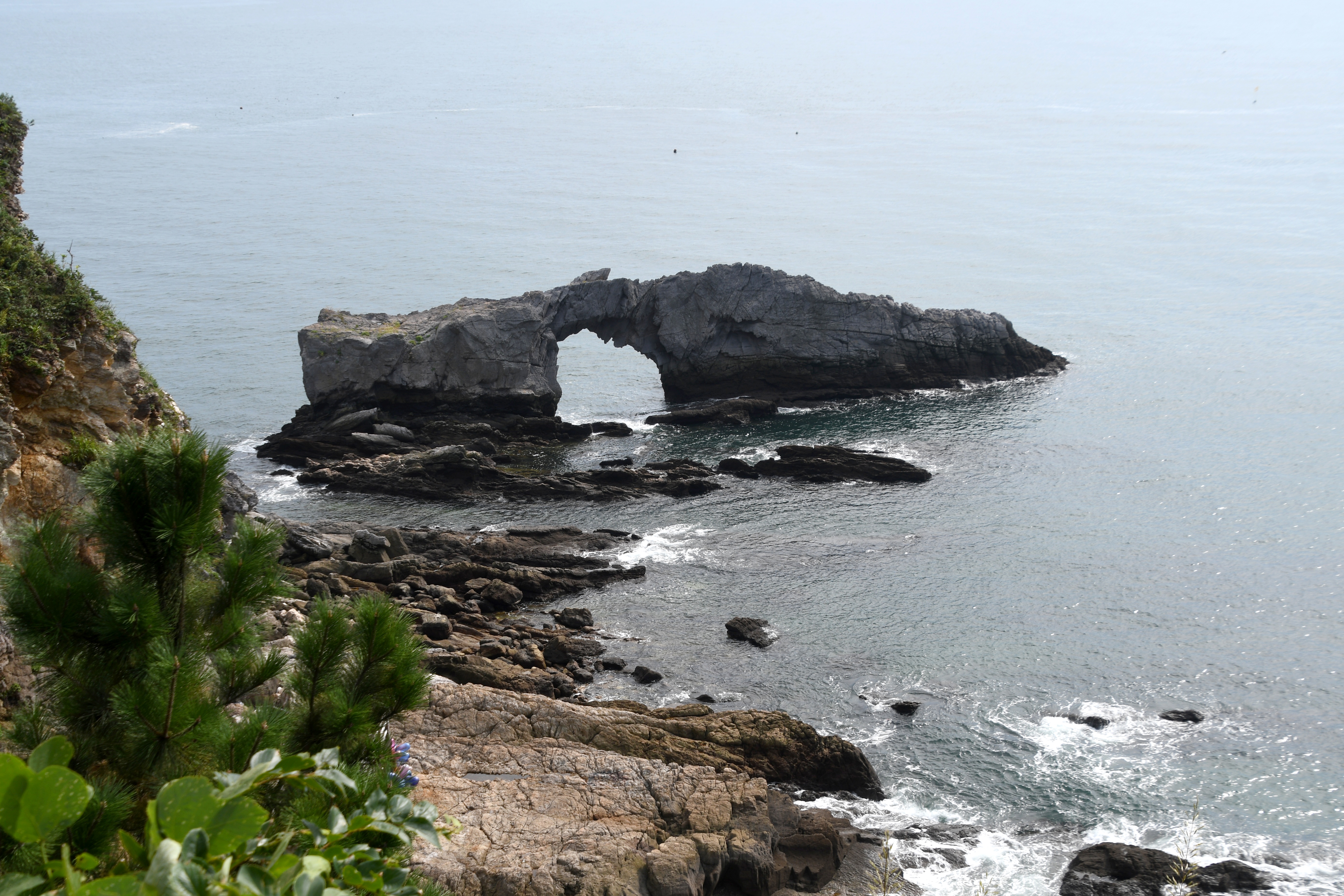 독립문 바위처럼 파도의 침식으로 형성된 아치형 바위로는 국가지질공원인 울릉도의 코끼리 바위가 같은