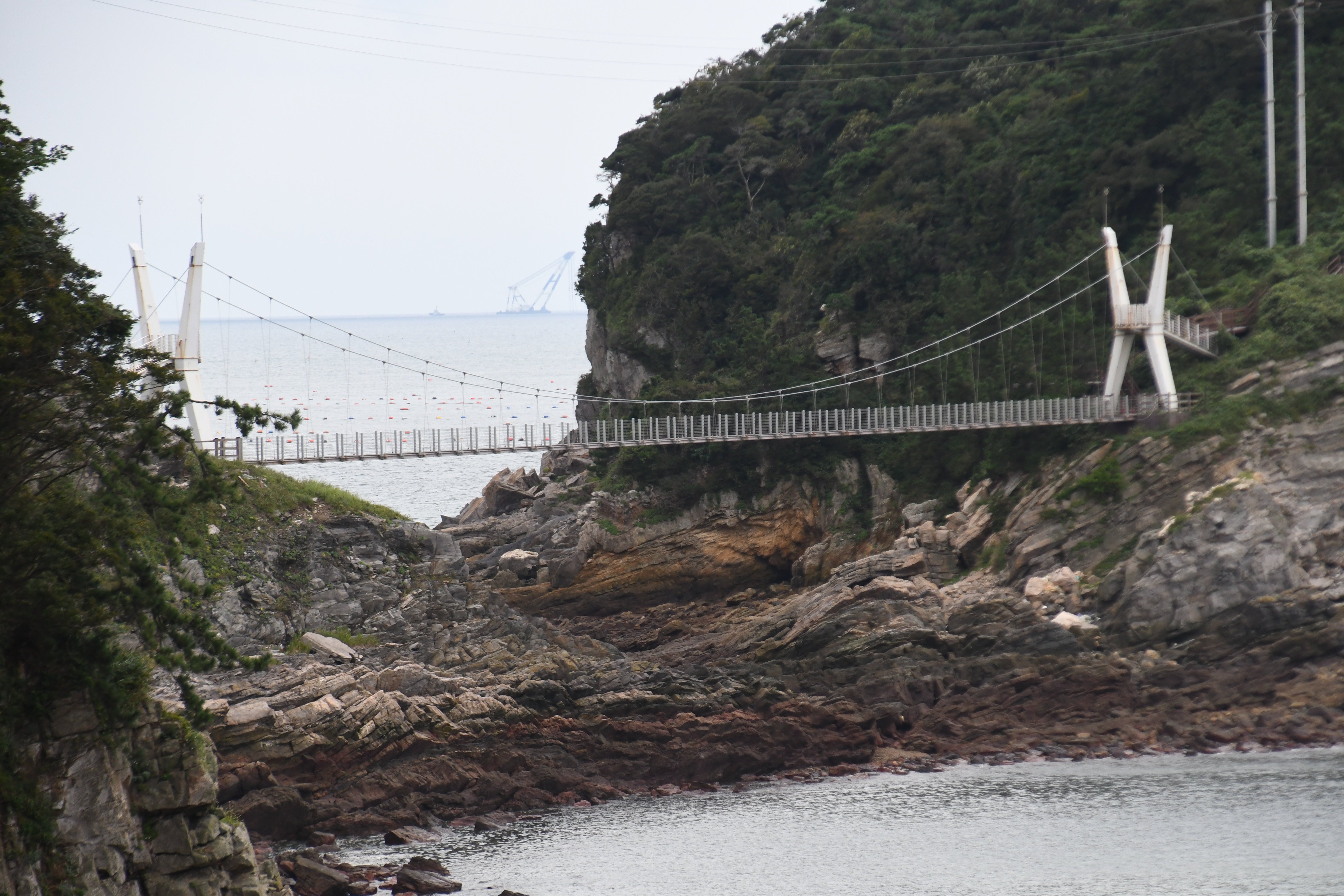 아침에 줌으로 당겨본 출렁다리 풍경인데 이런 때는 한 달에 두 번 정도 물길이 열리면
