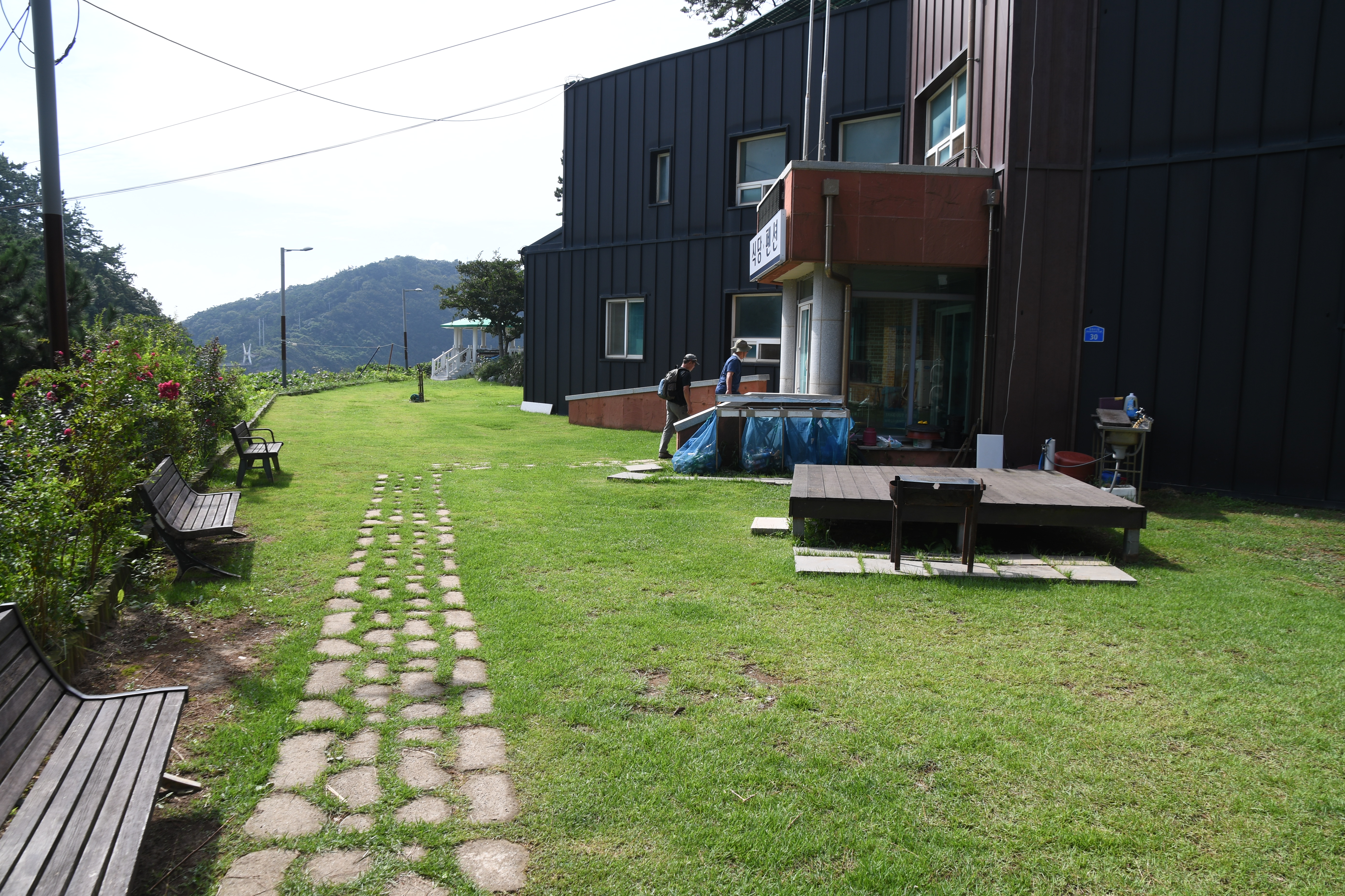일행이 펜션으로 들어가고 있다