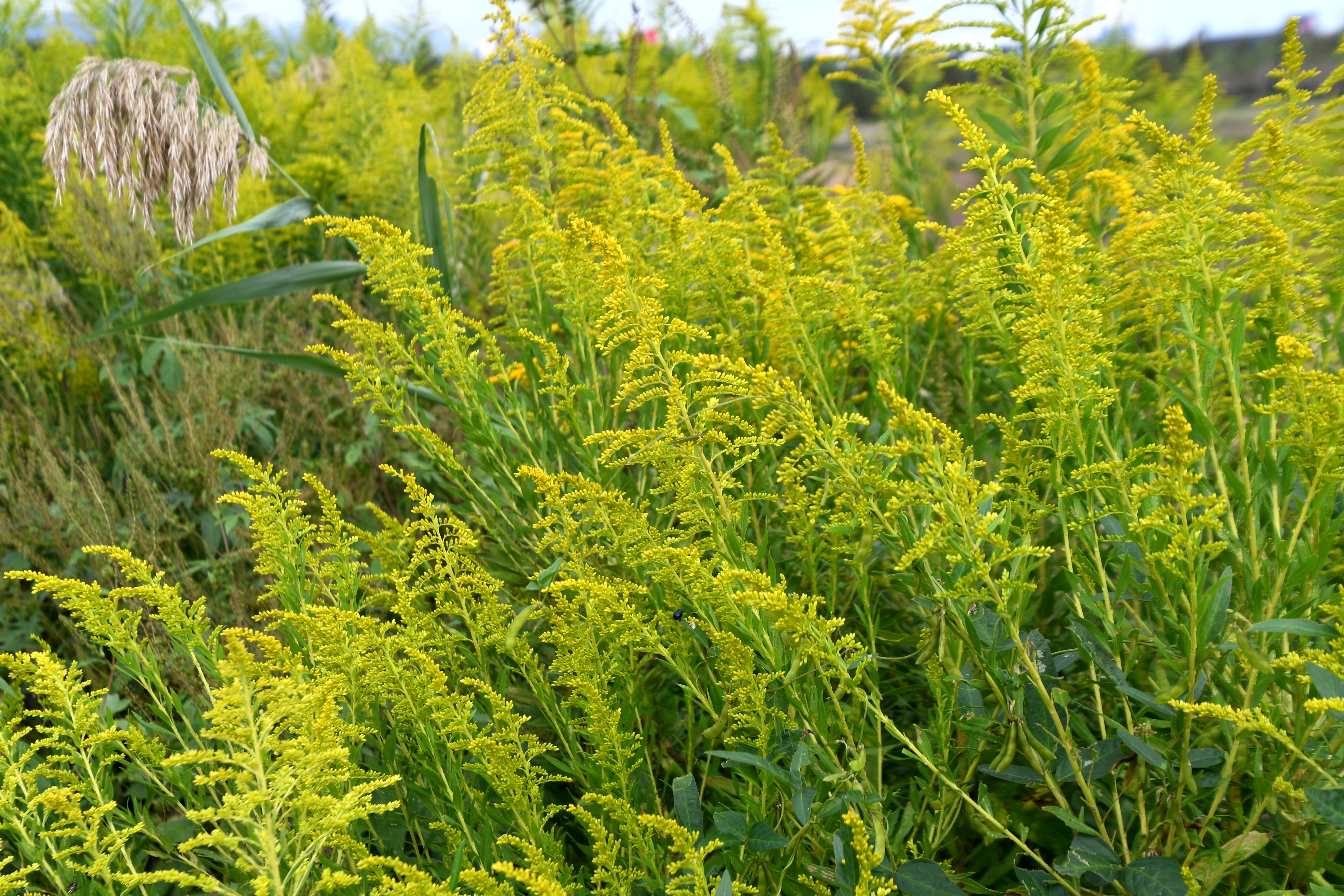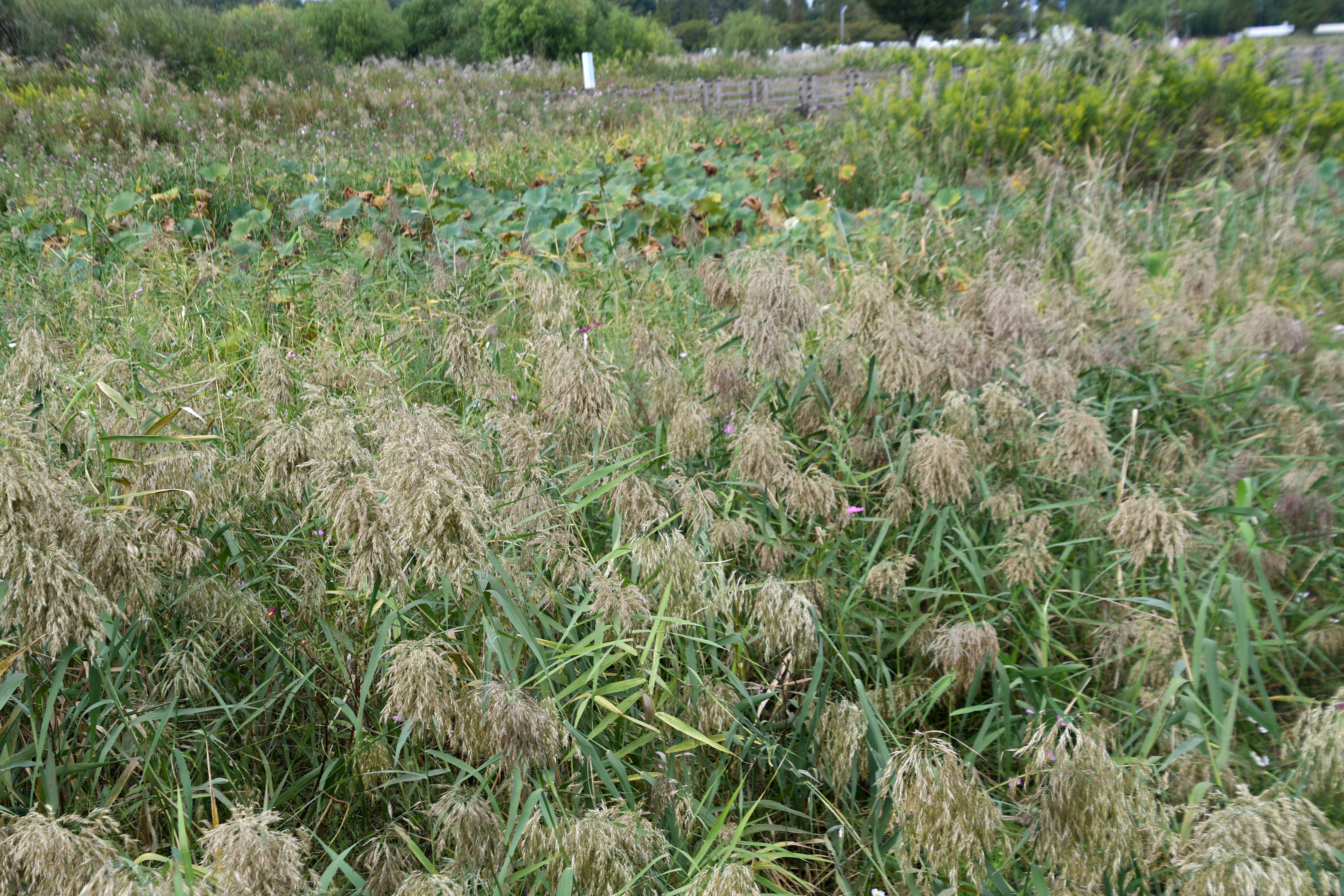 양미역취가 얼마나 번식력이 강한지 갈대나 억새가 살아남지를 못한다