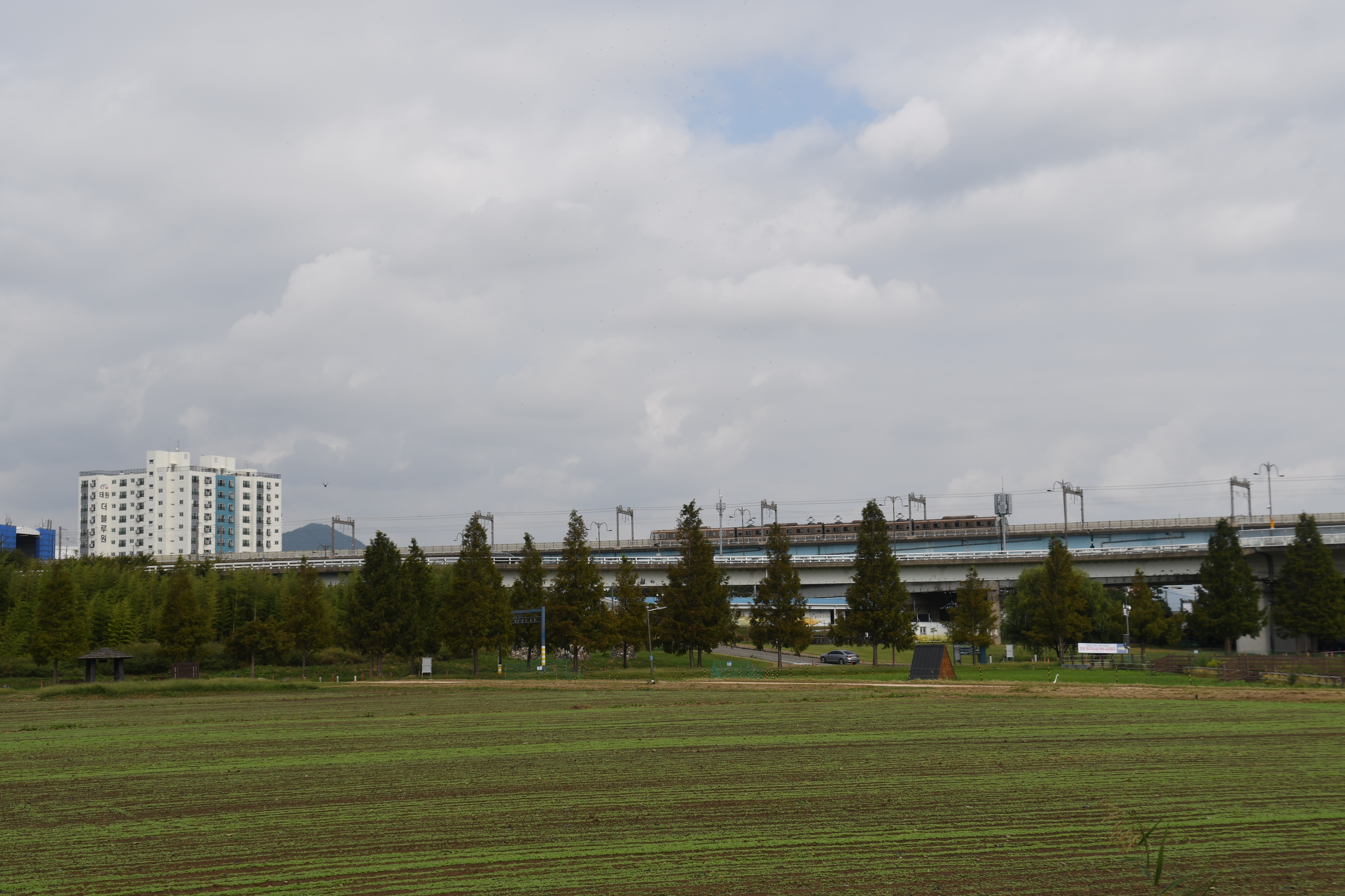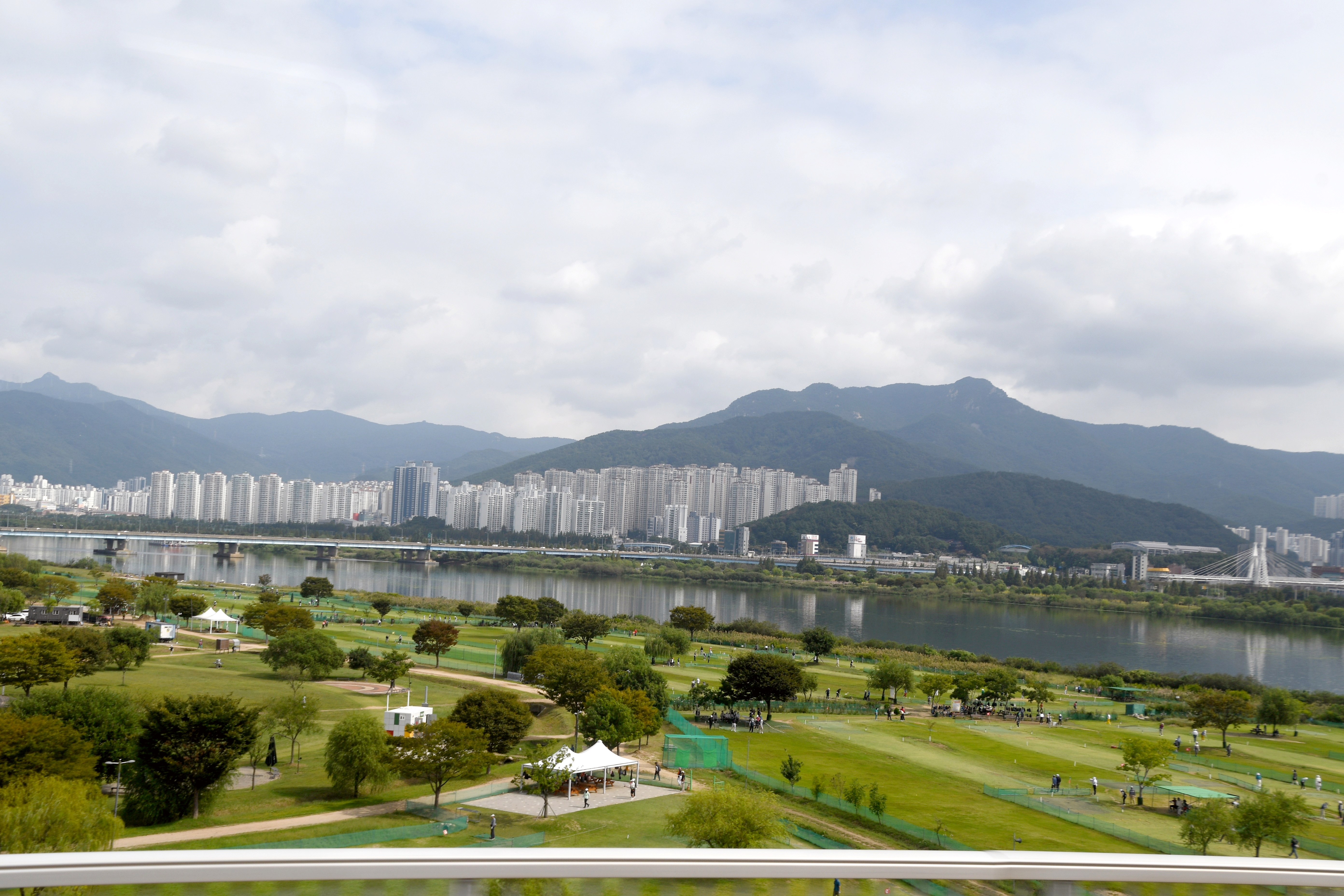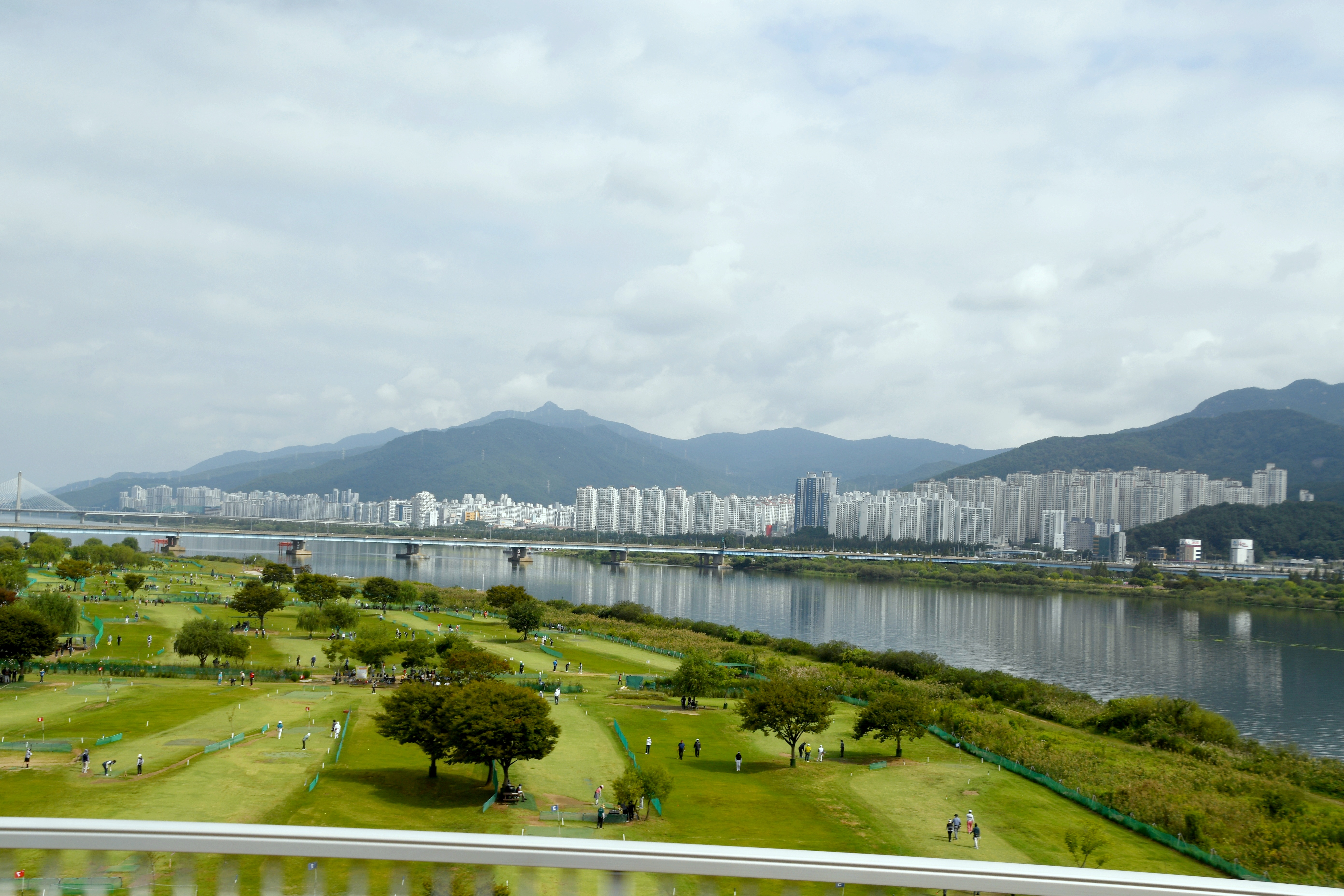 집에 오면서 차창으로 바라본 파크골프장과 낙동강변의 모습 저 앞에는 화명신도시가 보인다