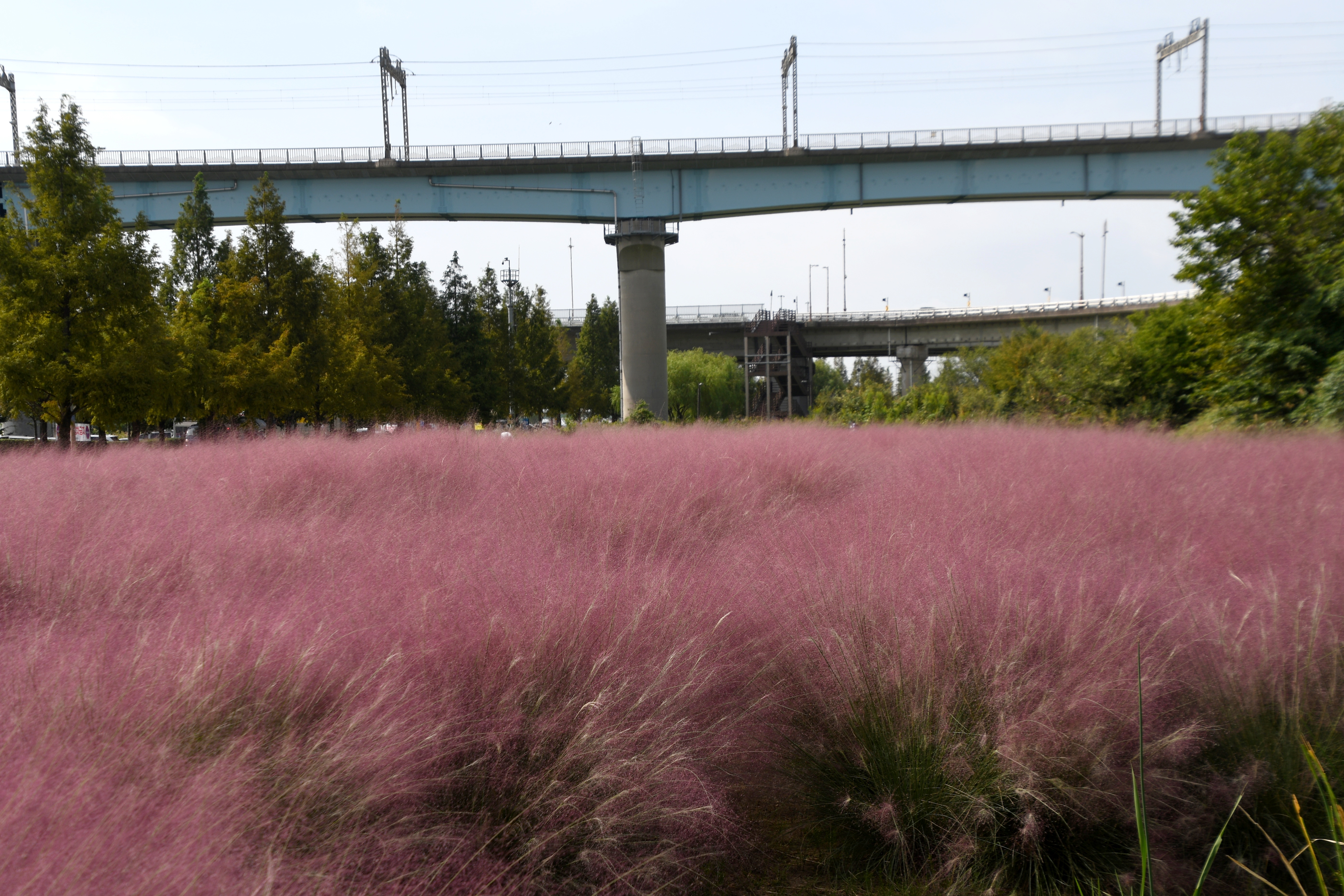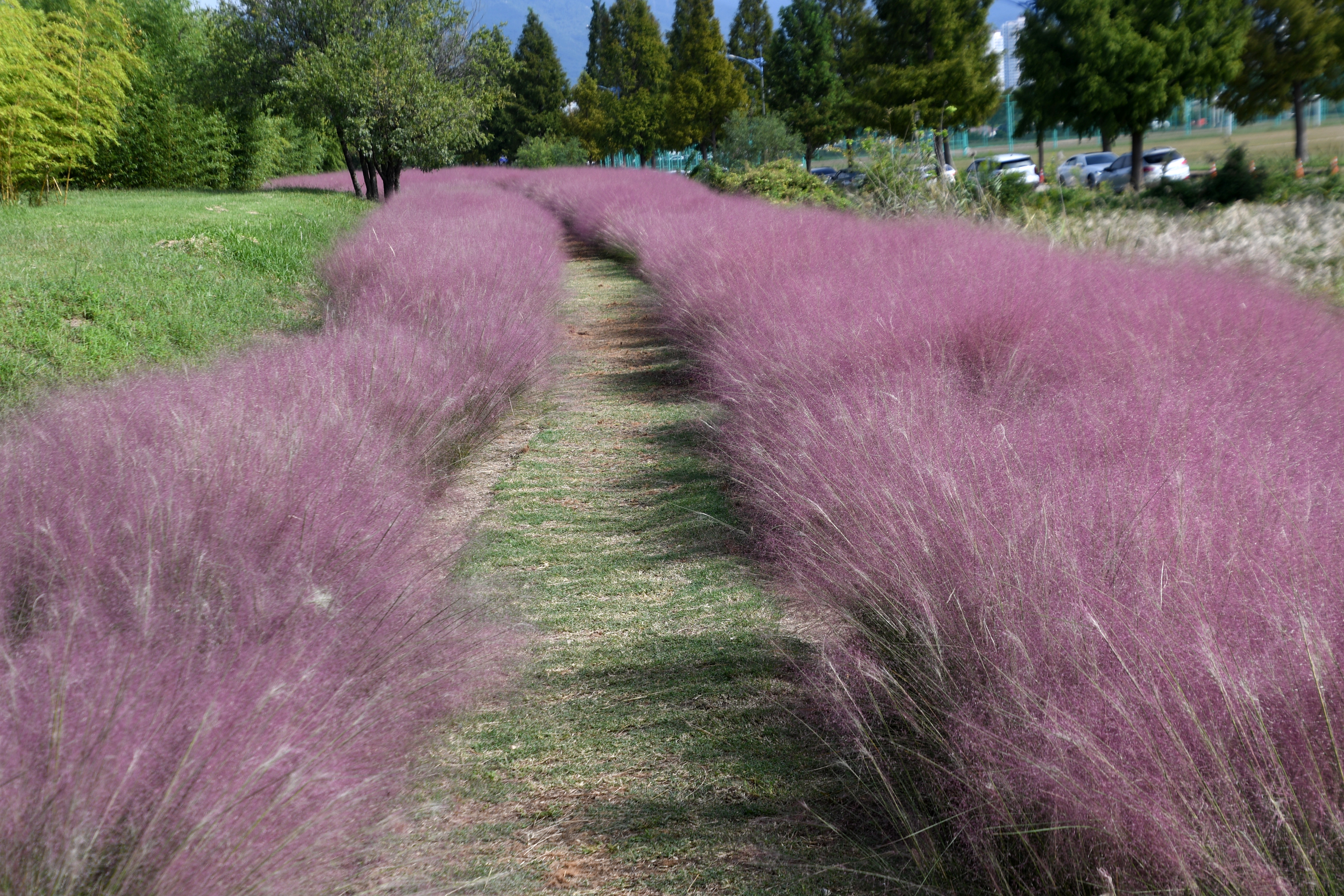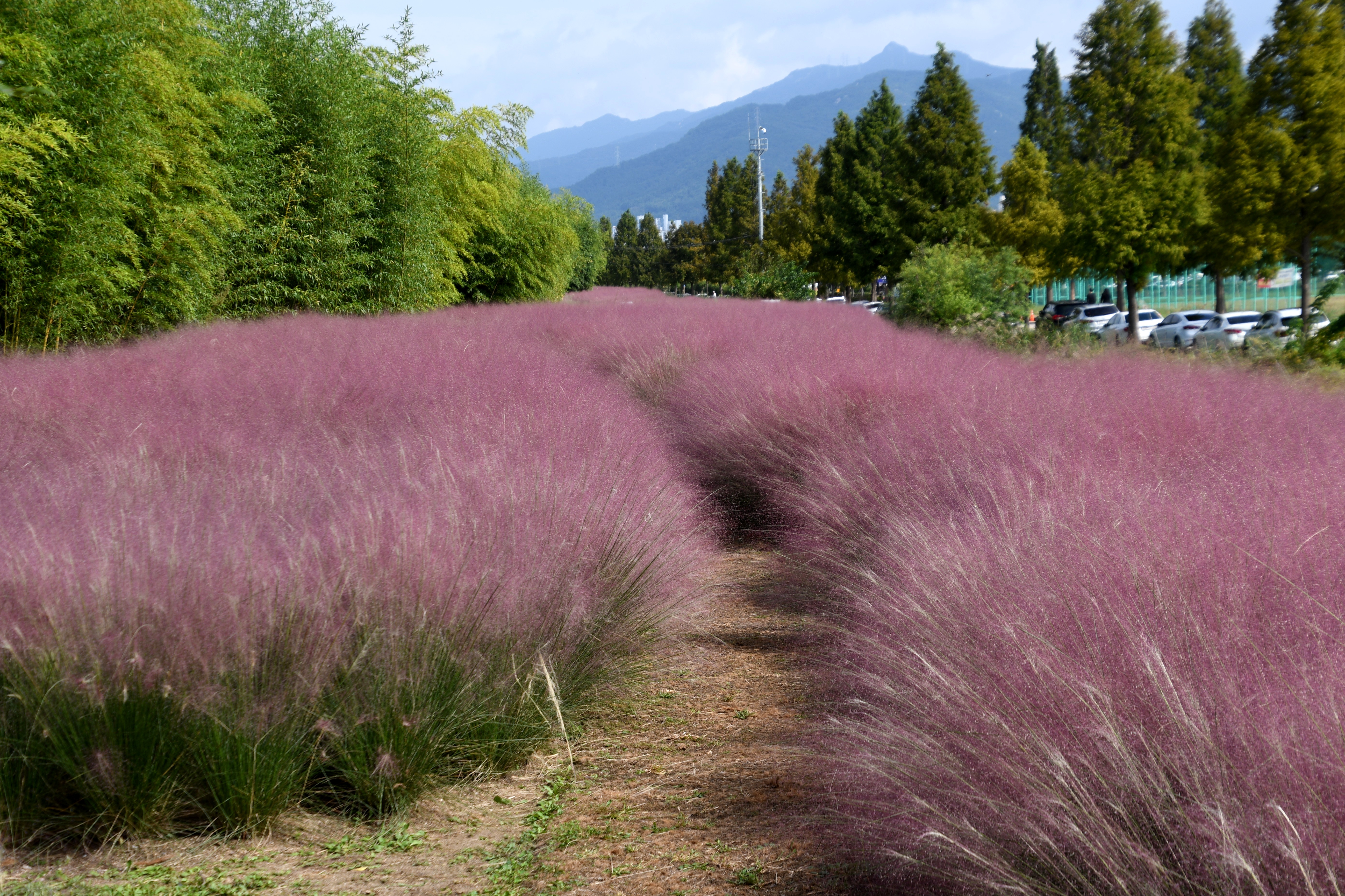 핑크뮬리를 꼽으라면 합천의 신소양체육공원의 핑크뮬리가 무척 아름다운데 이곳과