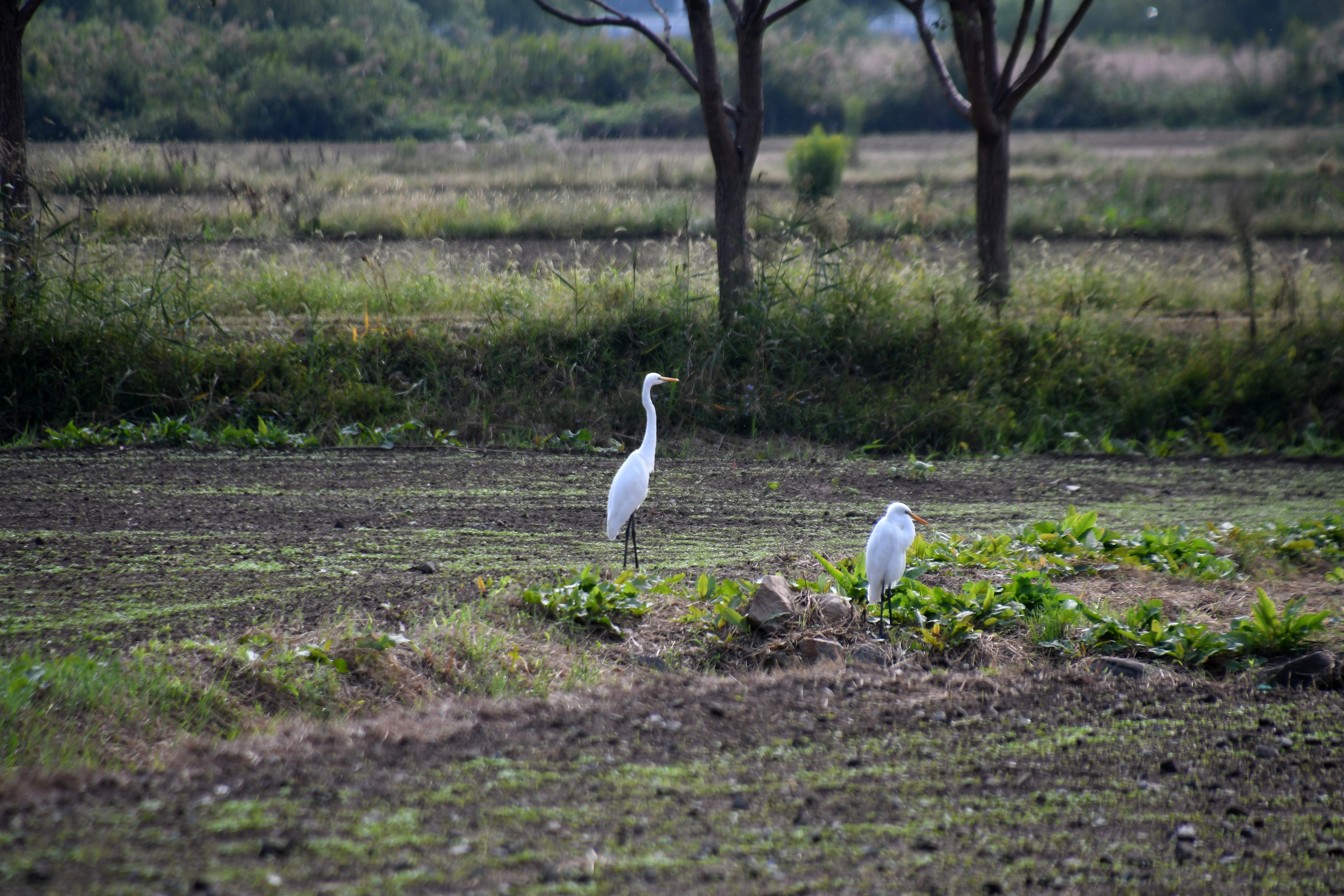 멀리 보이는 두루미 한쌍