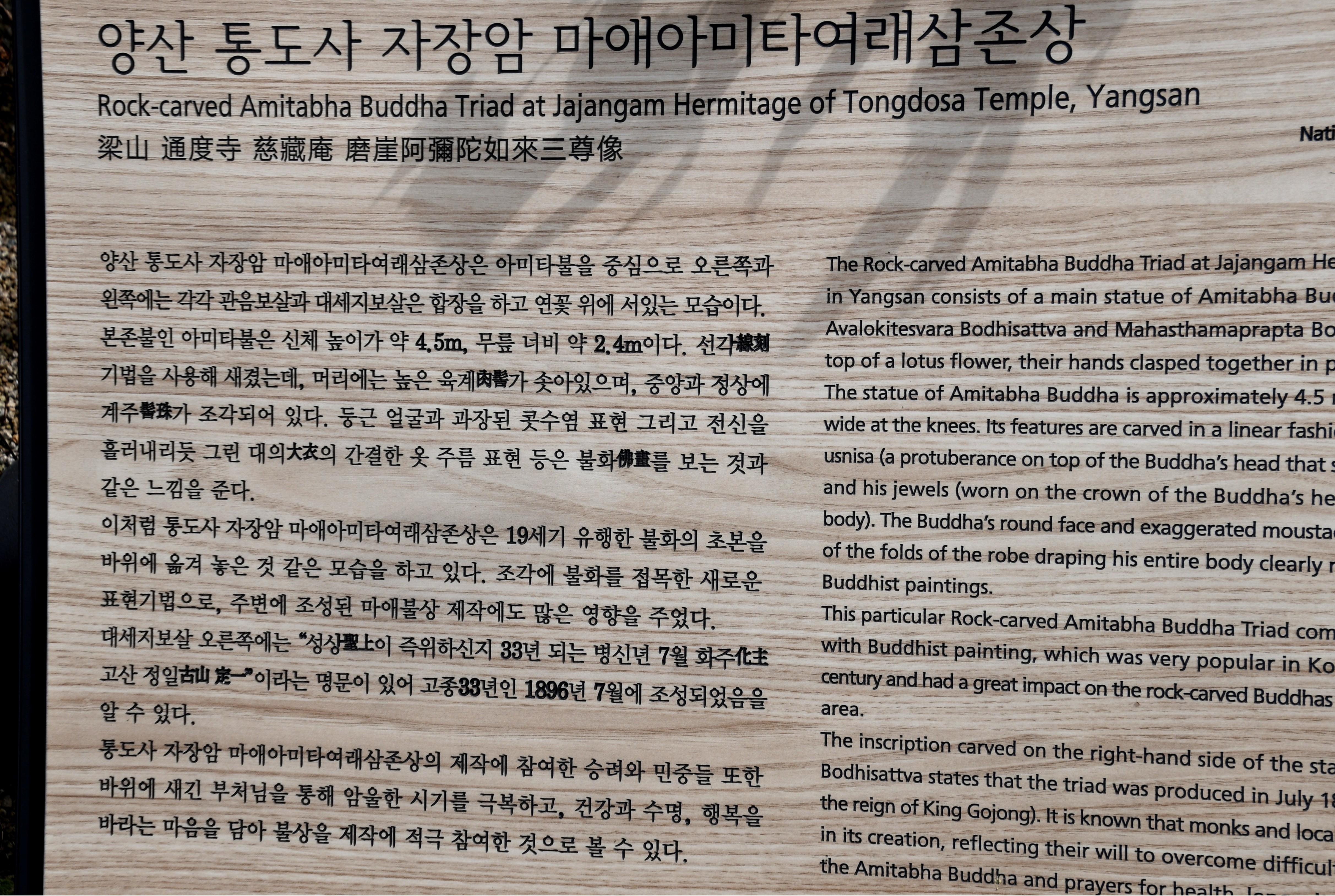 자장암 마애아미타여래삼존상(1896년 제작)’은 마치 불화의 초본을 바위에 옮긴 것 같은 조각으로서