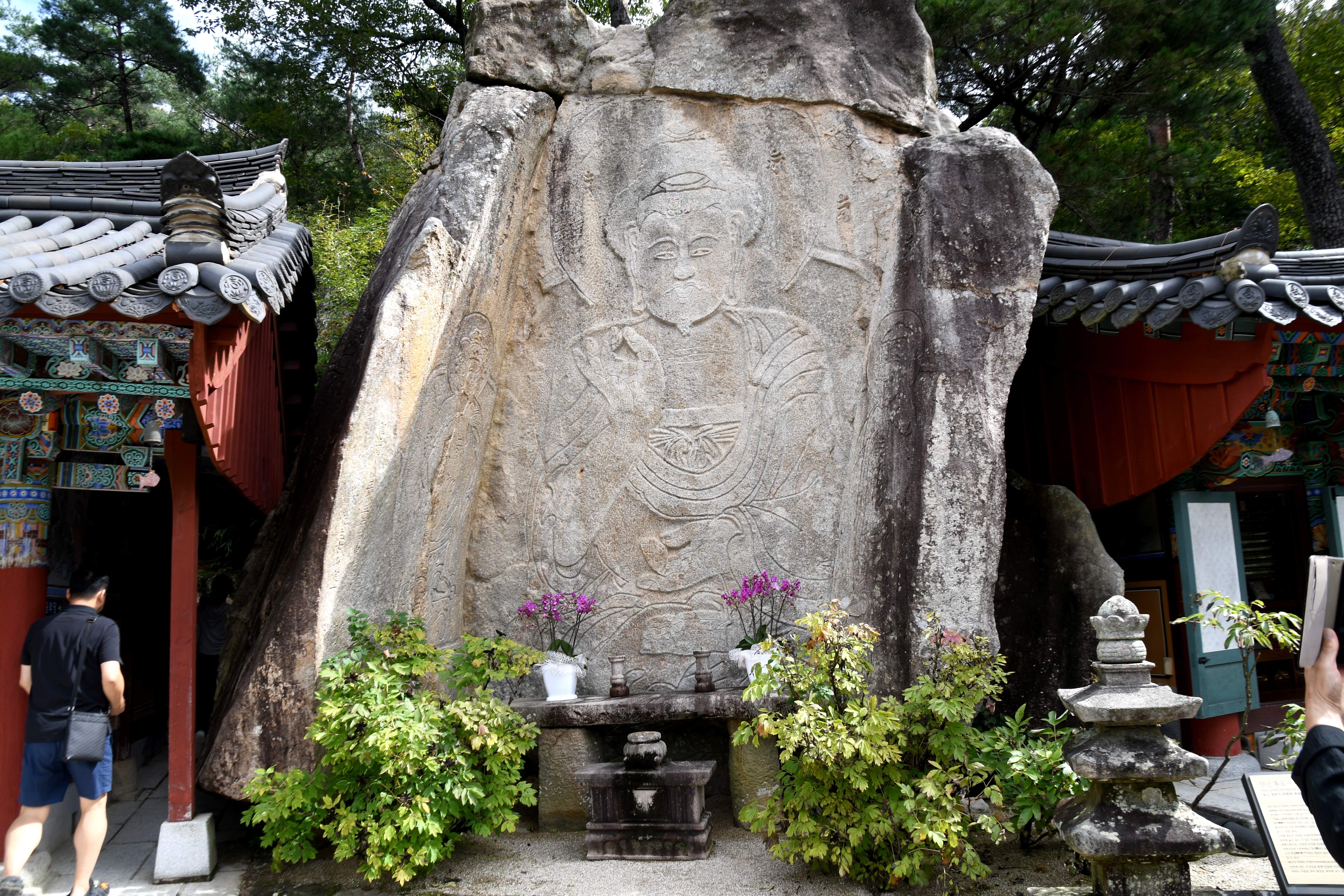 1896년에 조각된 약 4m의 거대한 마애불이 있다. 법당 뒤쪽 암벽에는 석간수가 나오는데 자장율사가