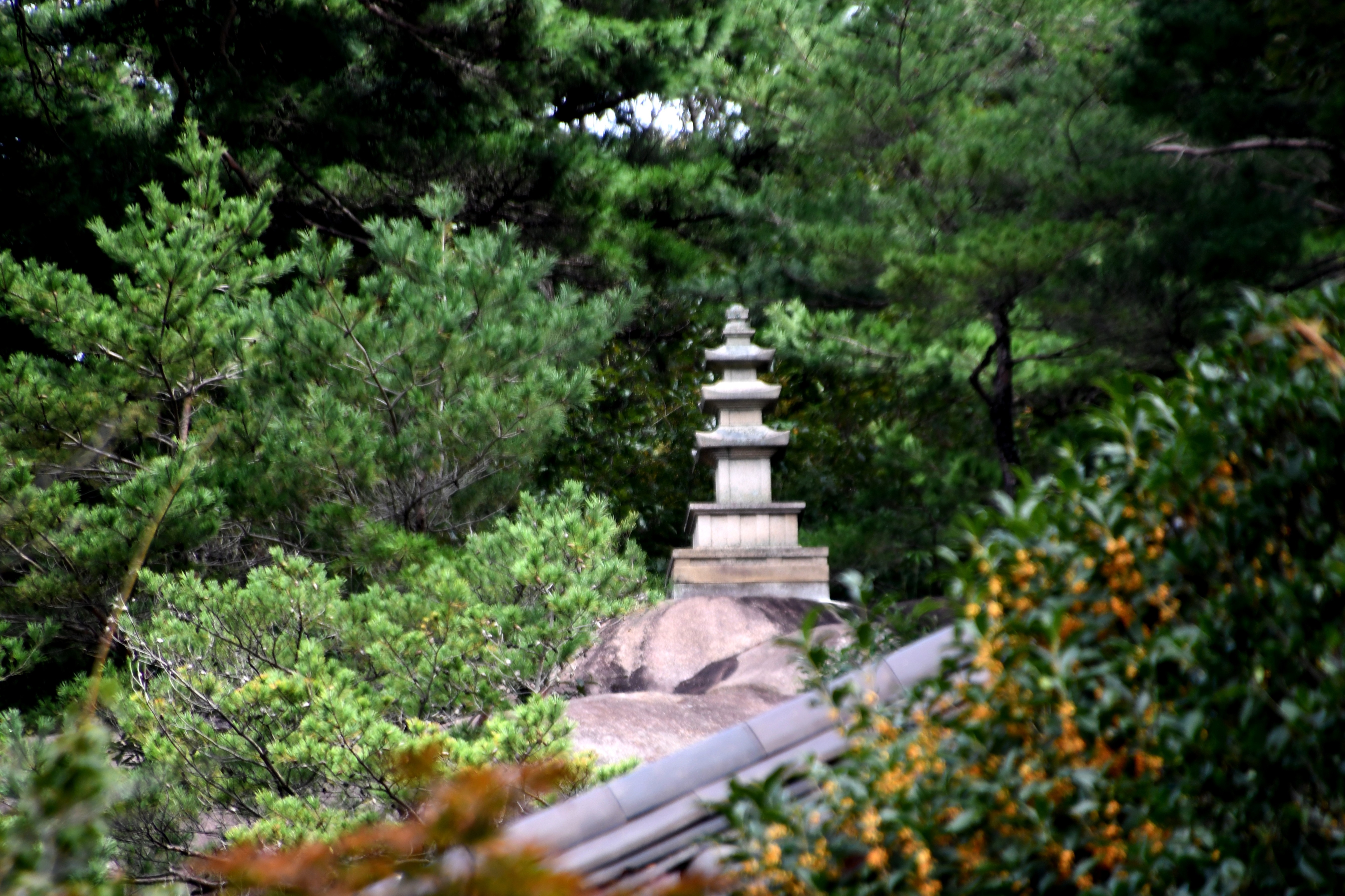 자장암 뒤에 있는 3층석탑 멀리서 담았다