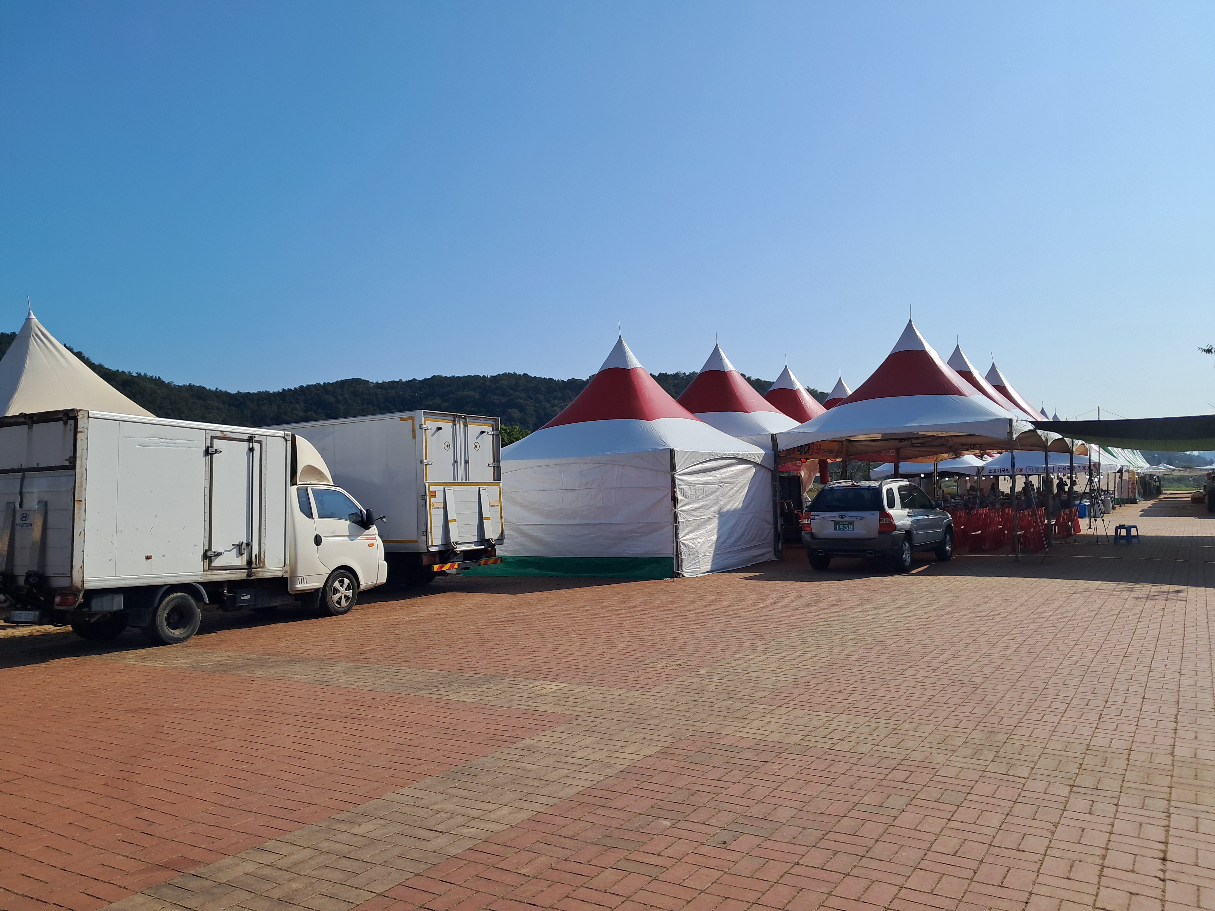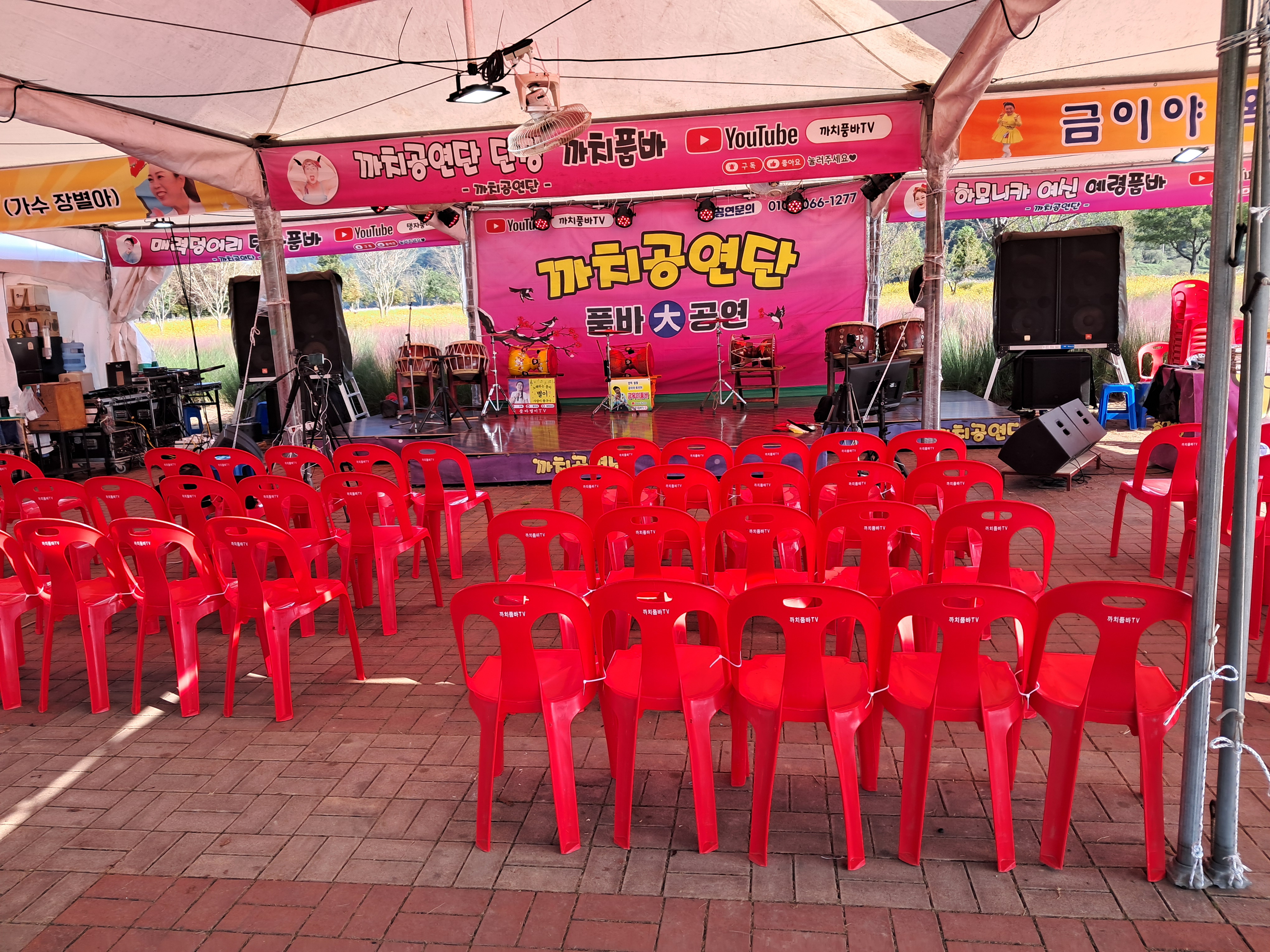 까치공연단은 아직 이른 시간이고 관광객도 많지 않아 아직 시작을 안 하고 있는 것 같다