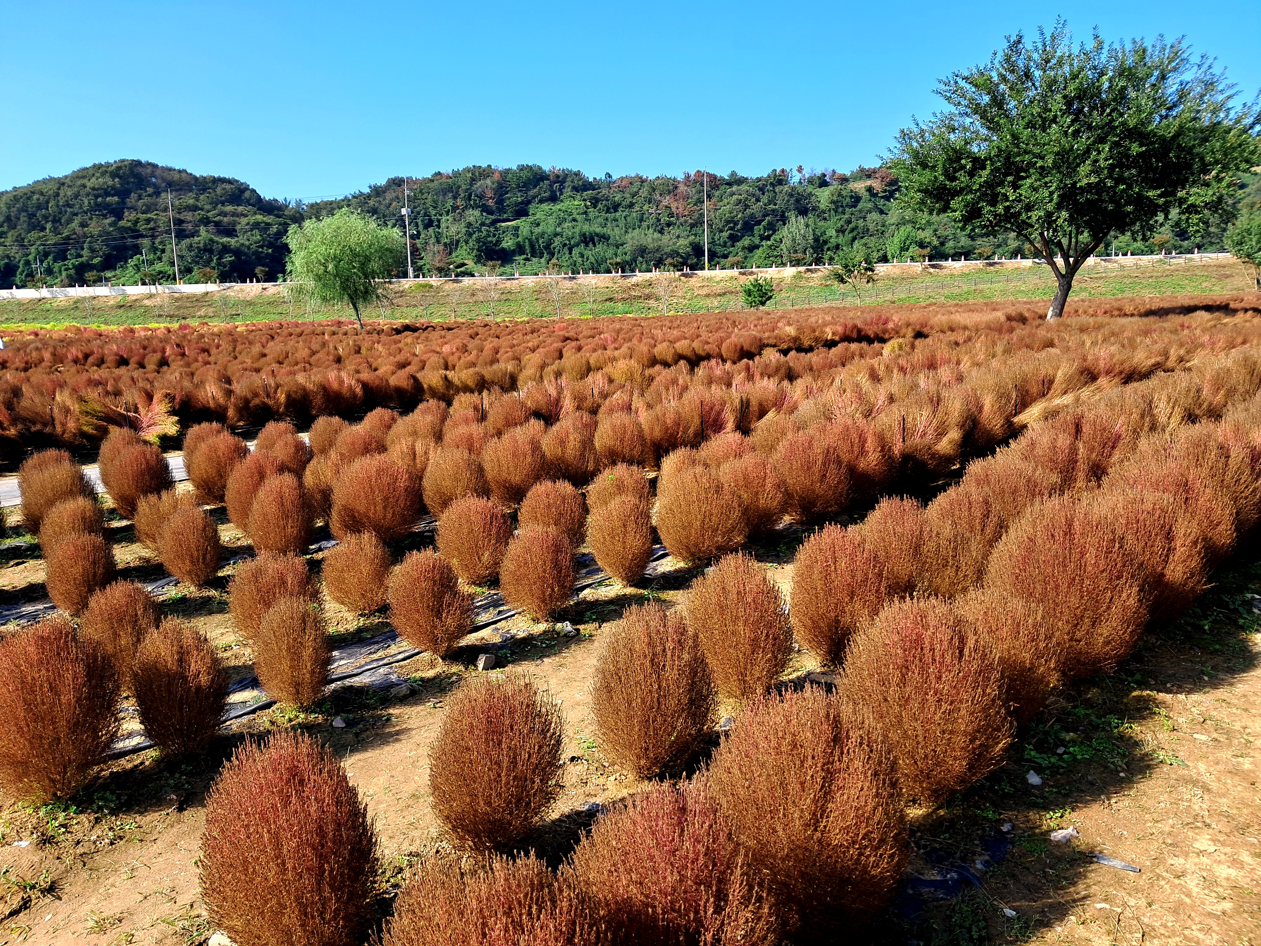 다른 때에는 댑싸리가 아주 곱게 붉은 색을 띠고 있었는데 금년에는 조금 일찍 왔나 아직 갈색이네