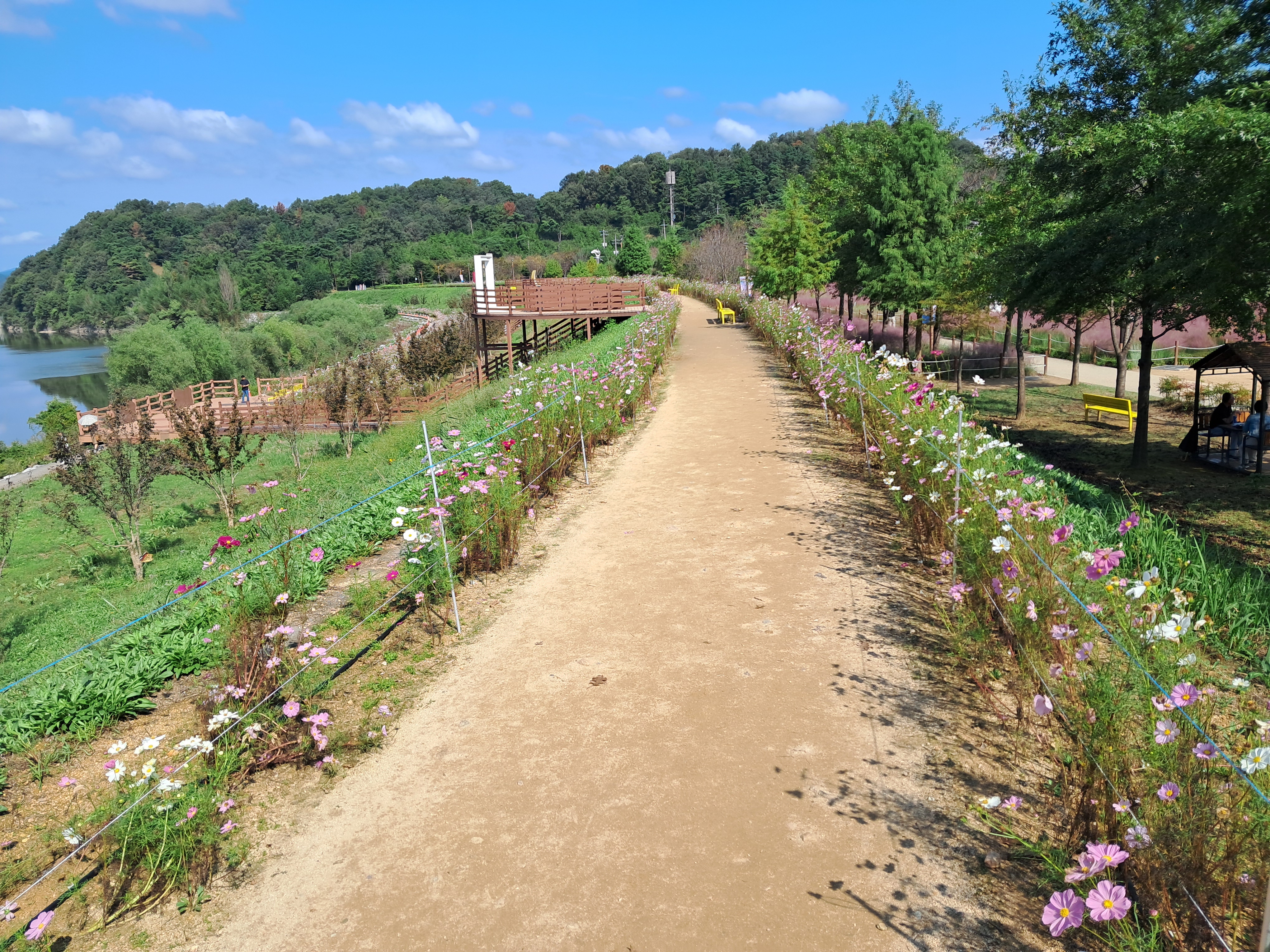 이곳은 코스모스도 별로고 잠시 한바퀴 돌아보기로 하고 처녀뱃사공 노래비가 있는 곳으로 왔다