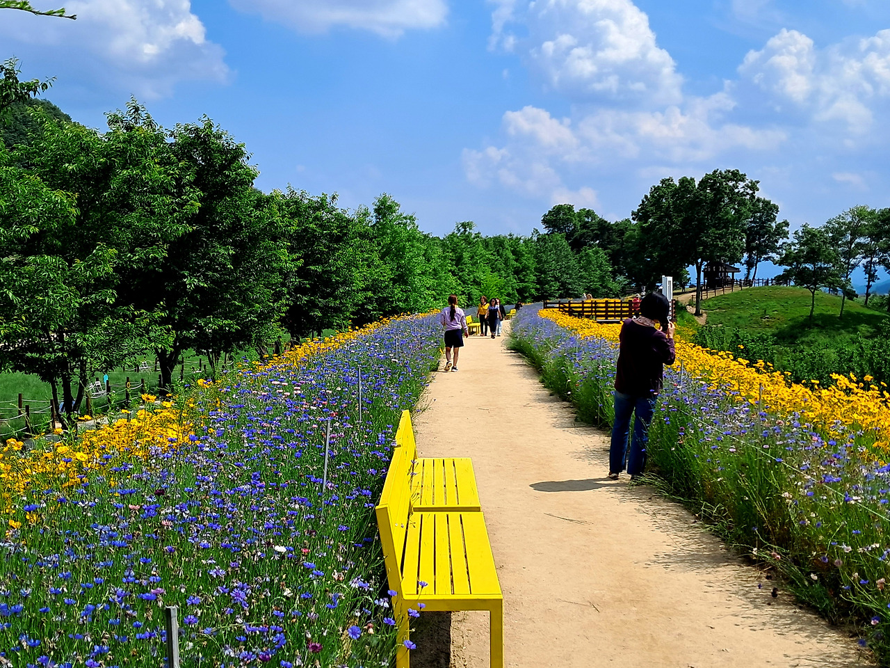 코스모스도 근년에는 별로인 것 같다 봄에는 아래와 같이 금게국과 수레국화가 보기 좋았었는데........
