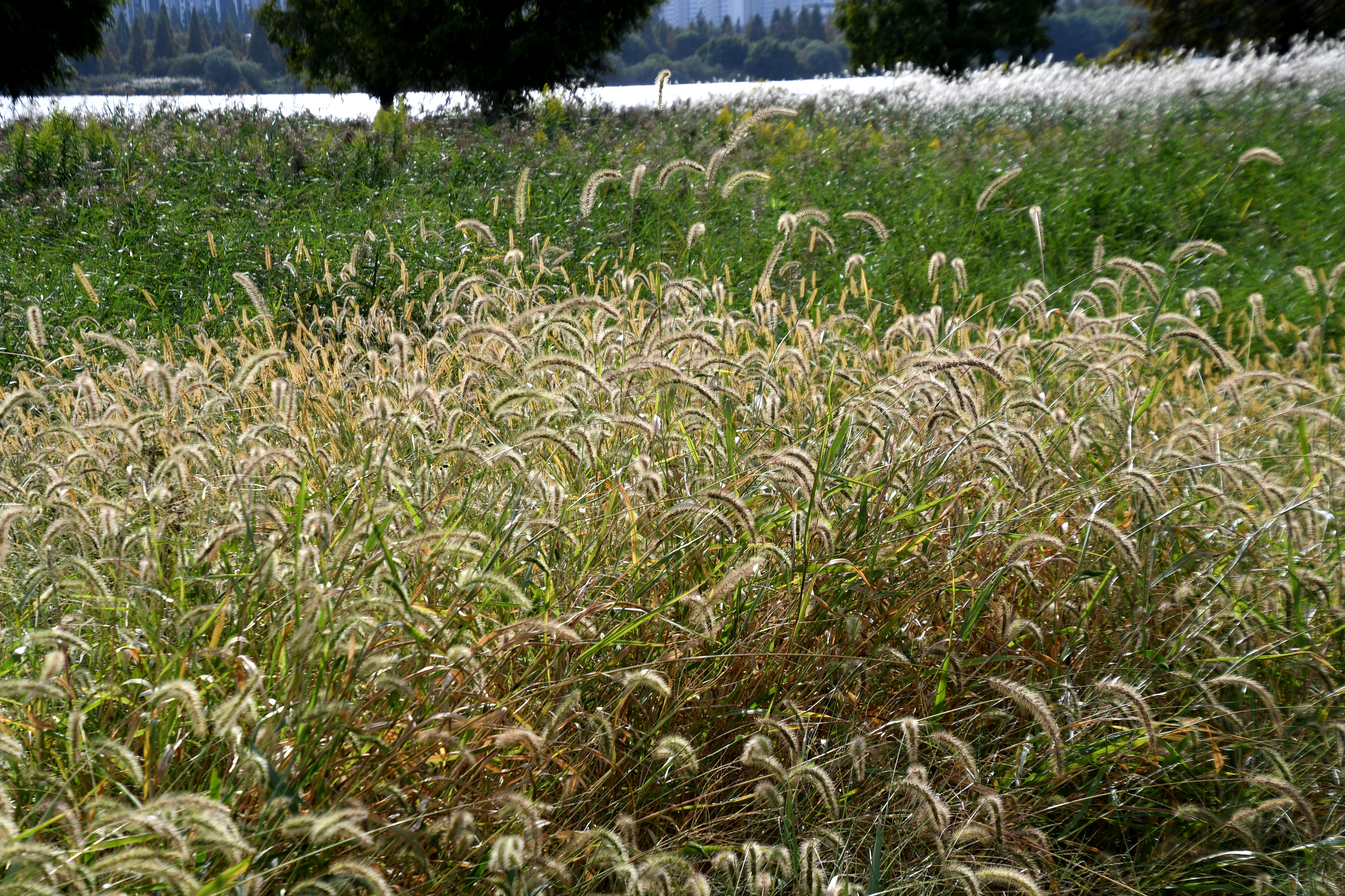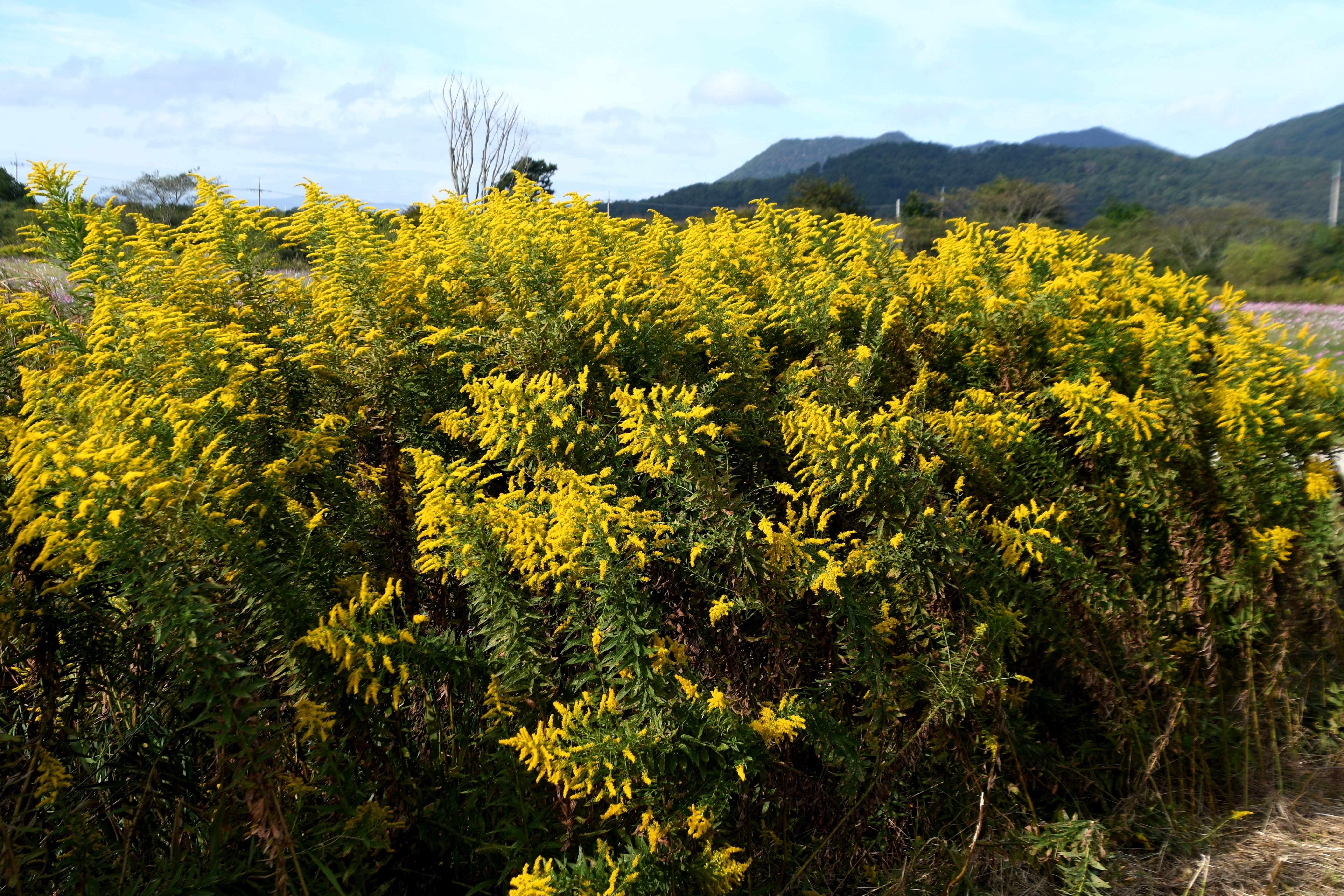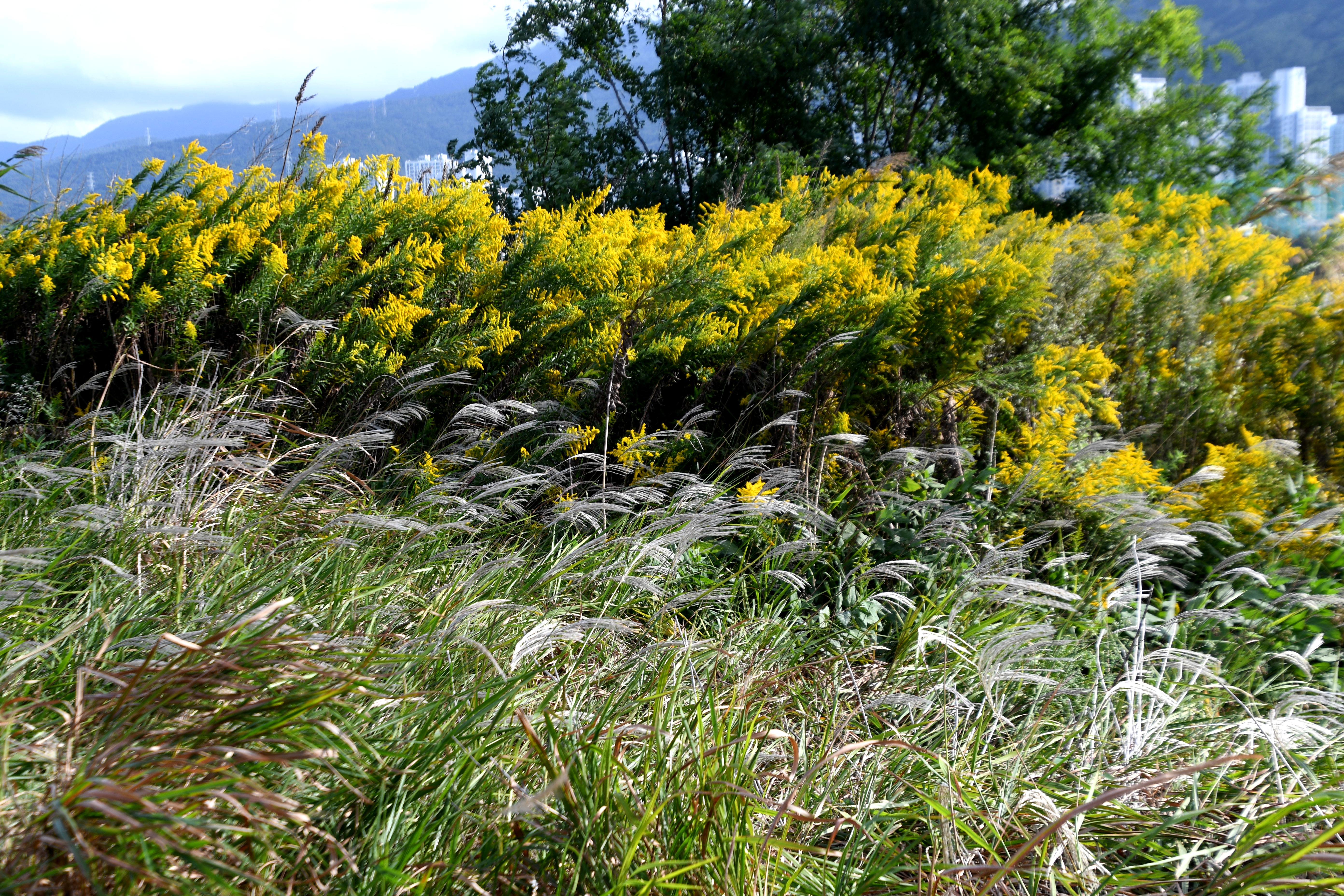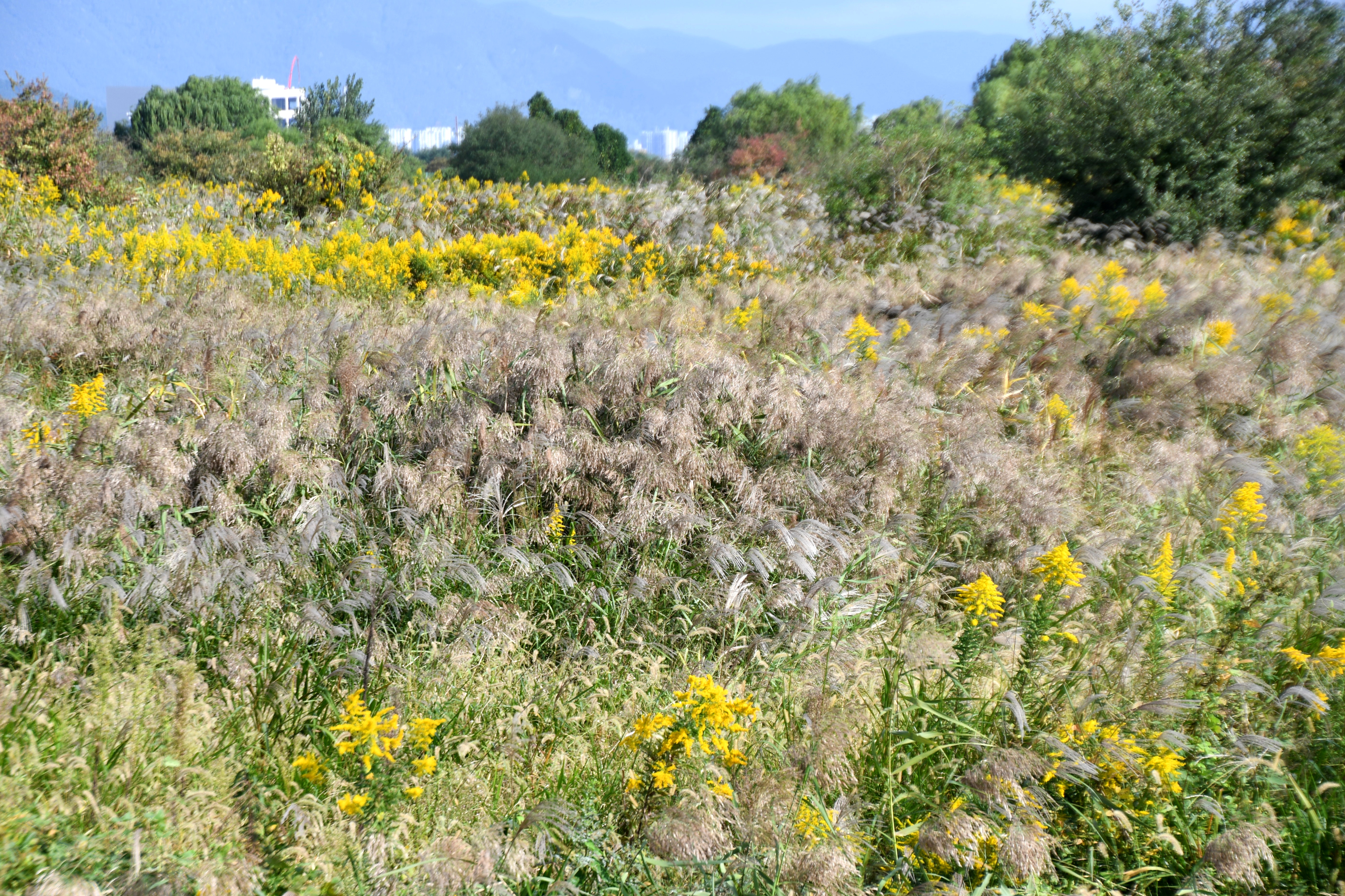 불과 몇 년 사이에 양미역취가 억새와 갈대밭을 점령해 억새와 갈대가 살아남기가 어렵게 되었다