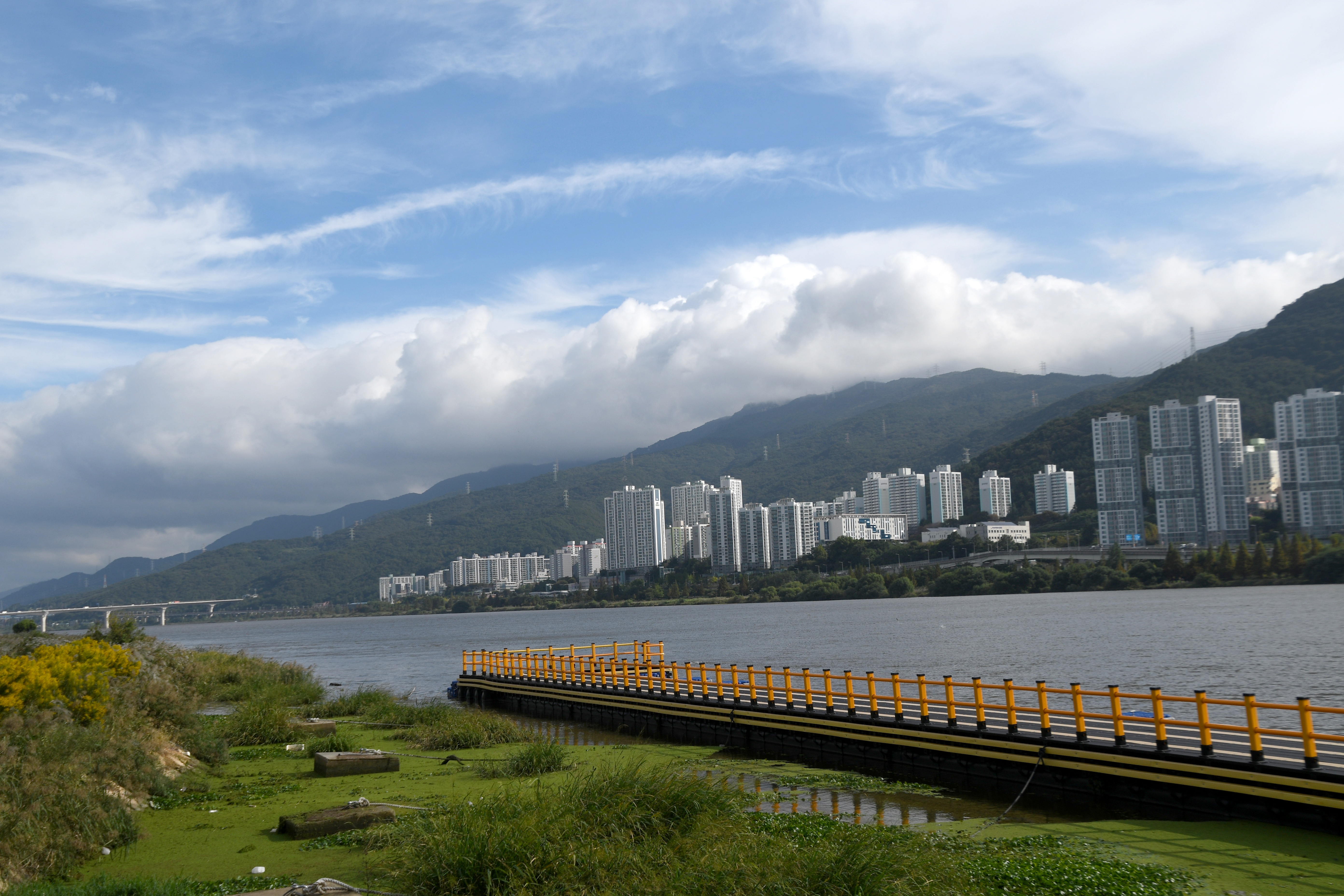좌측으로 화명신도시 너머로 구덕산 시약산 승학산이 보인다