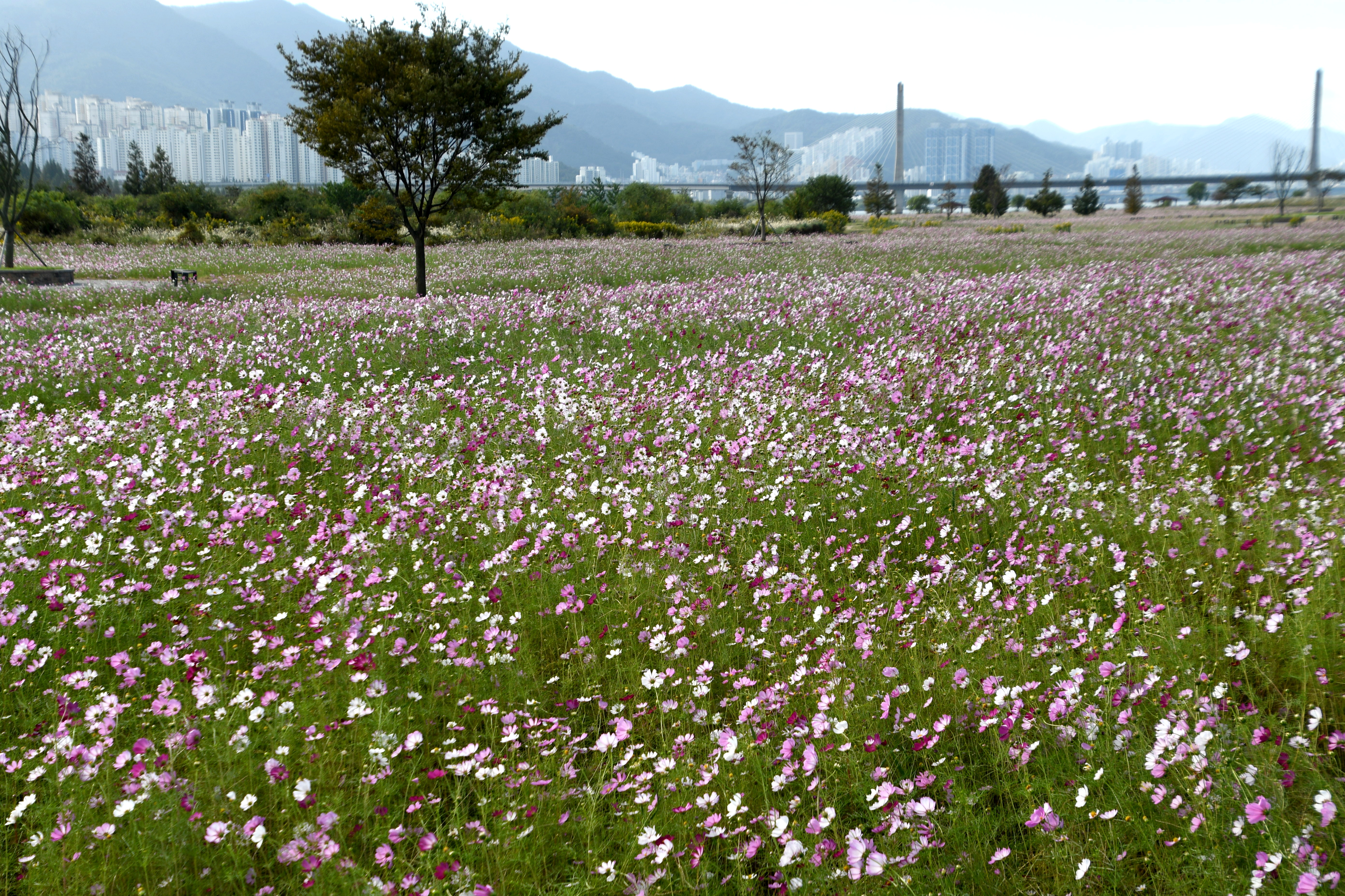 잔디 광장과 야생화 단지, 무궁화 동산 등이 어우러져 있다. 코스모스 외에도 계절별로 다양한 꽃을
