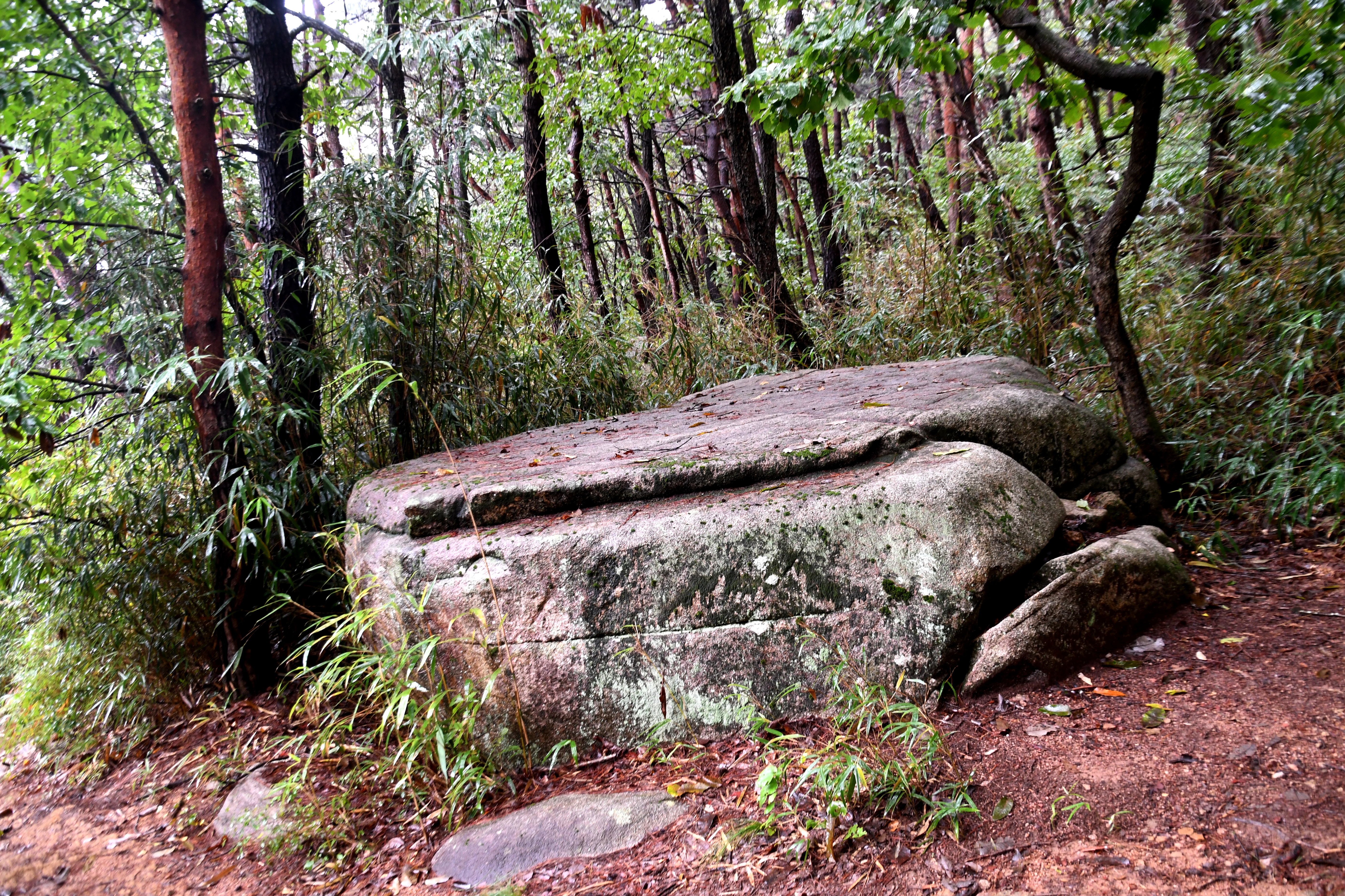 올라갈 때 못 보았던 맥반석 바위를 내려오면서 보았는데 일부러 다듬어 놓은 듯 2평 정도의 넓이로 편평한 바위다