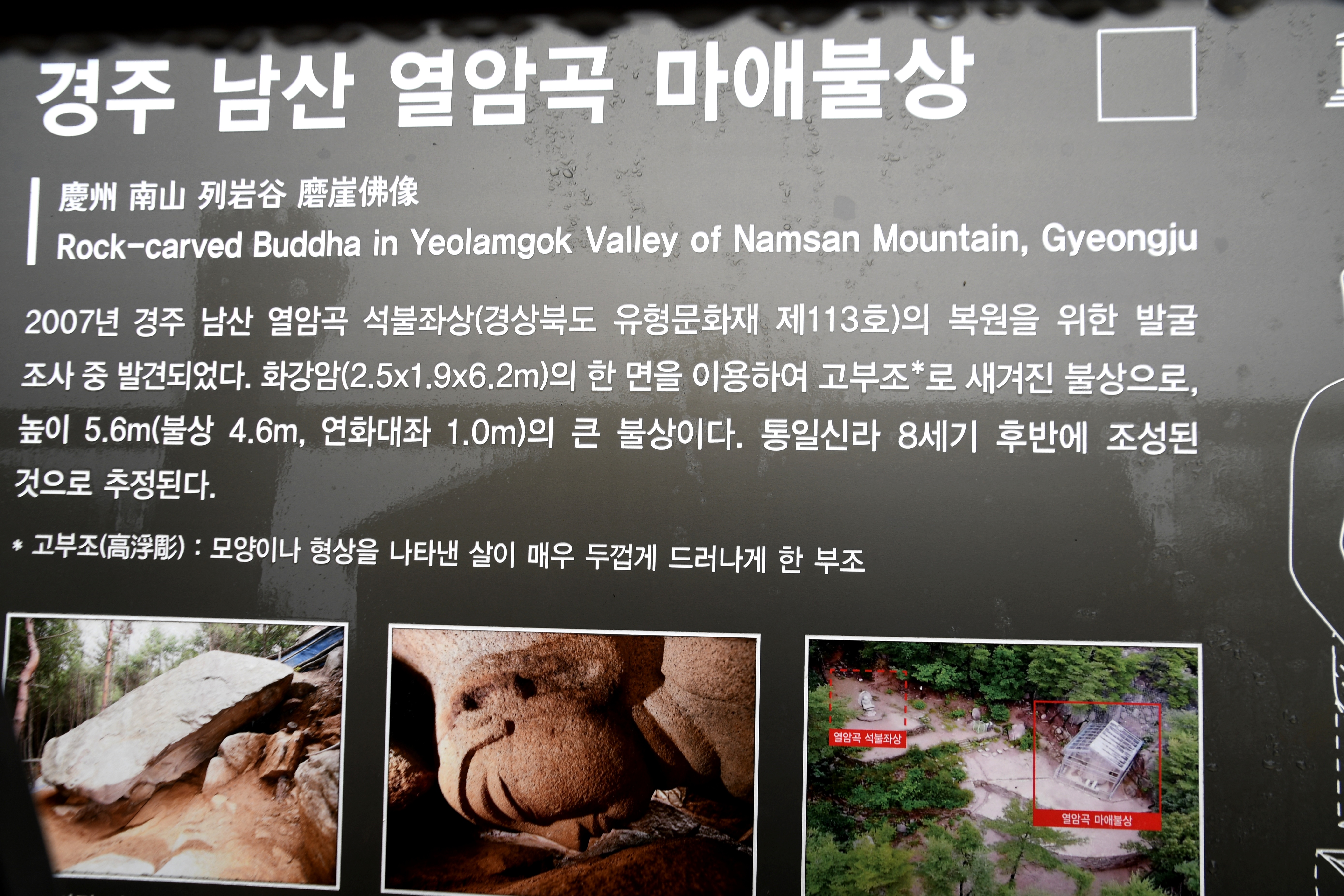 그러나 발견 당시 불상이 조각된 암석은 원래 위치에서 경사면을 따라 앞쪽으로 넘어진 상태였기 때문에 불상의