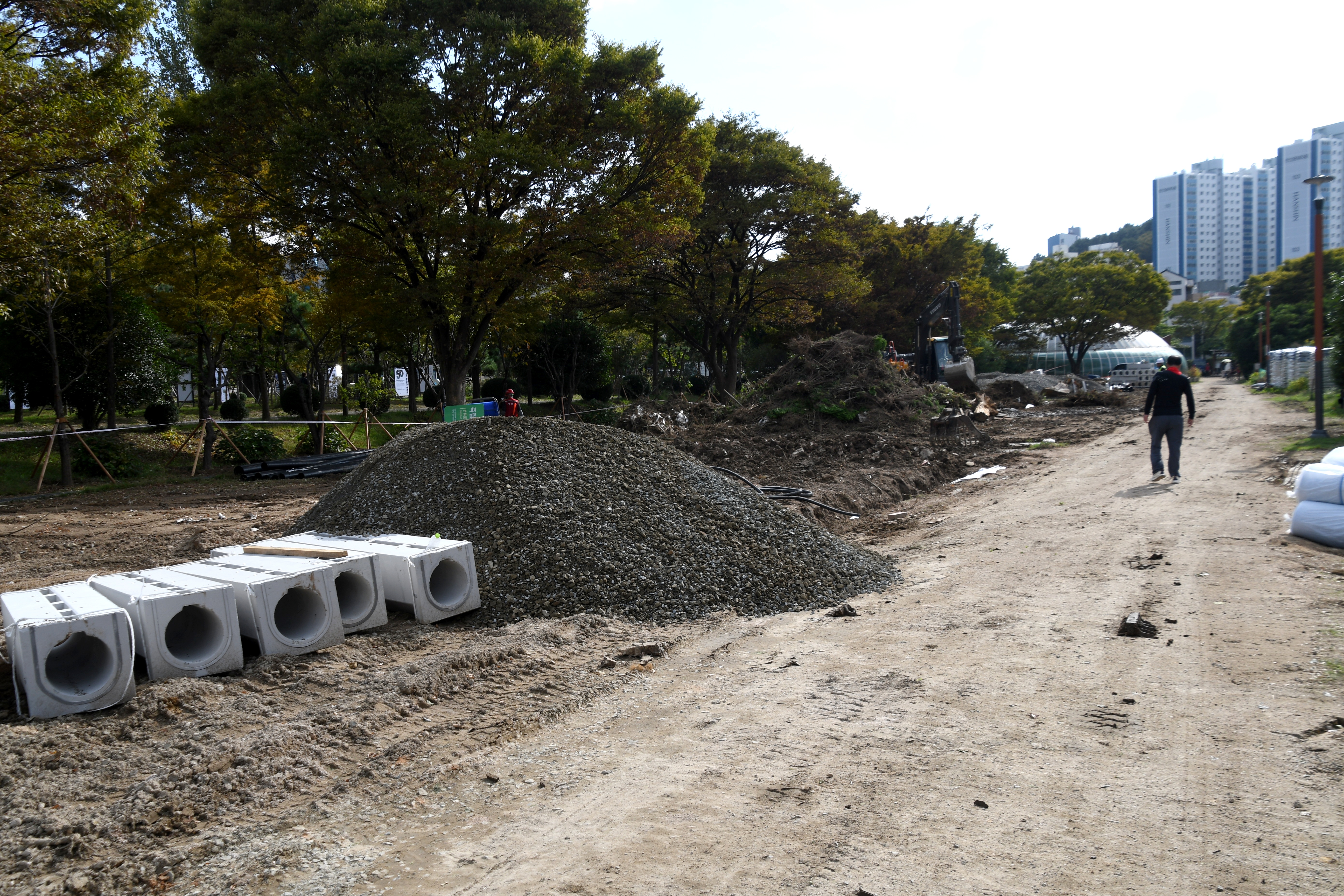 유엔평화의 숲 조성사업이라는데 수목전시원의 일부를 이렇게 파헤쳐 공사를 하고 있는데