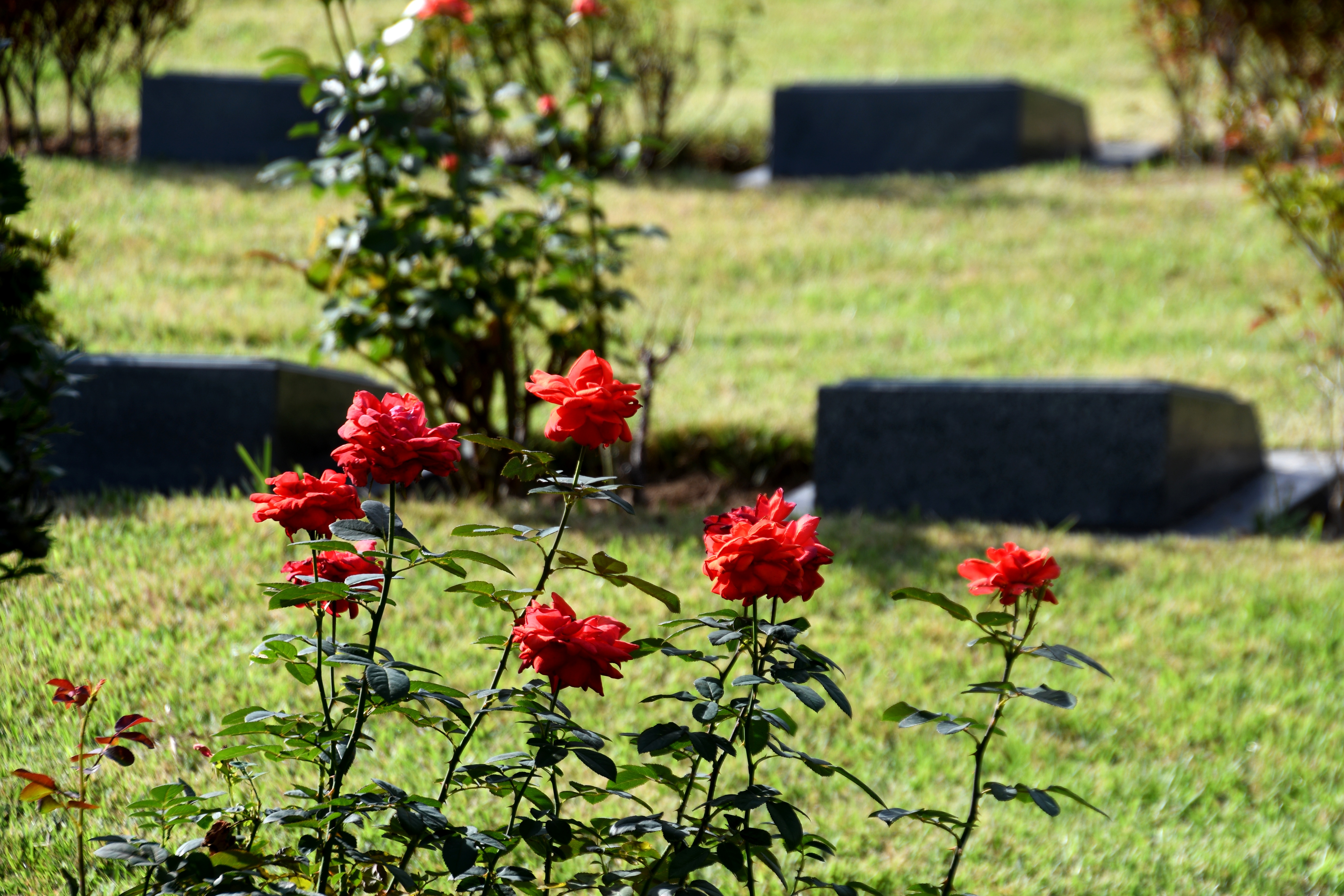 묘비 부근에는 곳곳에 장미가 피어 있다