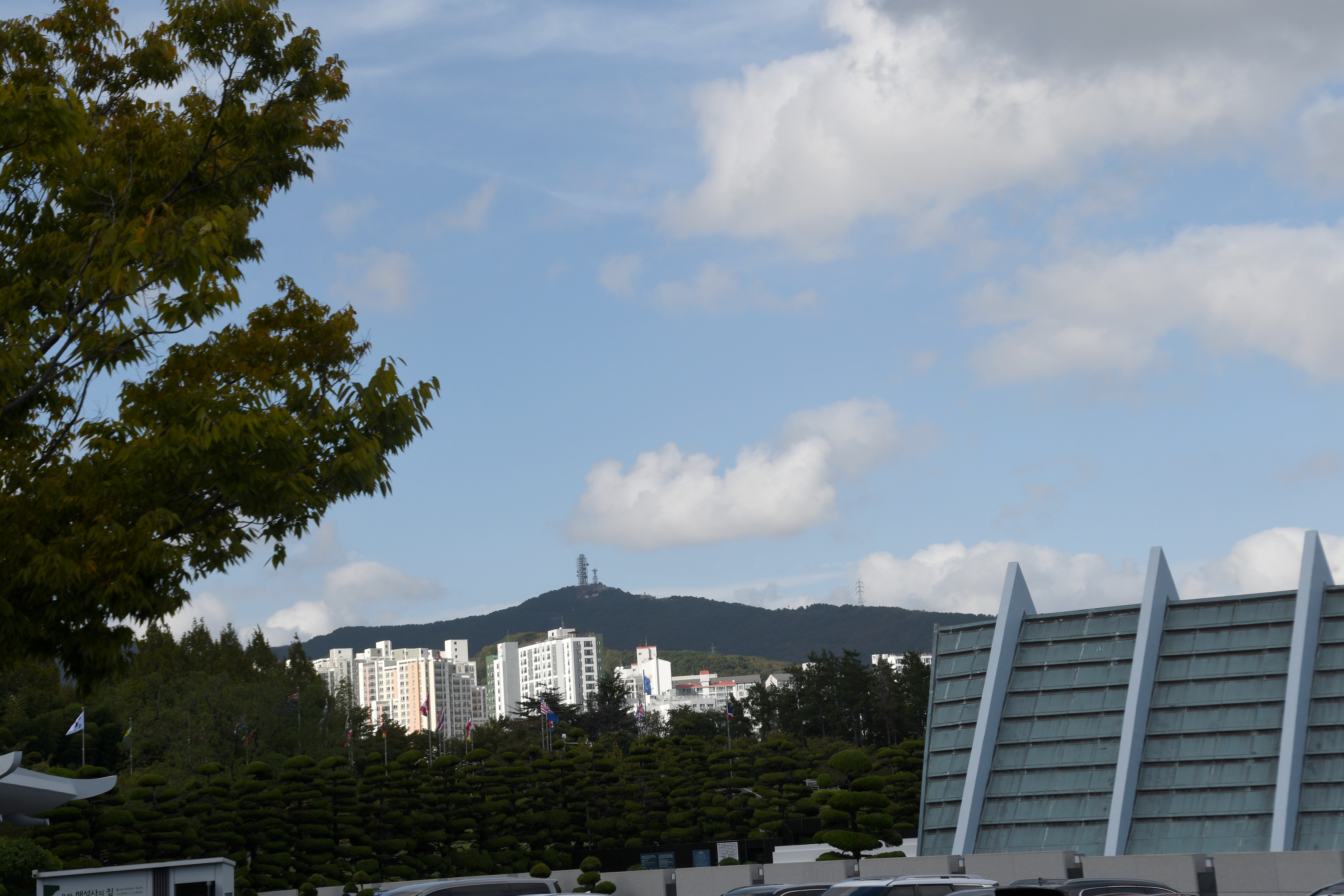 금련산자락에 올려다보니 구름이 하늘을 가려 조금 어두운 모습이다