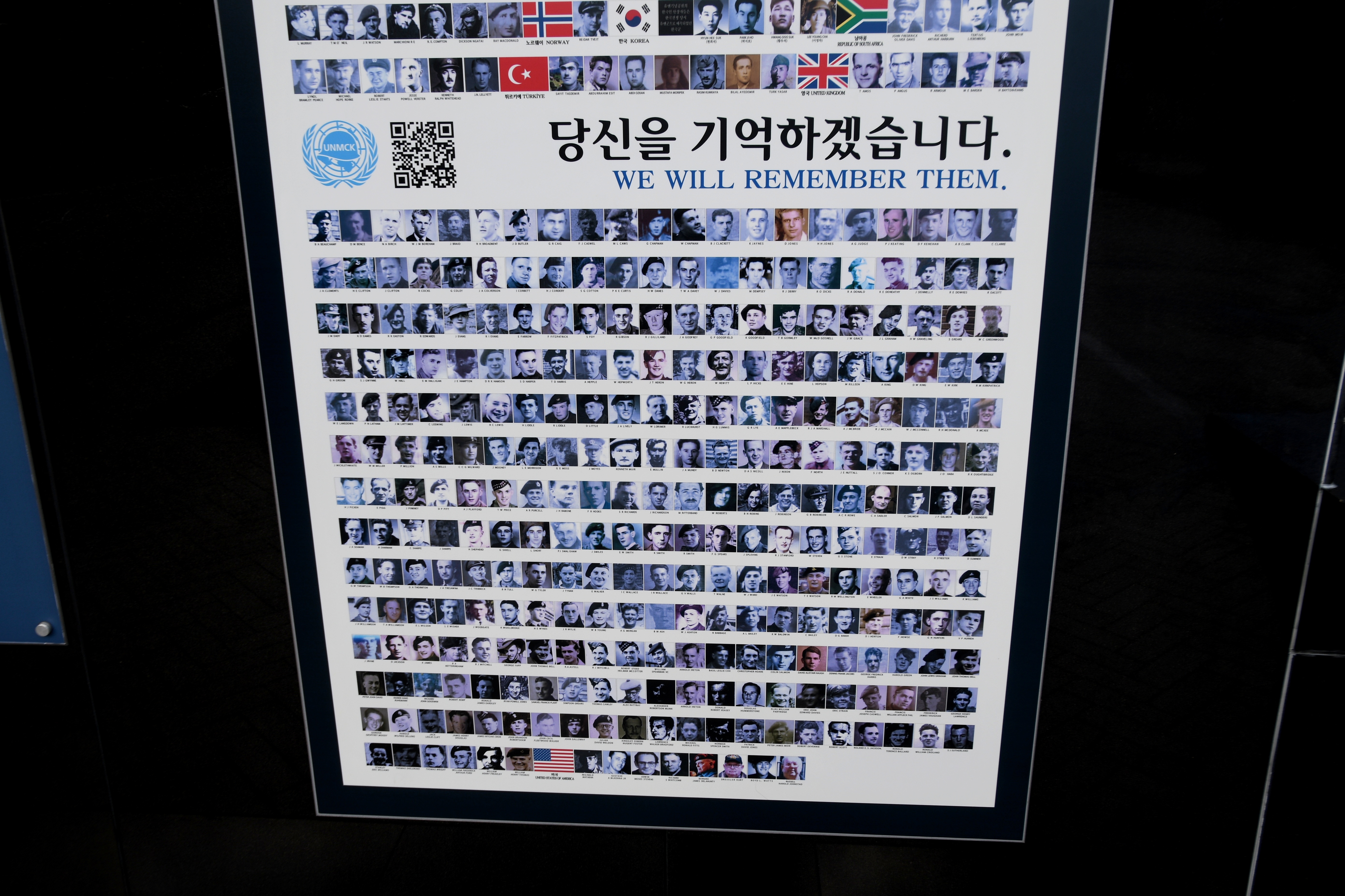 유엔묘지로 들어가는 입구에는 여기에 묻힌 유엔병사들의 사진이 전시되어 있다
