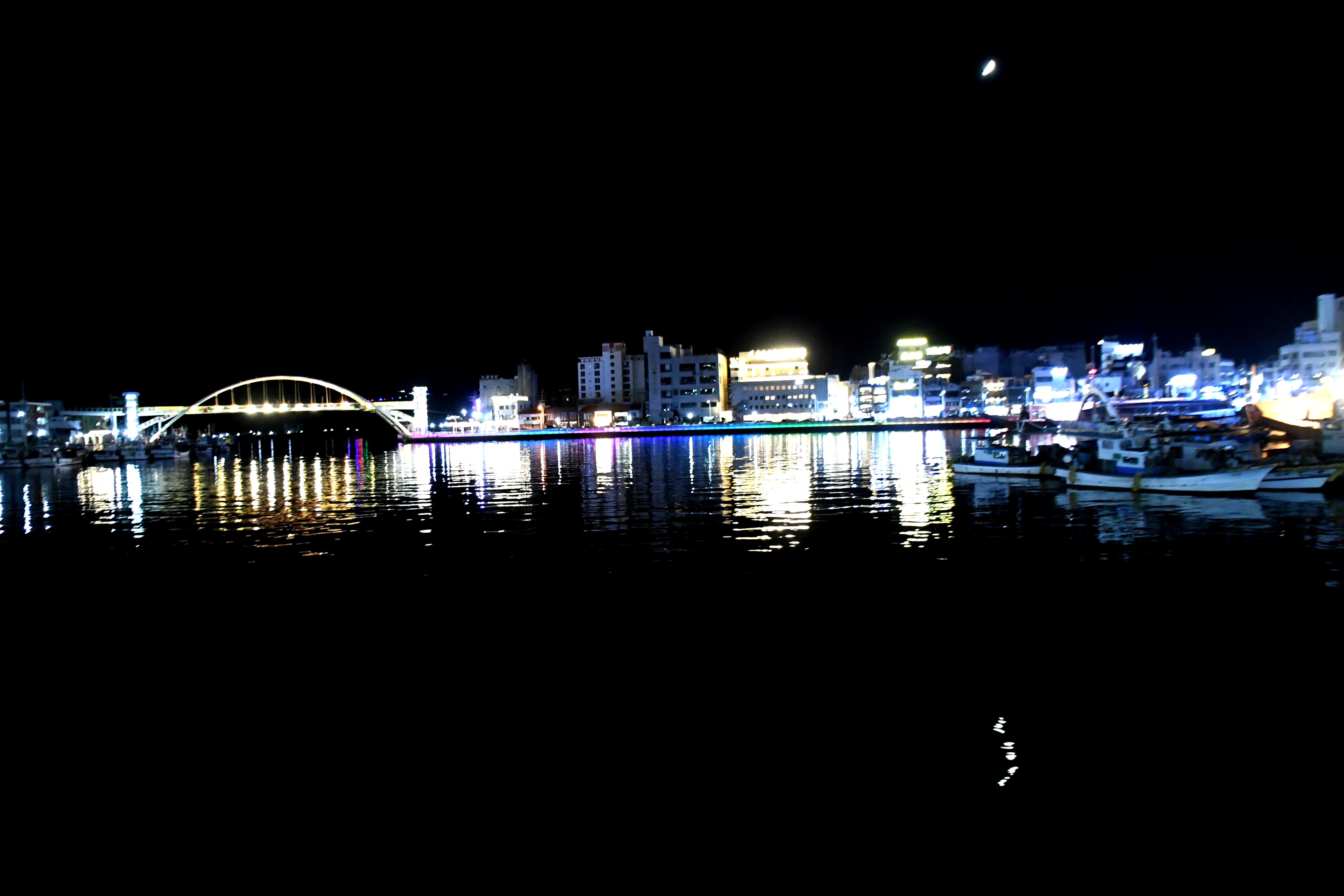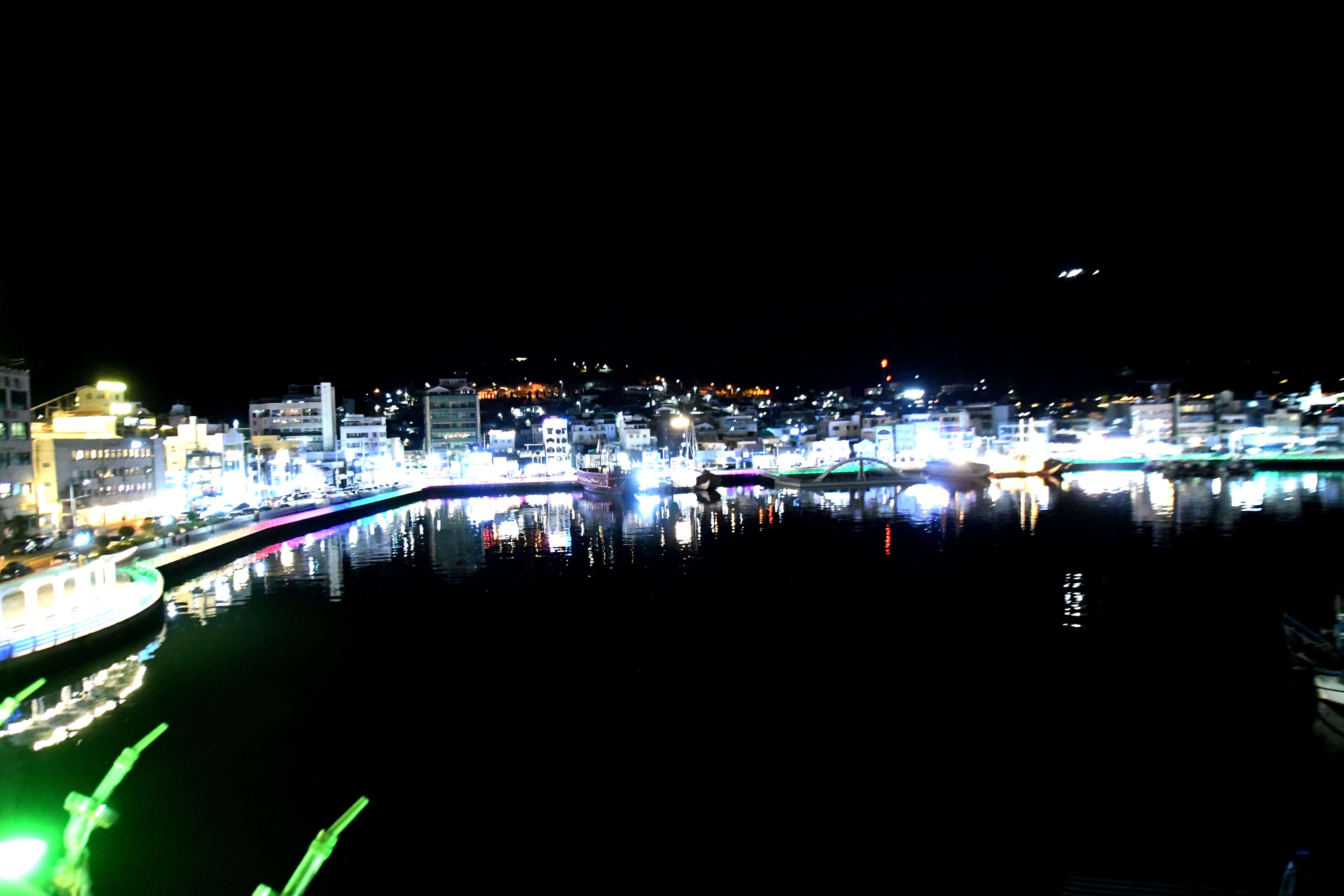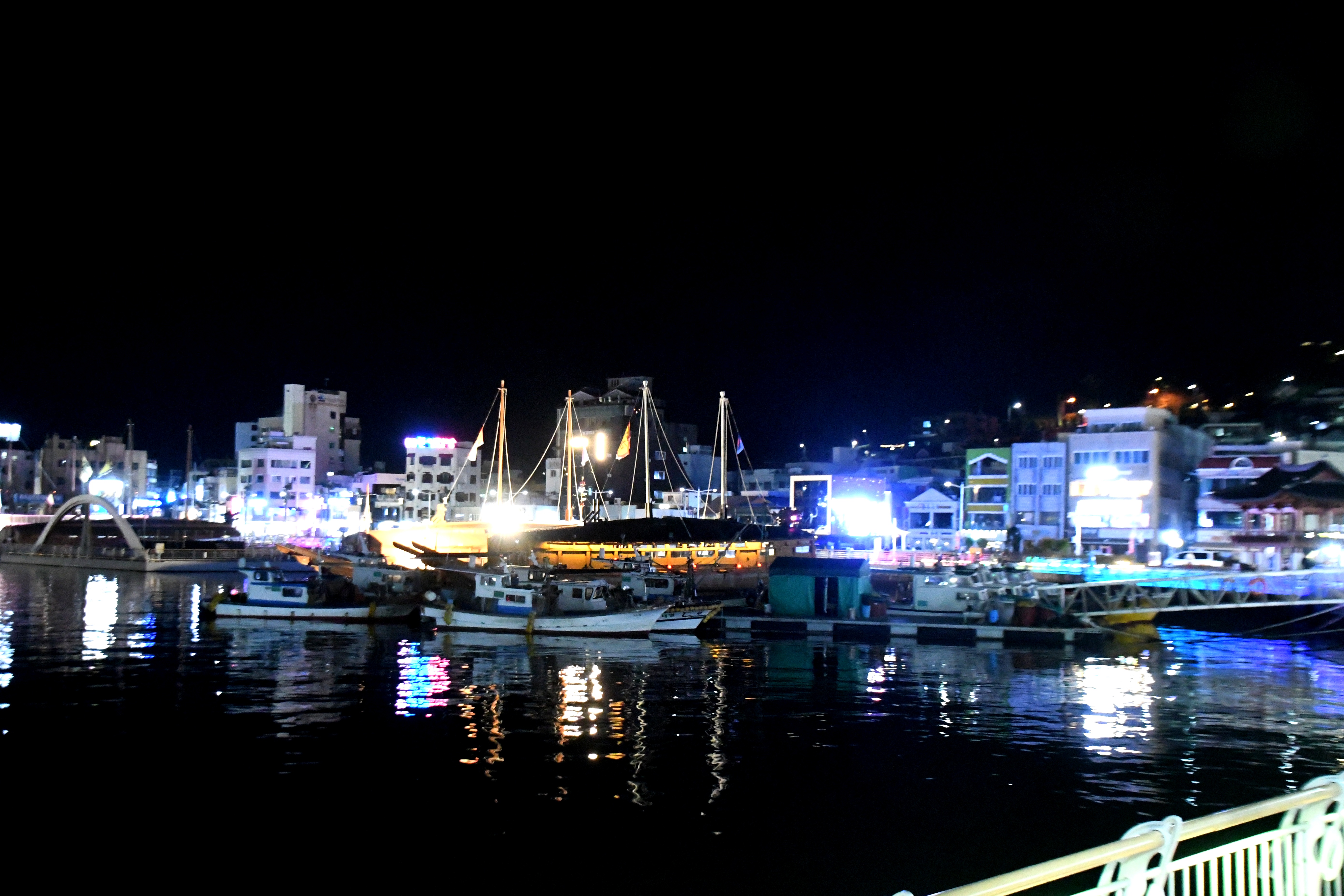 그 위에 고깃배가 어깨를 나란히 하고 줄을 지어 정박해 있다.